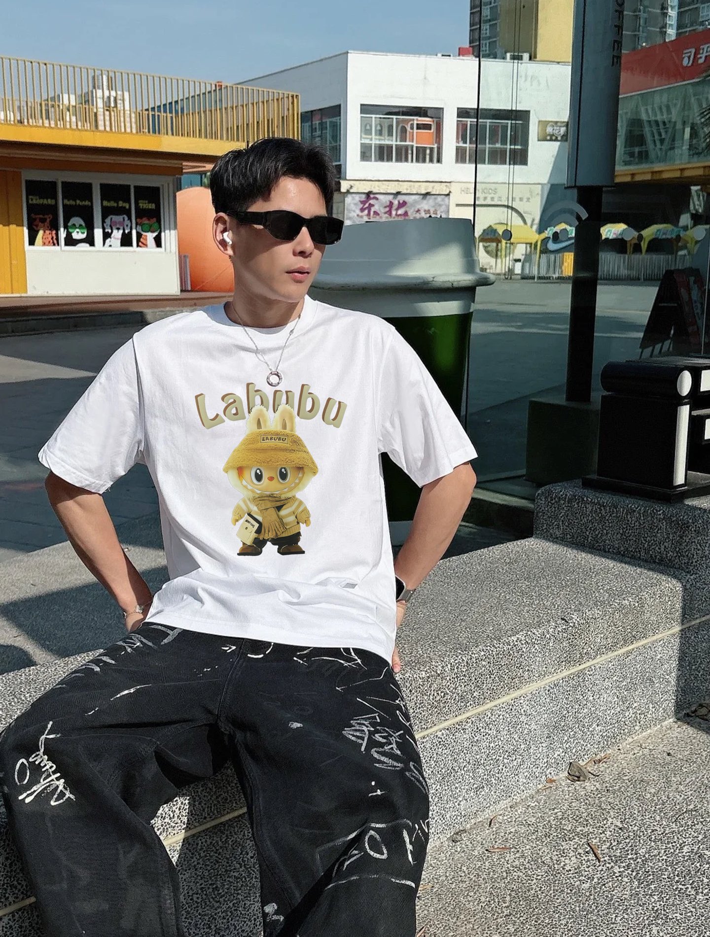 This Labubu cartoon print short sleeve T-shirt is made from a premium cotton blend, offering a soft and breathable feel. The unique cartoon print design adds a playful touch to your wardrobe.
