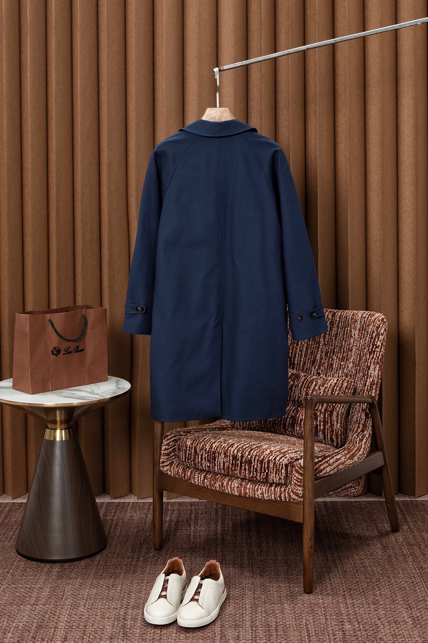 Tags: Elegant Outerwear, Fashionable Weather Resistant Coat, Long Cotton Coat, Loro Piana Windbreaker, Stylish Windproof Jacket