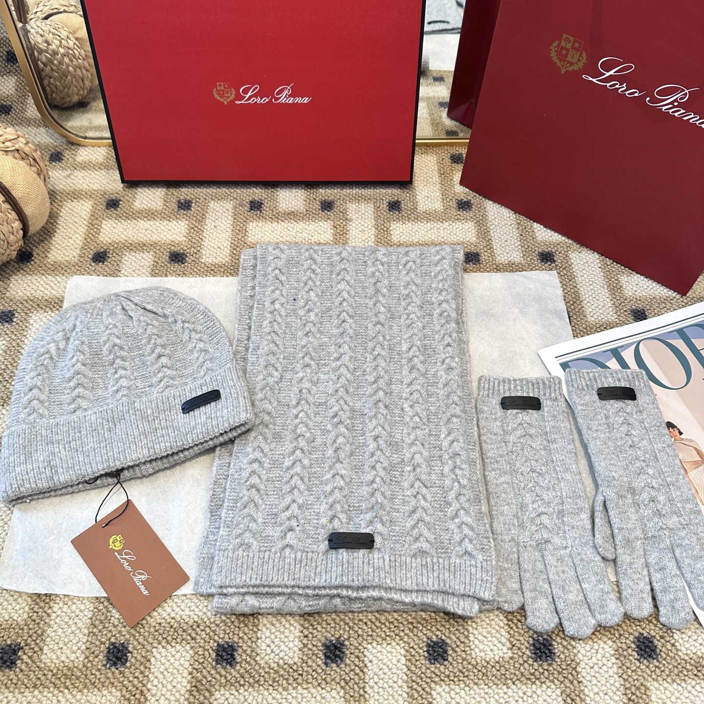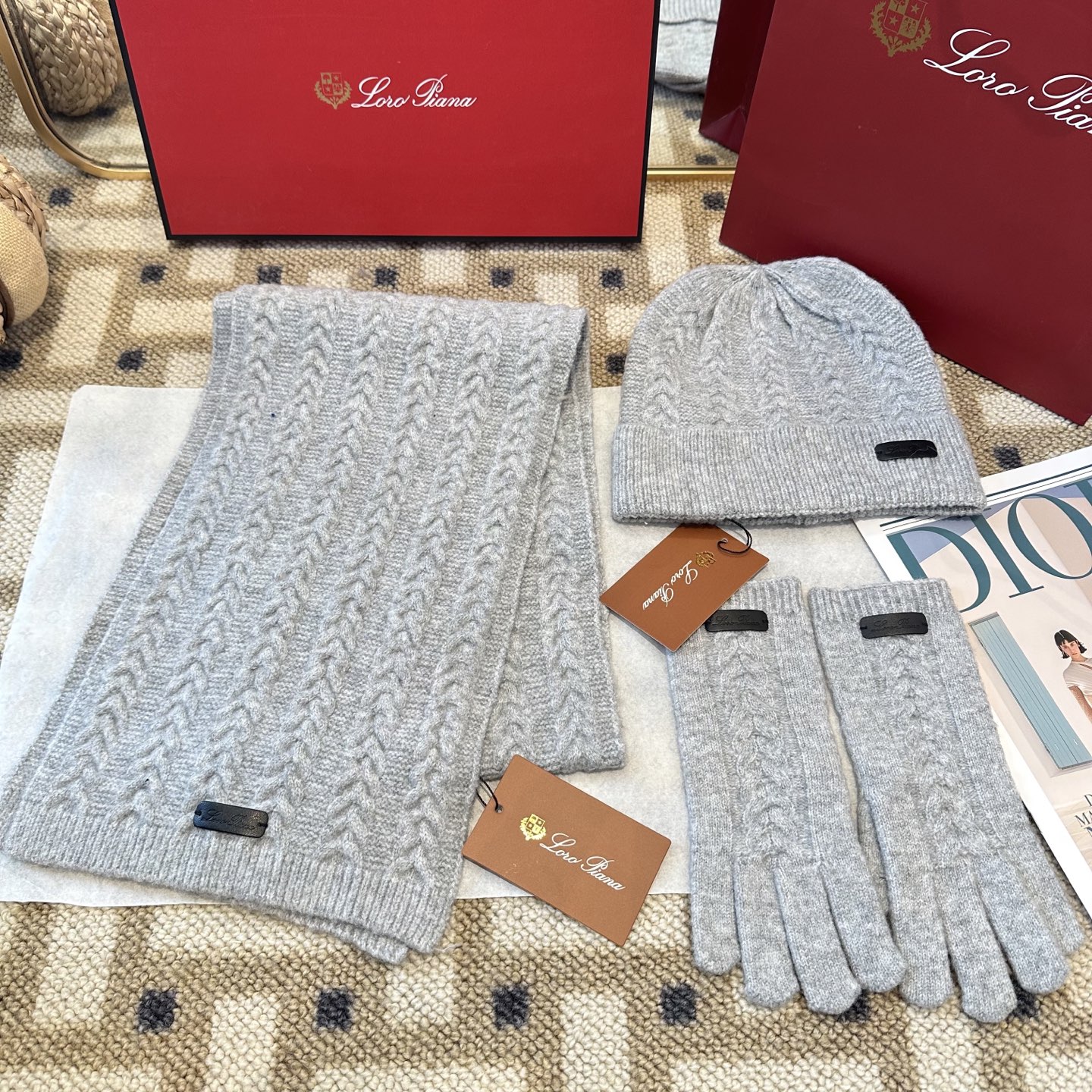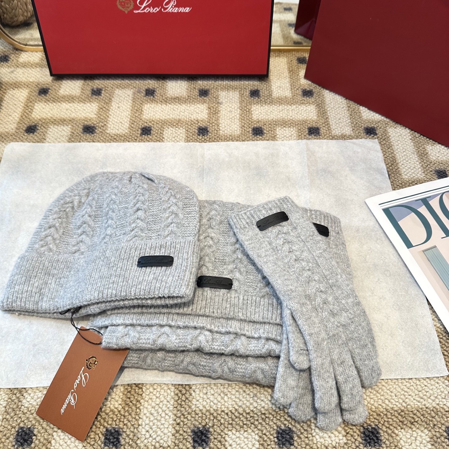 Loro Piana Wool Knit Hat, Gloves and Scarf Set - Stylish and Versatile