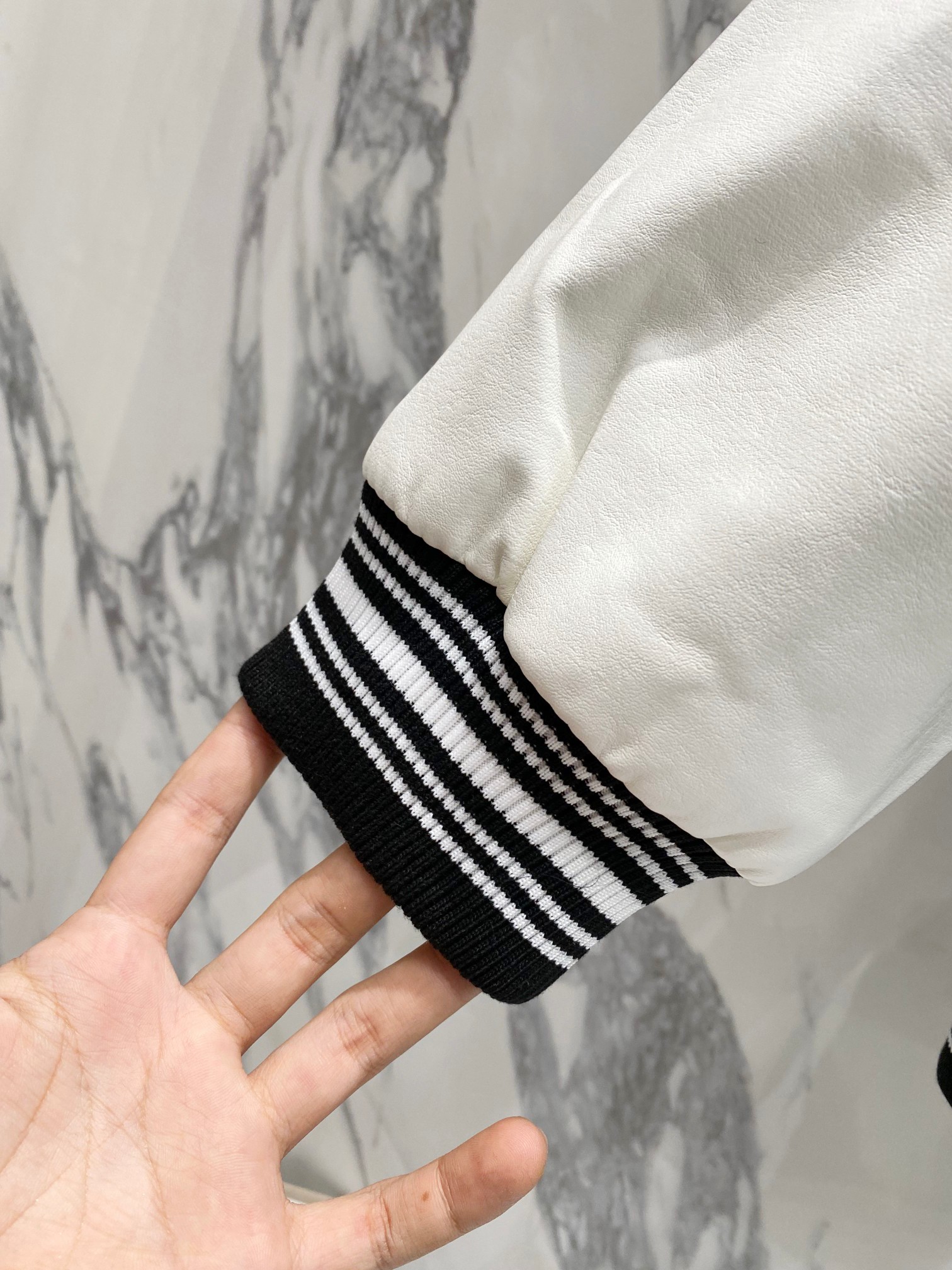 This Louis Vuitton varsity jacket from the 2022 runway collection is a statement piece that blends luxury with classic sportswear. The jacket features a sophisticated mix of materials and intricate detailing, making it a standout addition to any wardrobe.