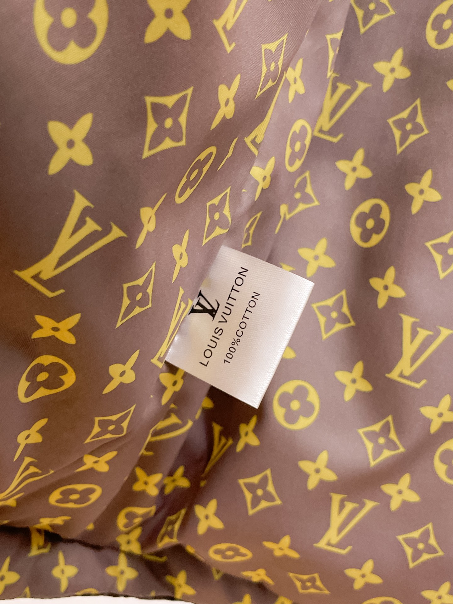 - Features the iconic Louis Vuitton logo pattern.