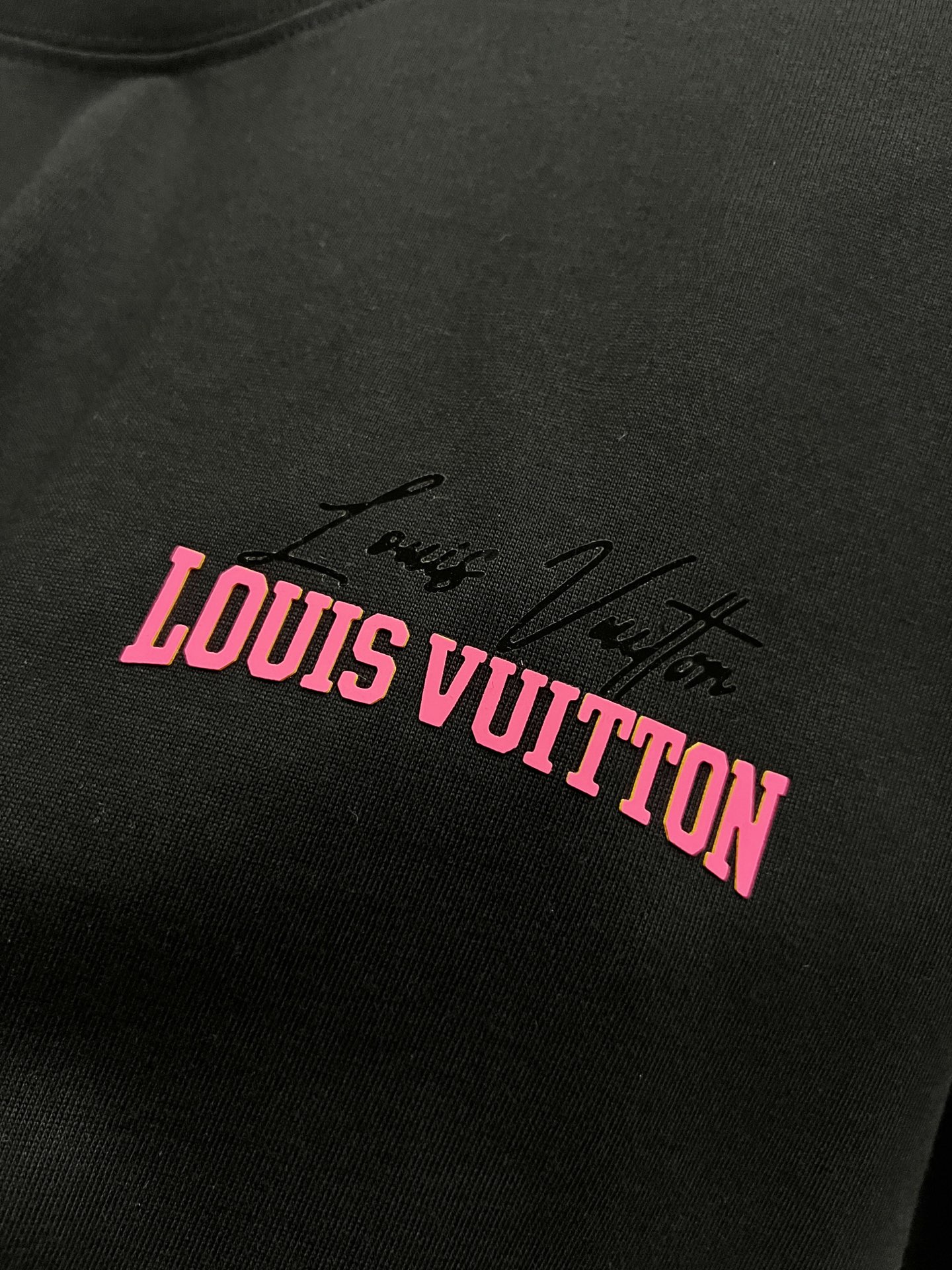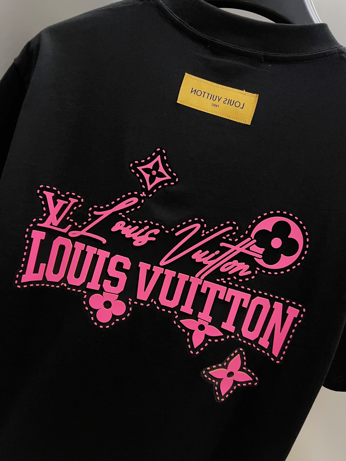Louis Vuitton 2025 Spring/Summer Black Cotton T-Shirt with Pink Logo