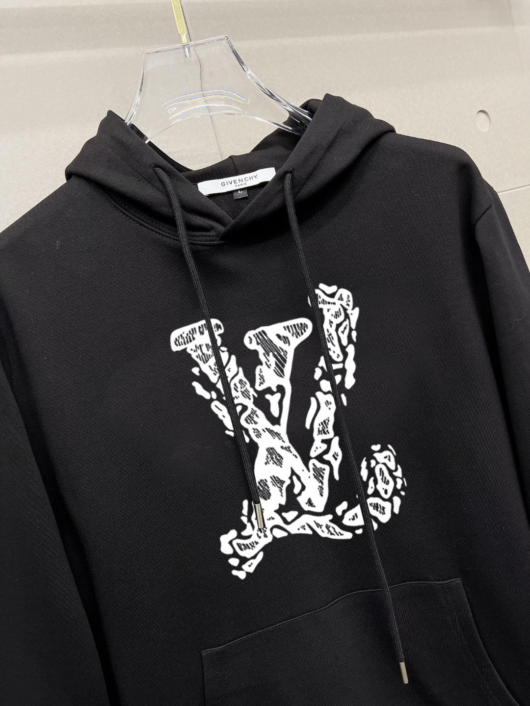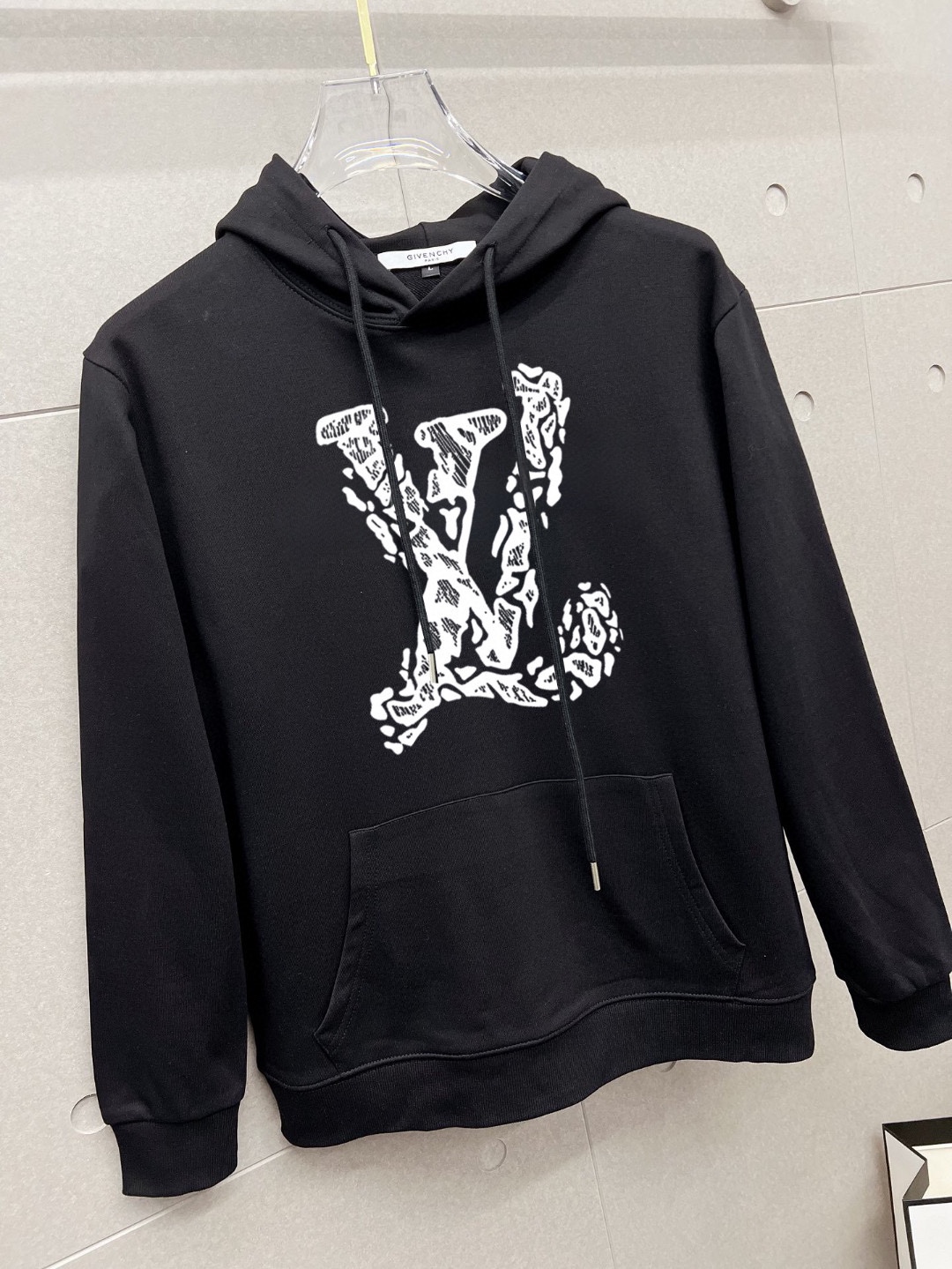 - Design: Pullover hoodie with LV graffiti