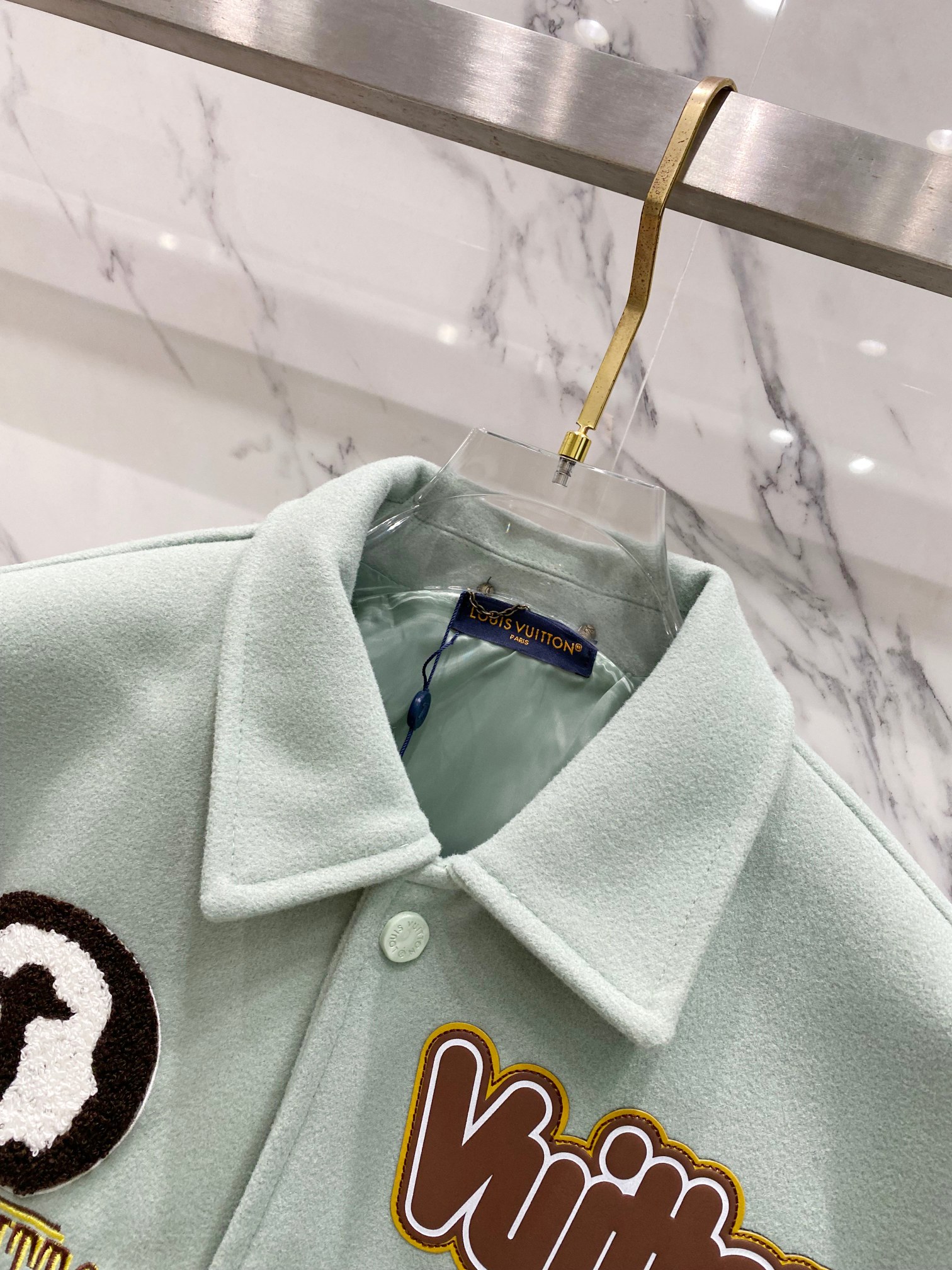 This Louis Vuitton varsity jacket is a standout piece from the 23FW collection, embodying luxury and contemporary style.
