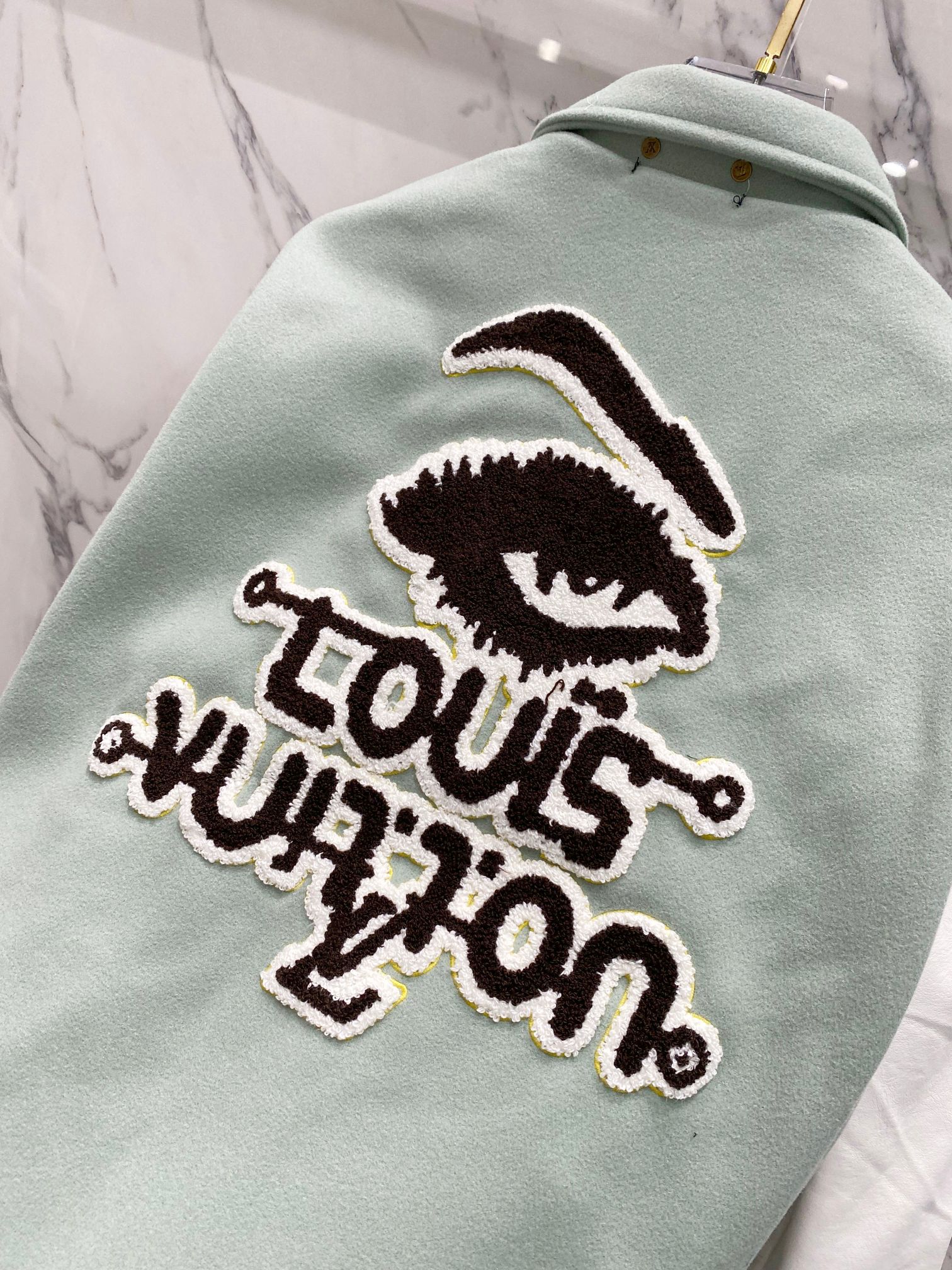 Tags: Designer Varsity Jacket, Embroidered Wool Jacket, High Fashion Outerwear, Louis Vuitton Varsity Jacket, Runway Fashion Jacket