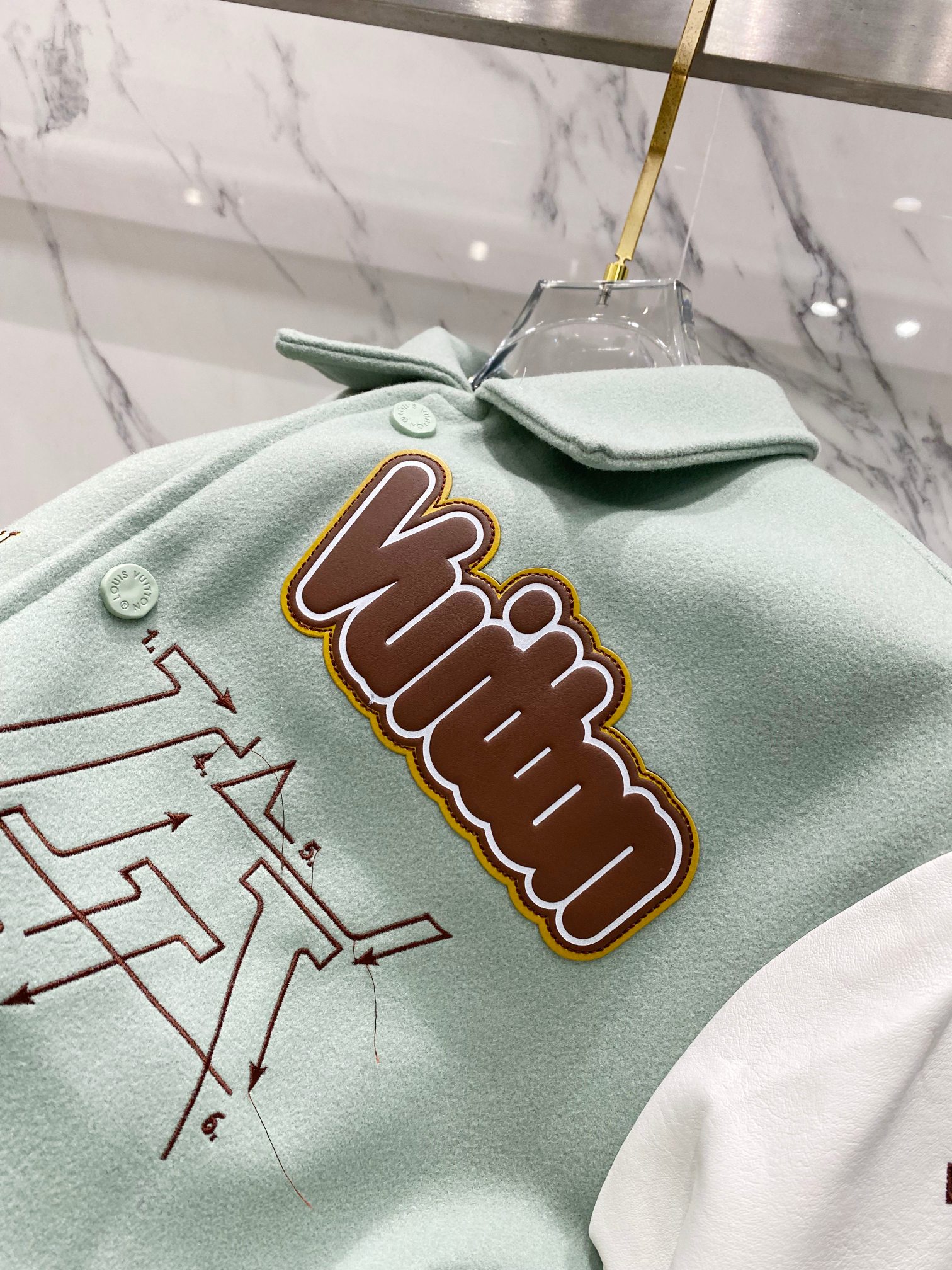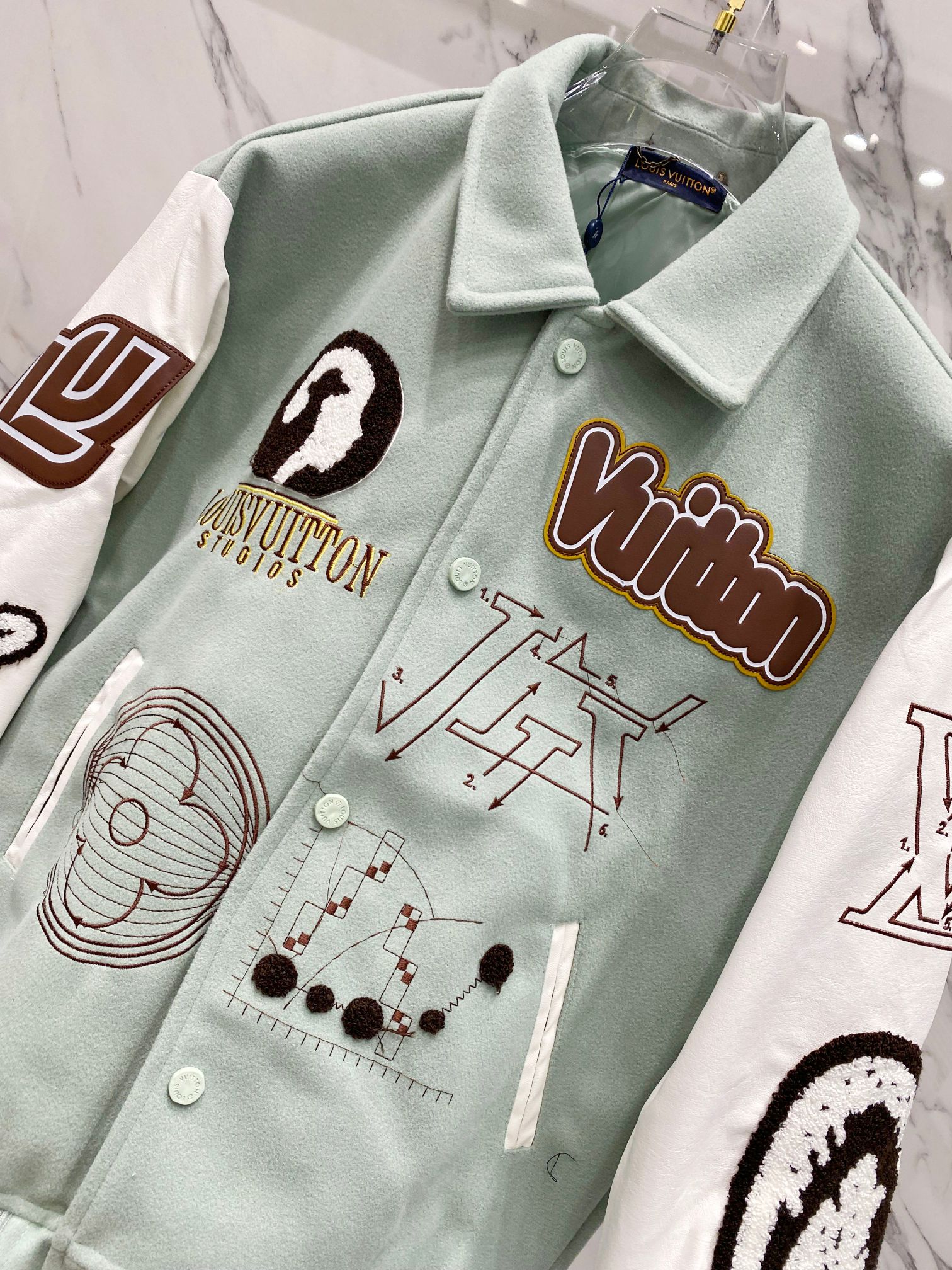 Elevate your style with this Louis Vuitton varsity jacket featuring intricate embroidery and premium materials. A statement piece for any wardrobe.