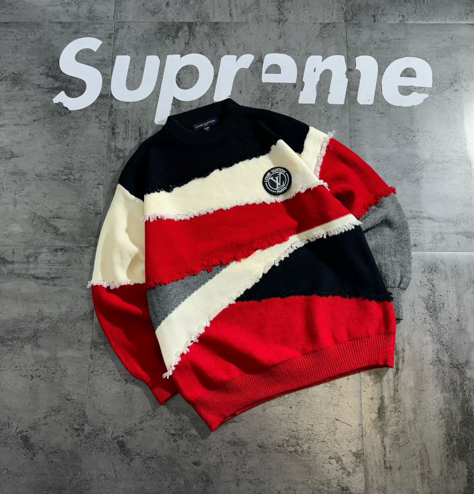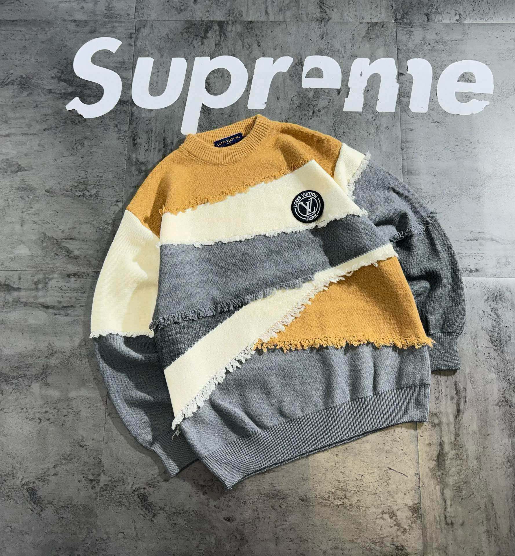 Tags: Bi-color patchwork knit, Couple knit sweater, Designer Knit Sweater, Louis Vuitton Sweater, Thickened knit sweater