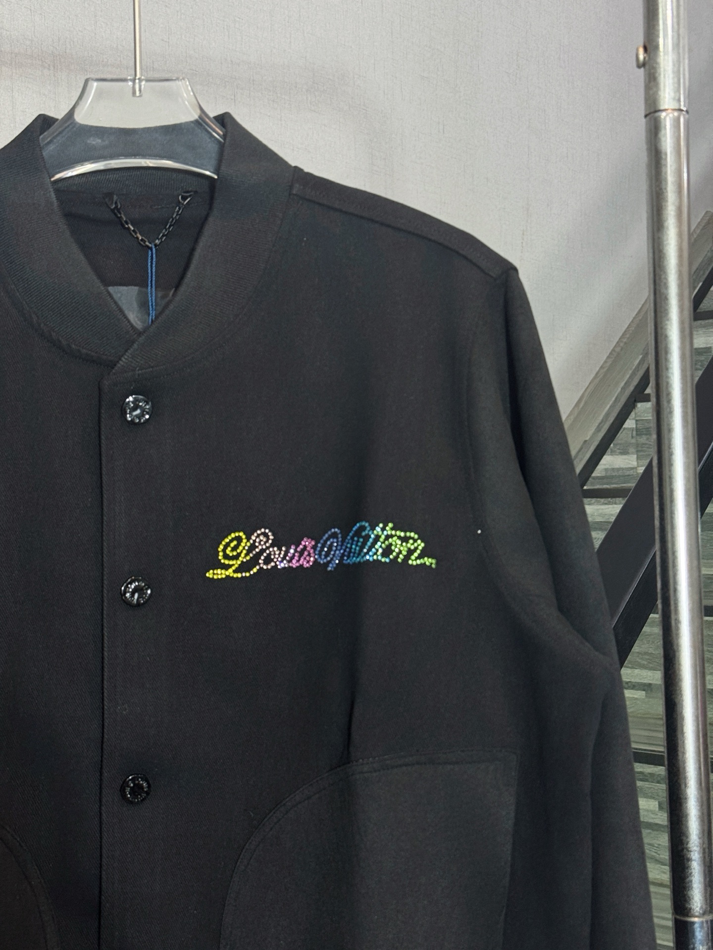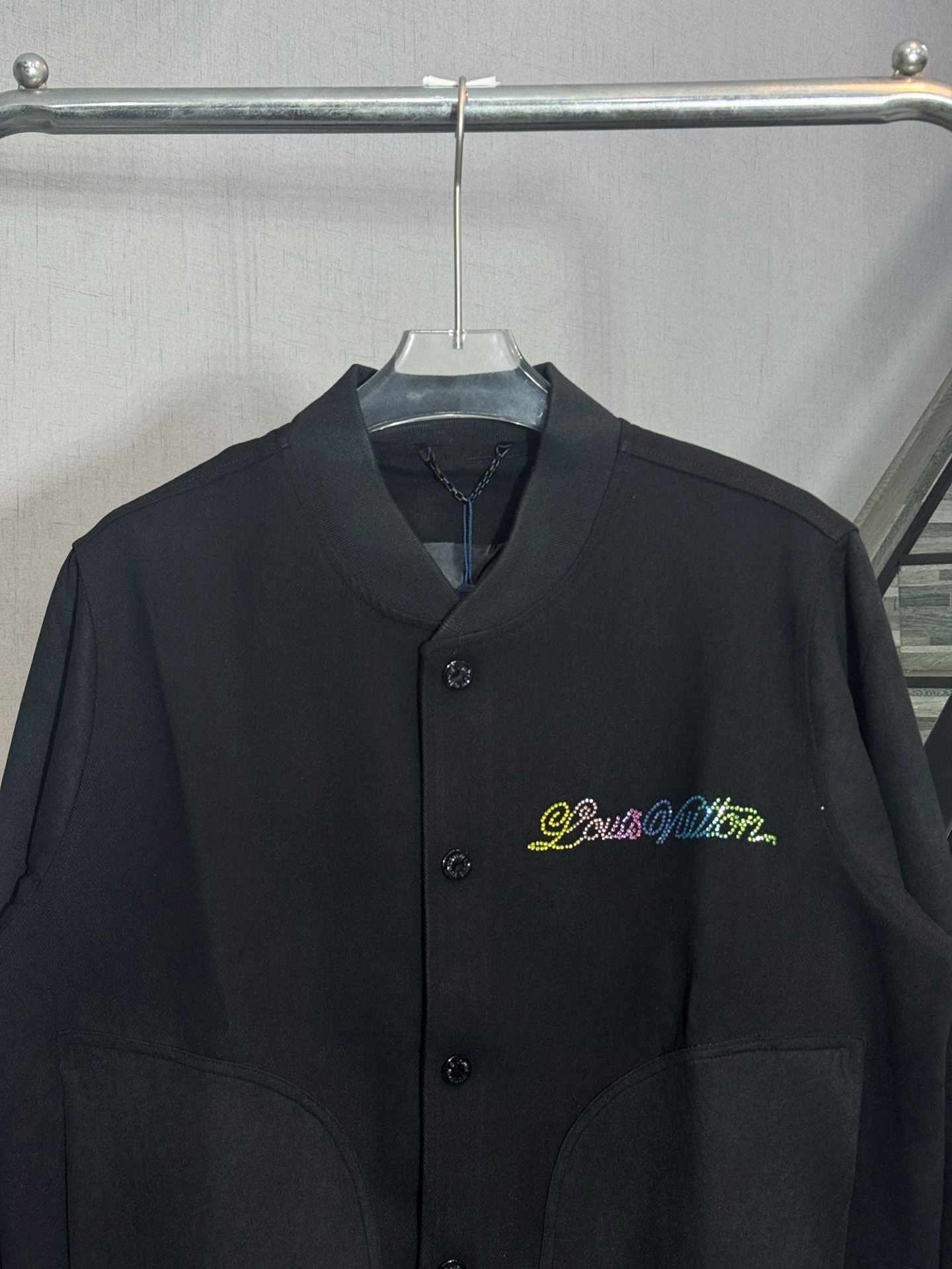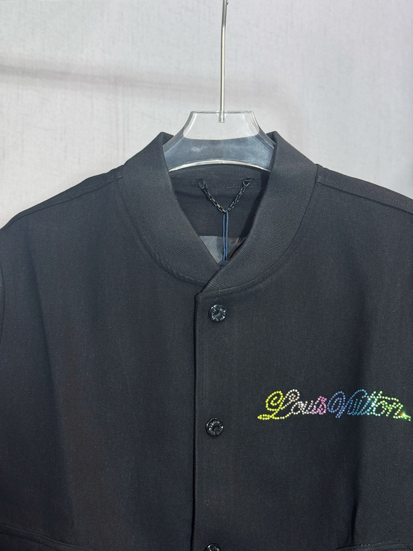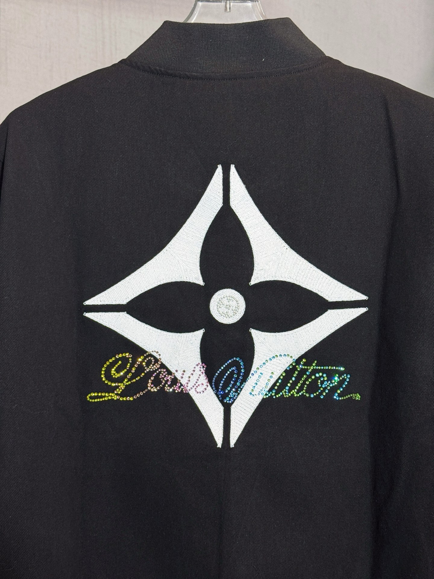 Tags: Black Louis Vuitton, Designer Cotton Jacket, Louis Vuitton Jacket, Luxury Outerwear, Rhinestone Embellished Jacket, Statement Jacket