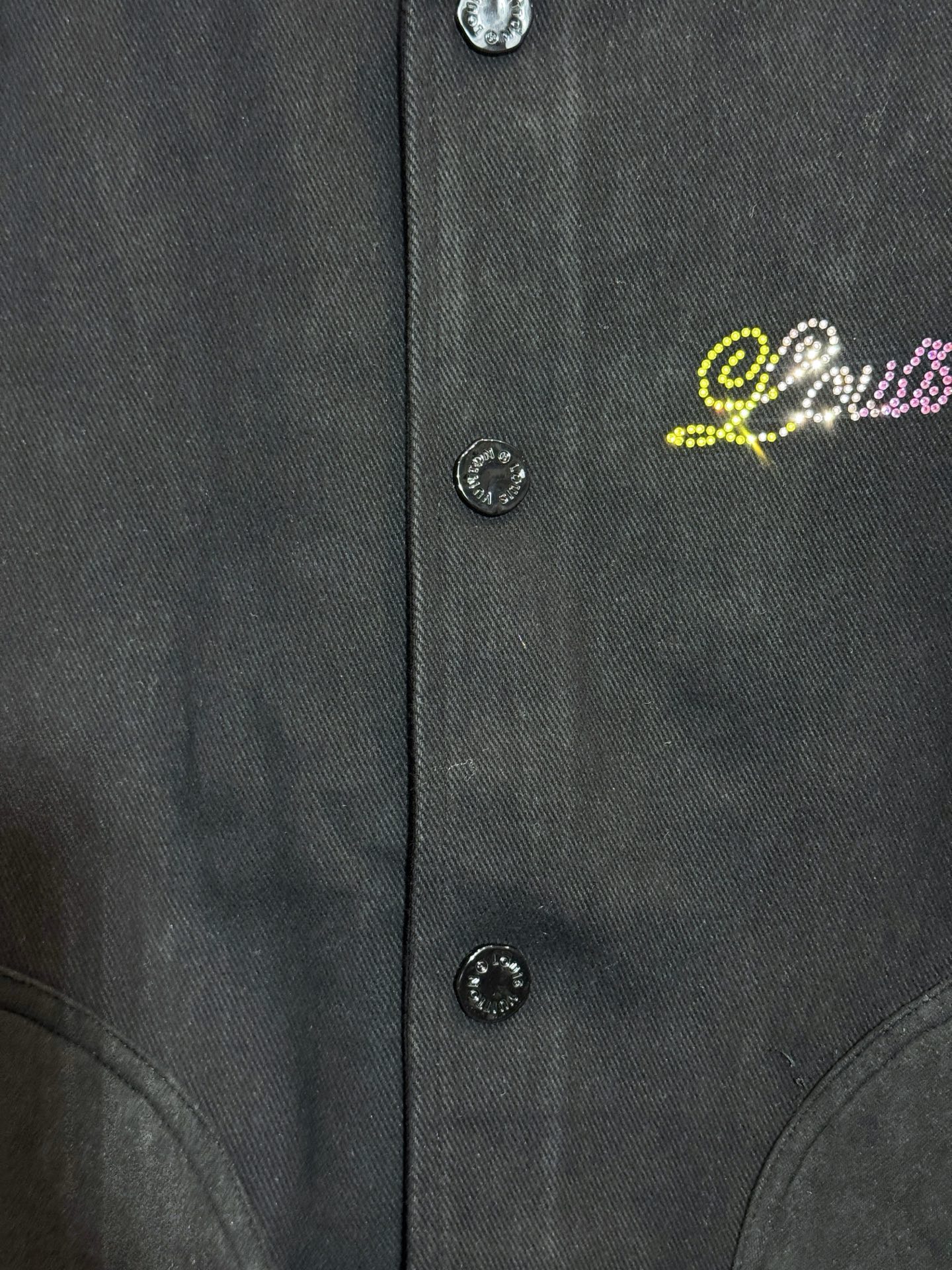 Louis Vuitton Black Cotton Blend Jacket with Rhinestone Logo