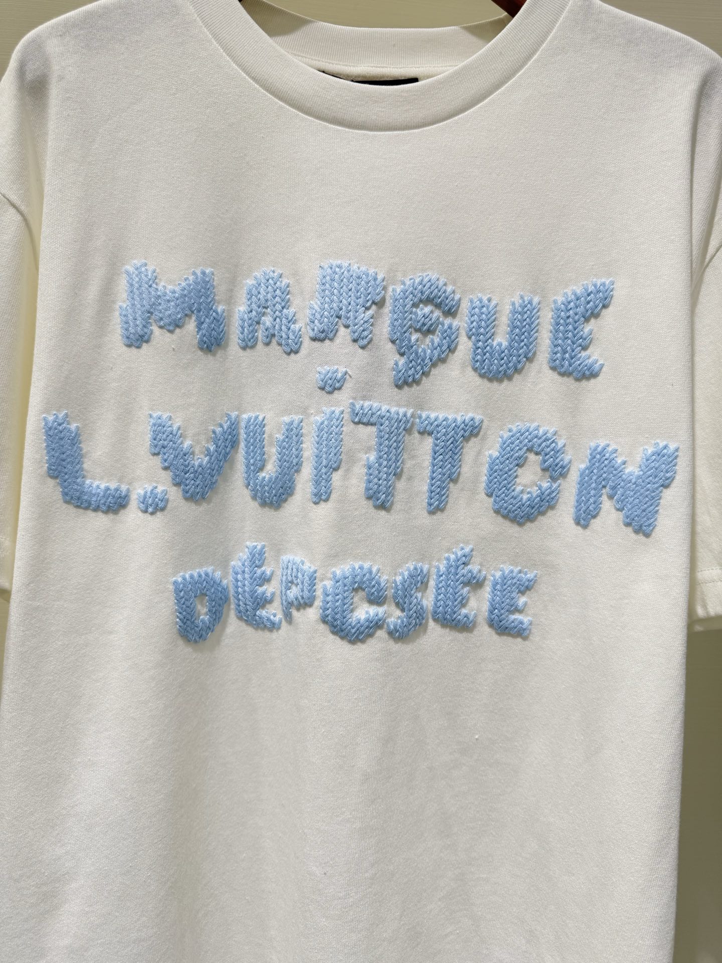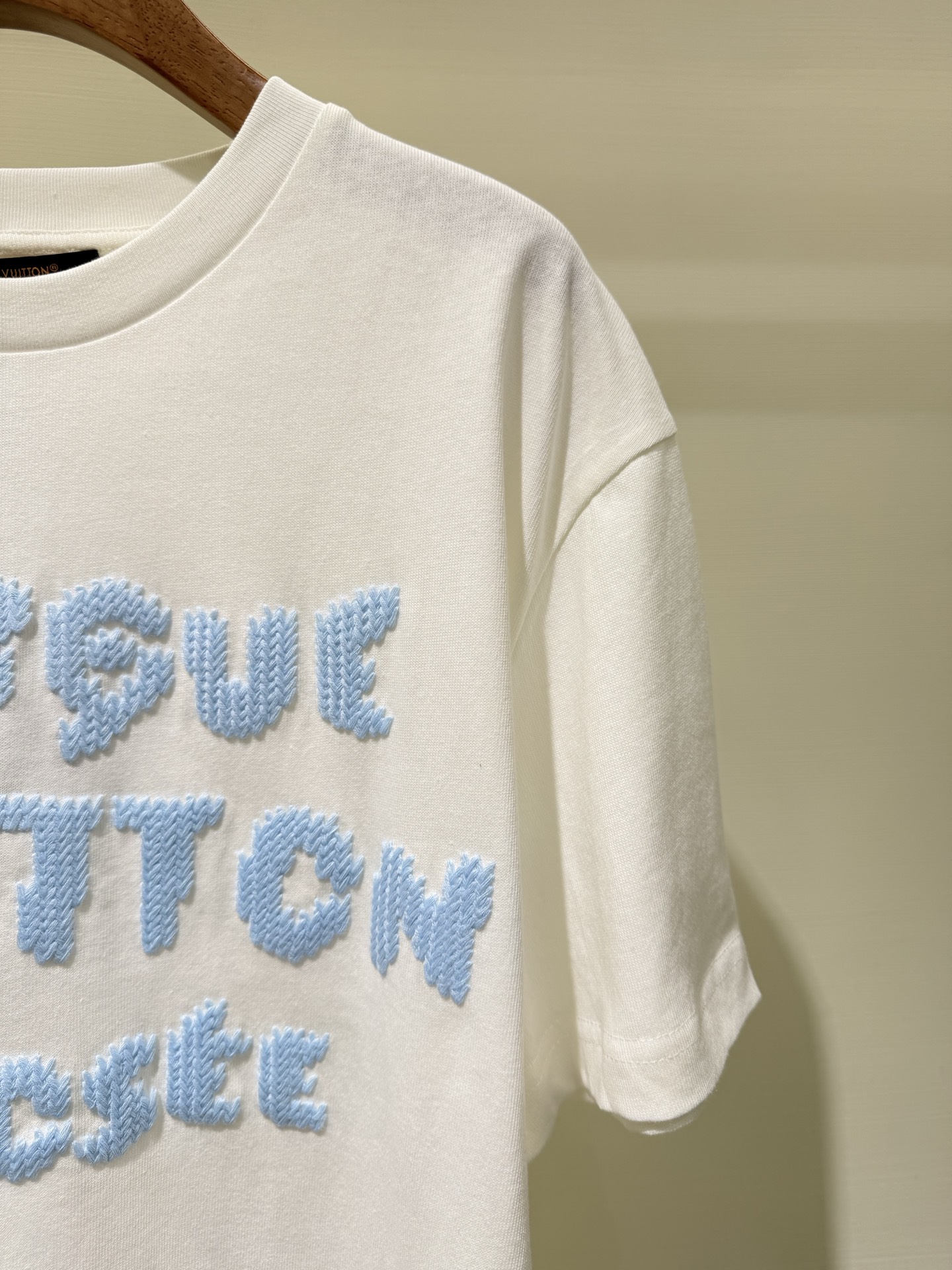 Elevate your casual style with this soft cotton Louis Vuitton T-shirt, featuring unique wool-like embroidery and a comfortable fit. Perfect for any occasion.