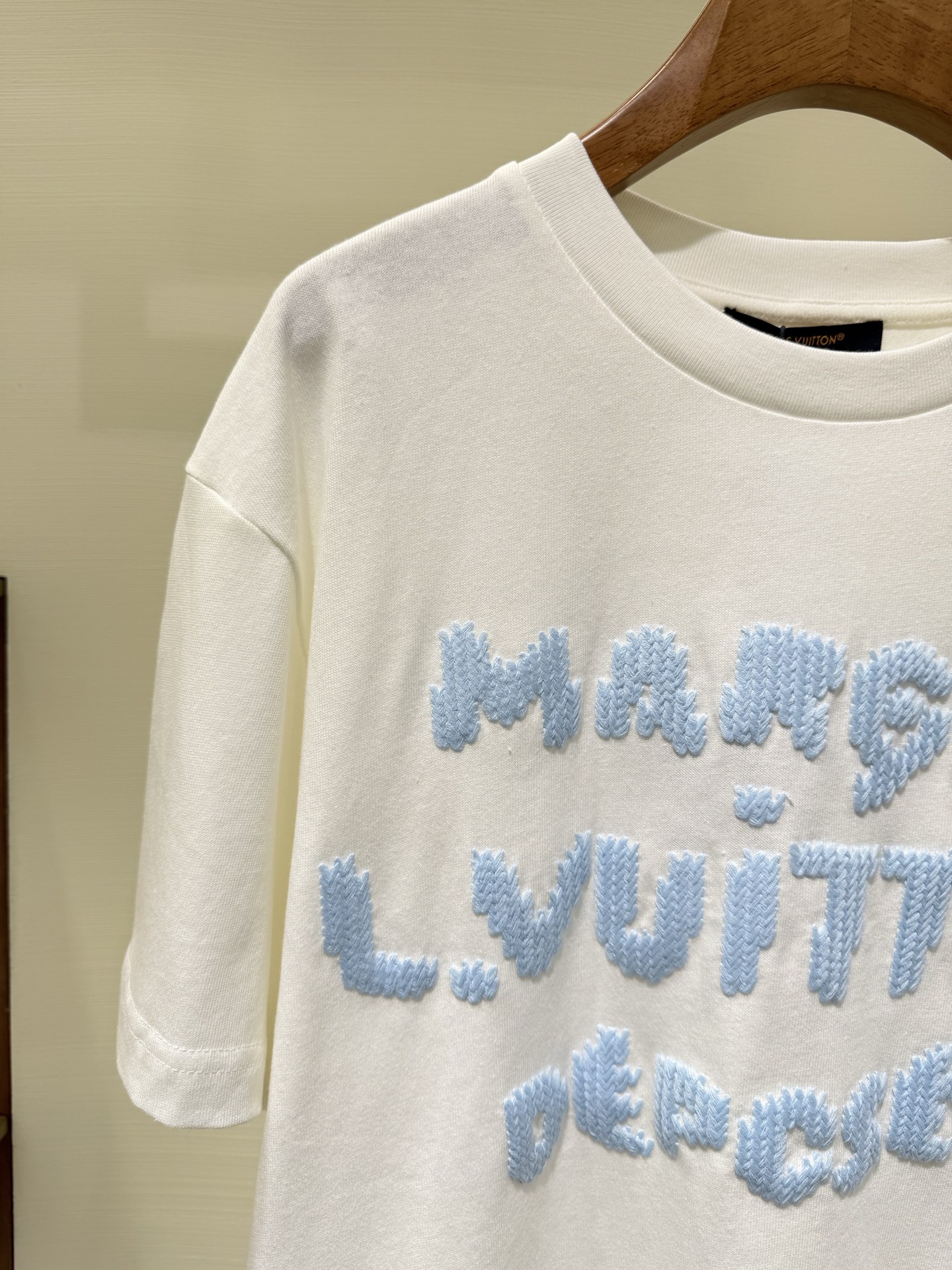 Tags: Designer Cotton Tee, Louis Vuitton T-Shirt, Luxury Casual Wear, Unisex Short Sleeve Tee, Wool Embroidered T Shirt