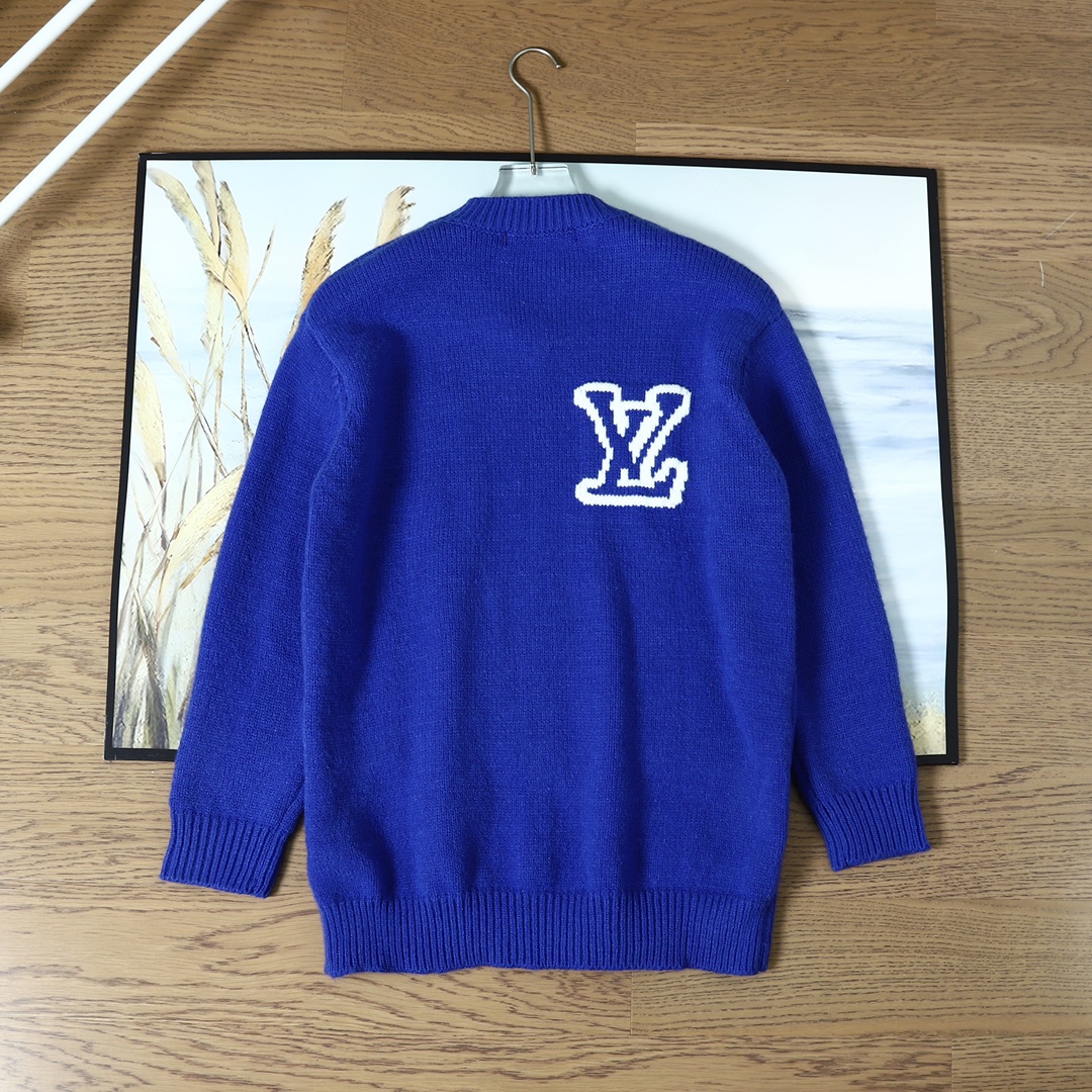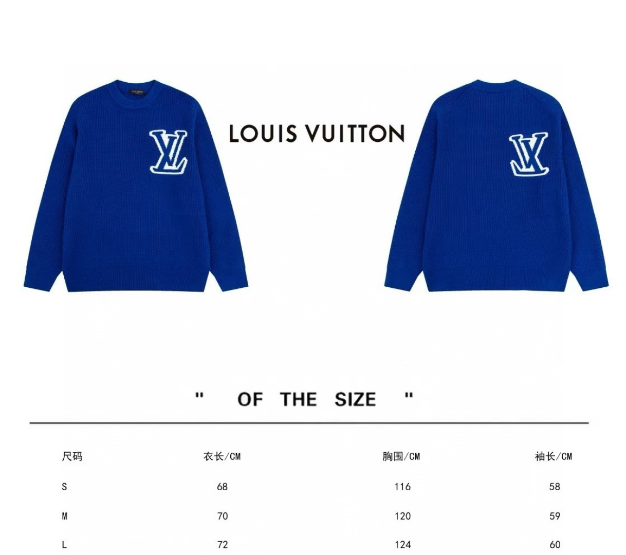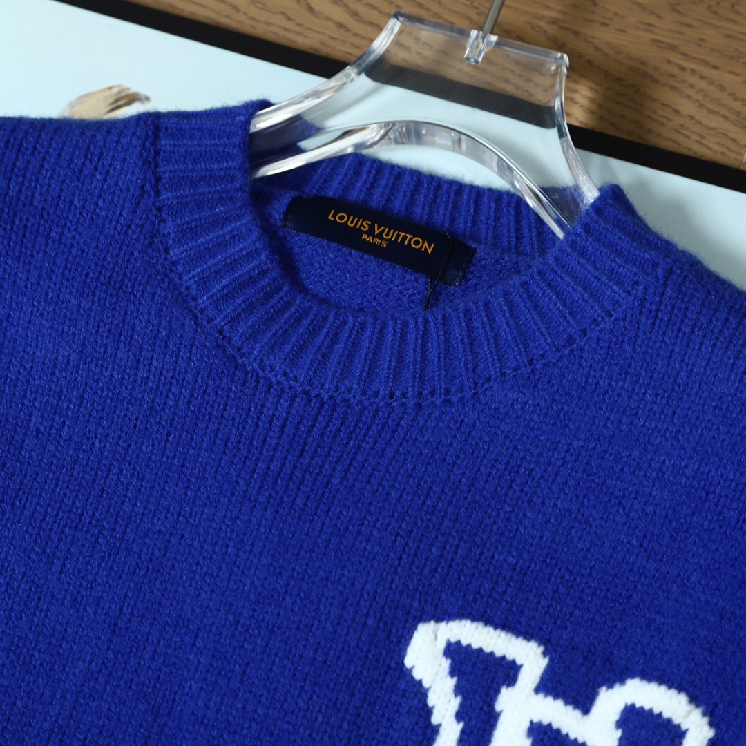 Elevate your style with this Louis Vuitton 24ss blue wool knit sweater. Features jacquard design, unisex OS fit, and premium wool material.
