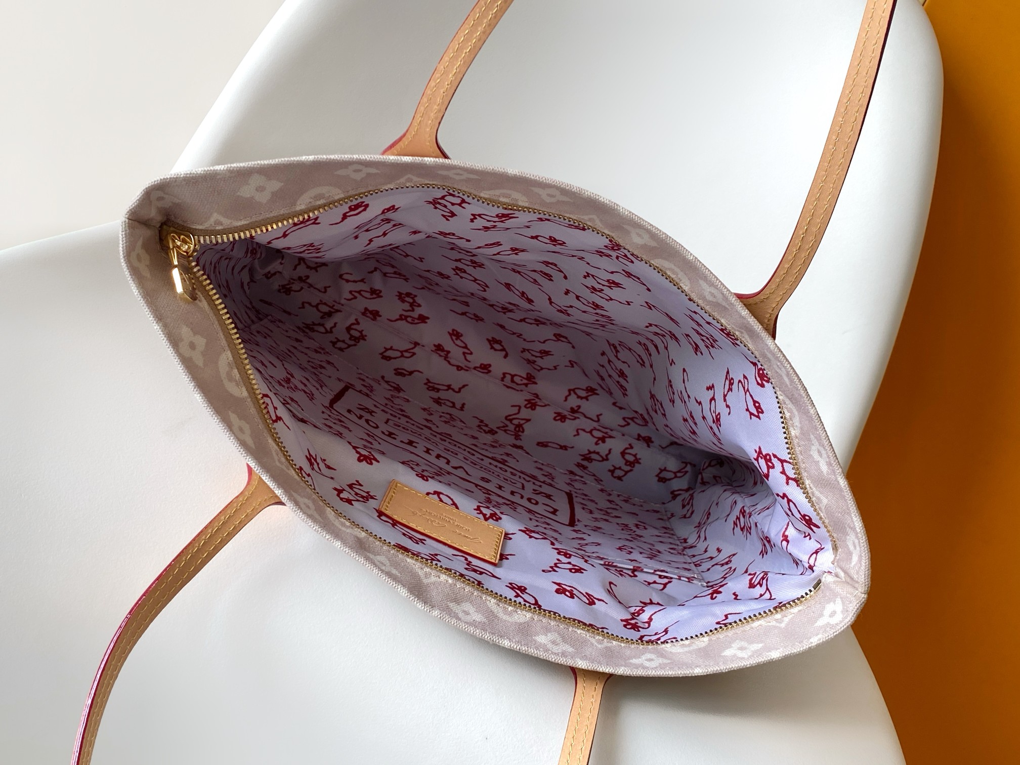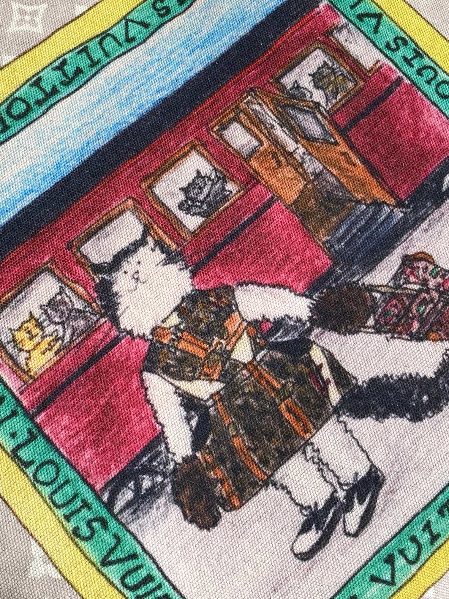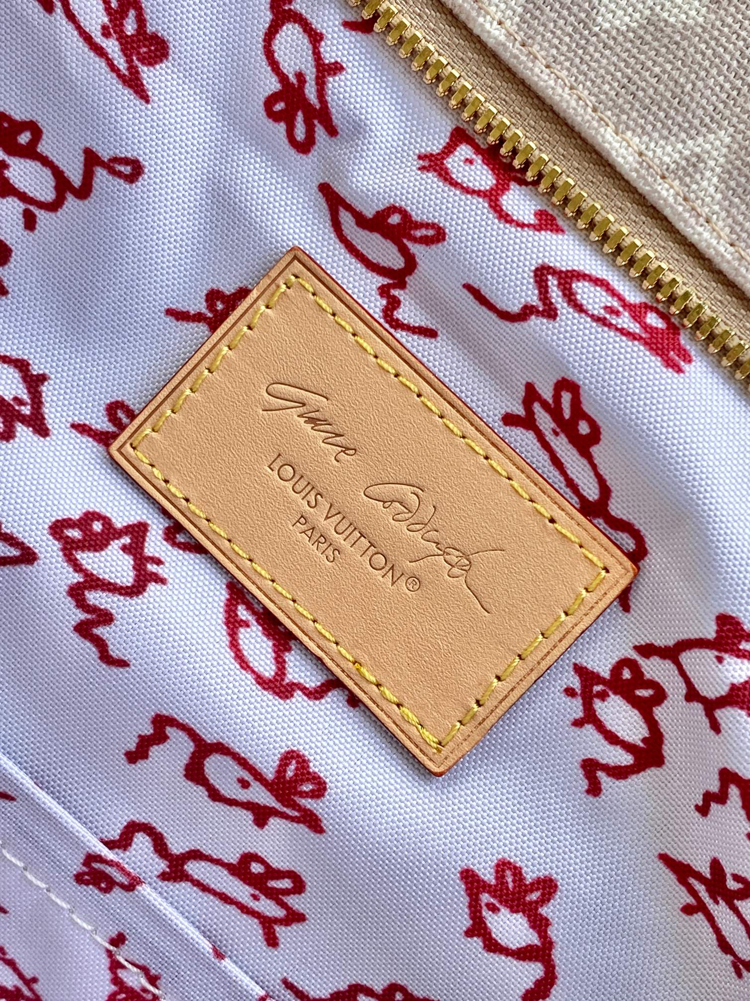 The Carryall bag from the Louis Vuitton Travels With Grace Coddington collection is a unique blend of luxury and whimsy. This piece showcases the creative collaboration between Louis Vuitton and Grace Coddington, featuring playful cat illustrations and a distinctive design.