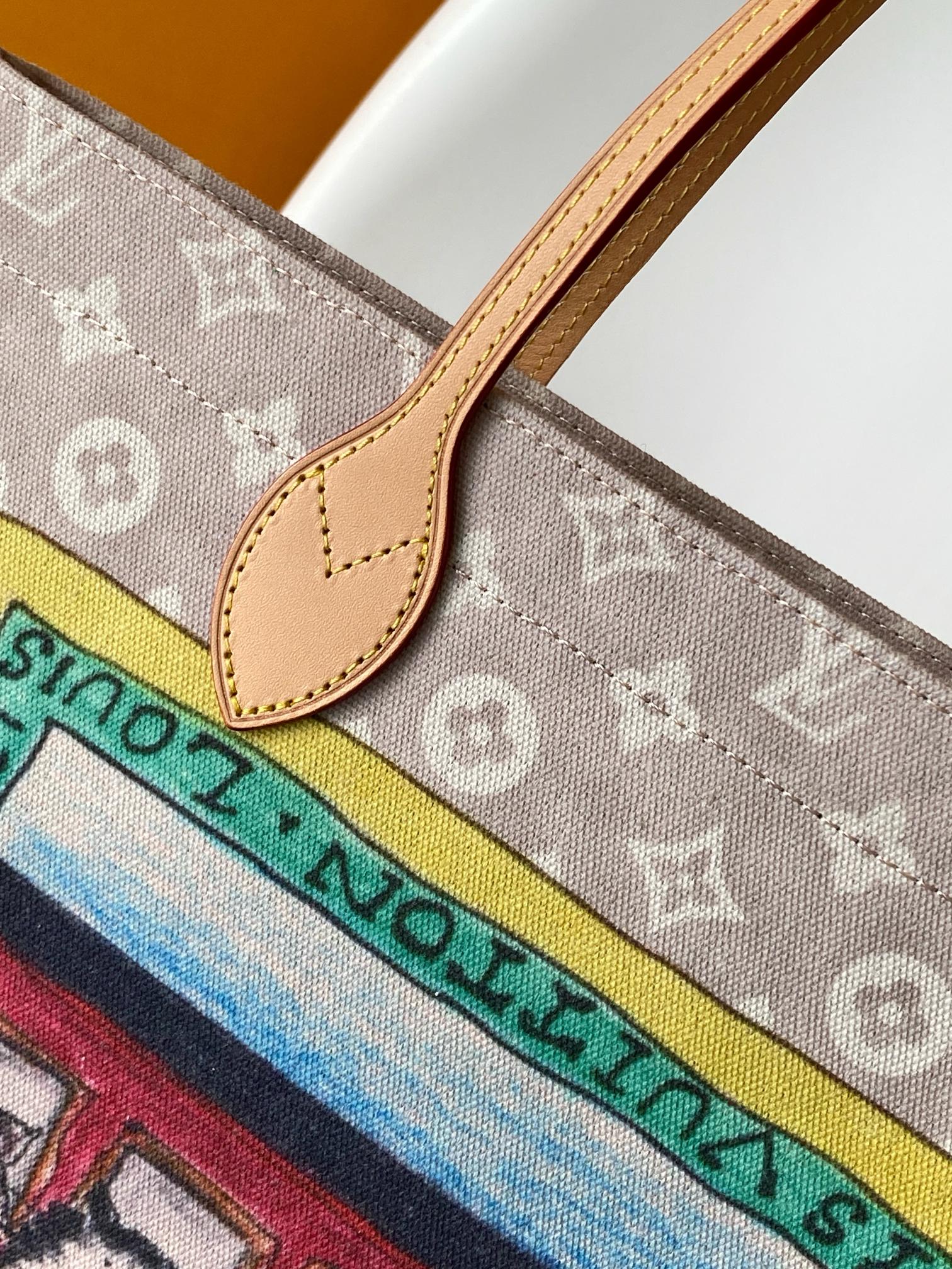 The Louis Vuitton Carryall bag features a playful design from the Travels With Grace Coddington collection. Crafted from cotton canvas with leather trim.