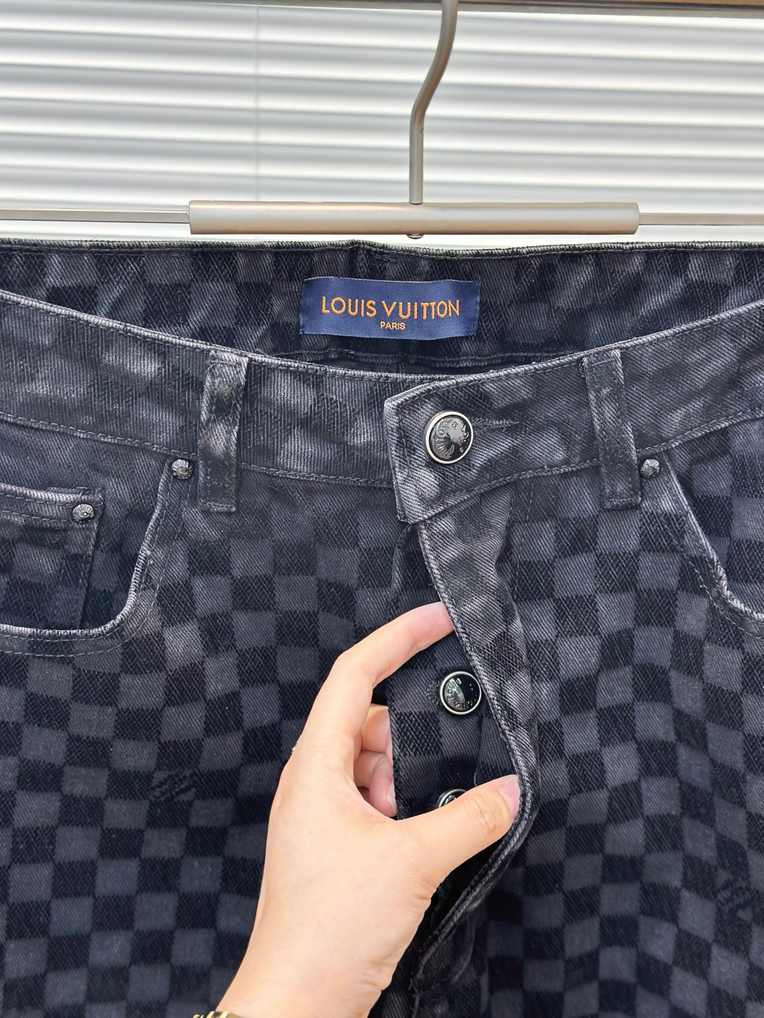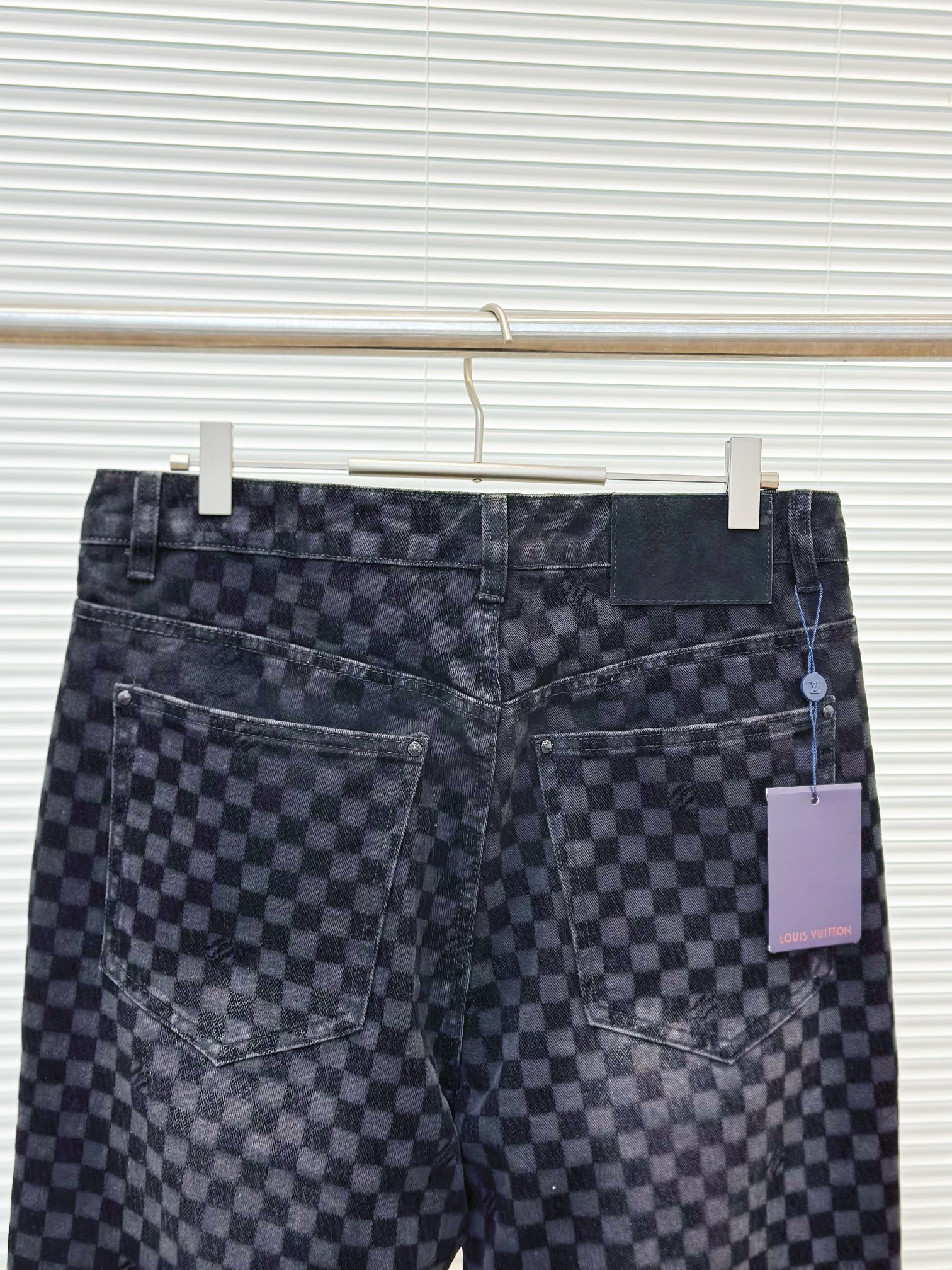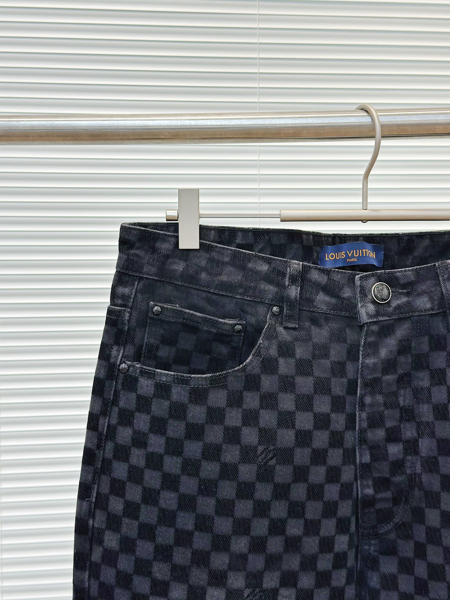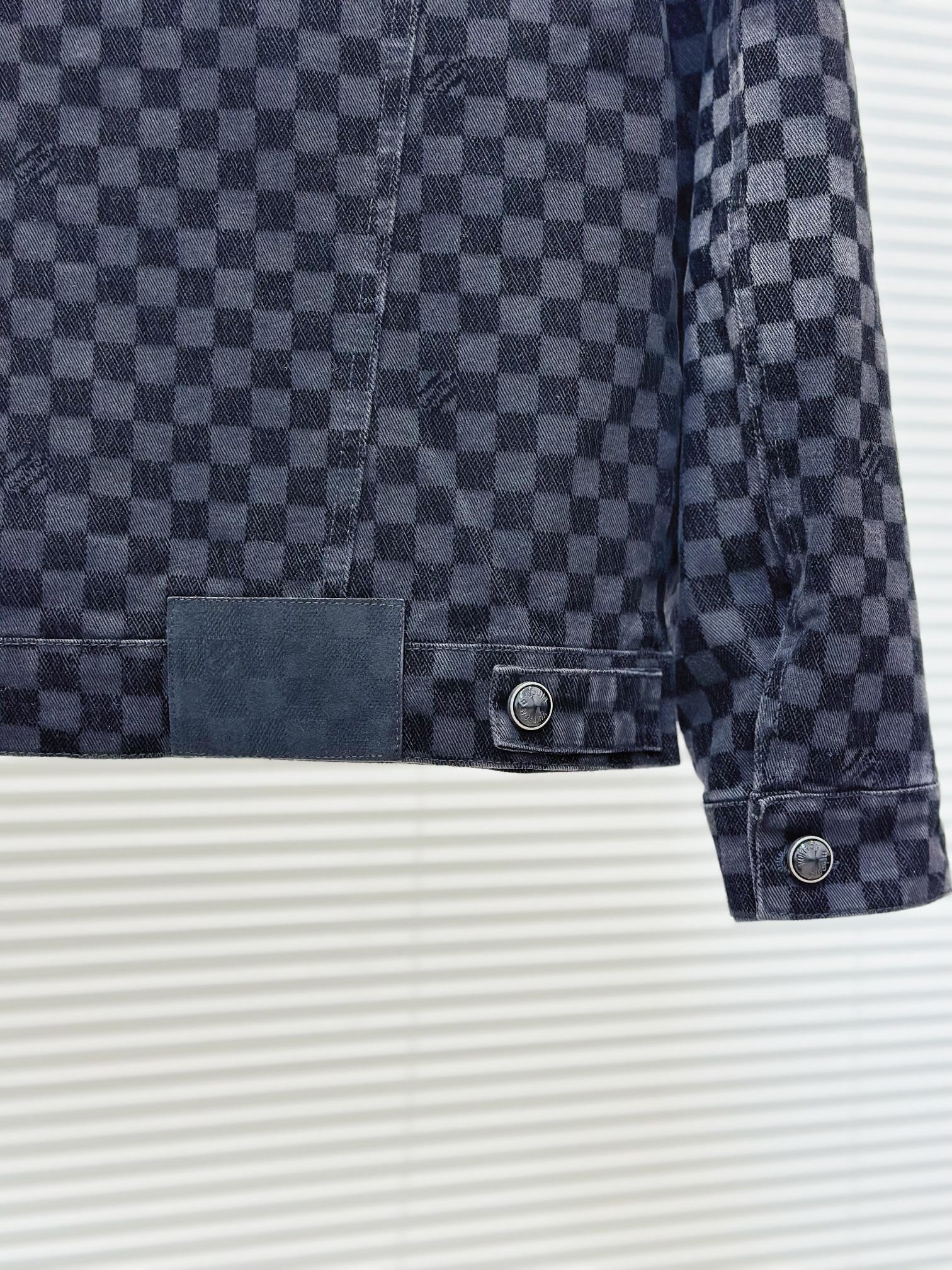 Tags: Checkered Denim Set, Designer Denim Outfit, High Fashion Jeans, Louis Vuitton Denim, Luxury Denim Jacket