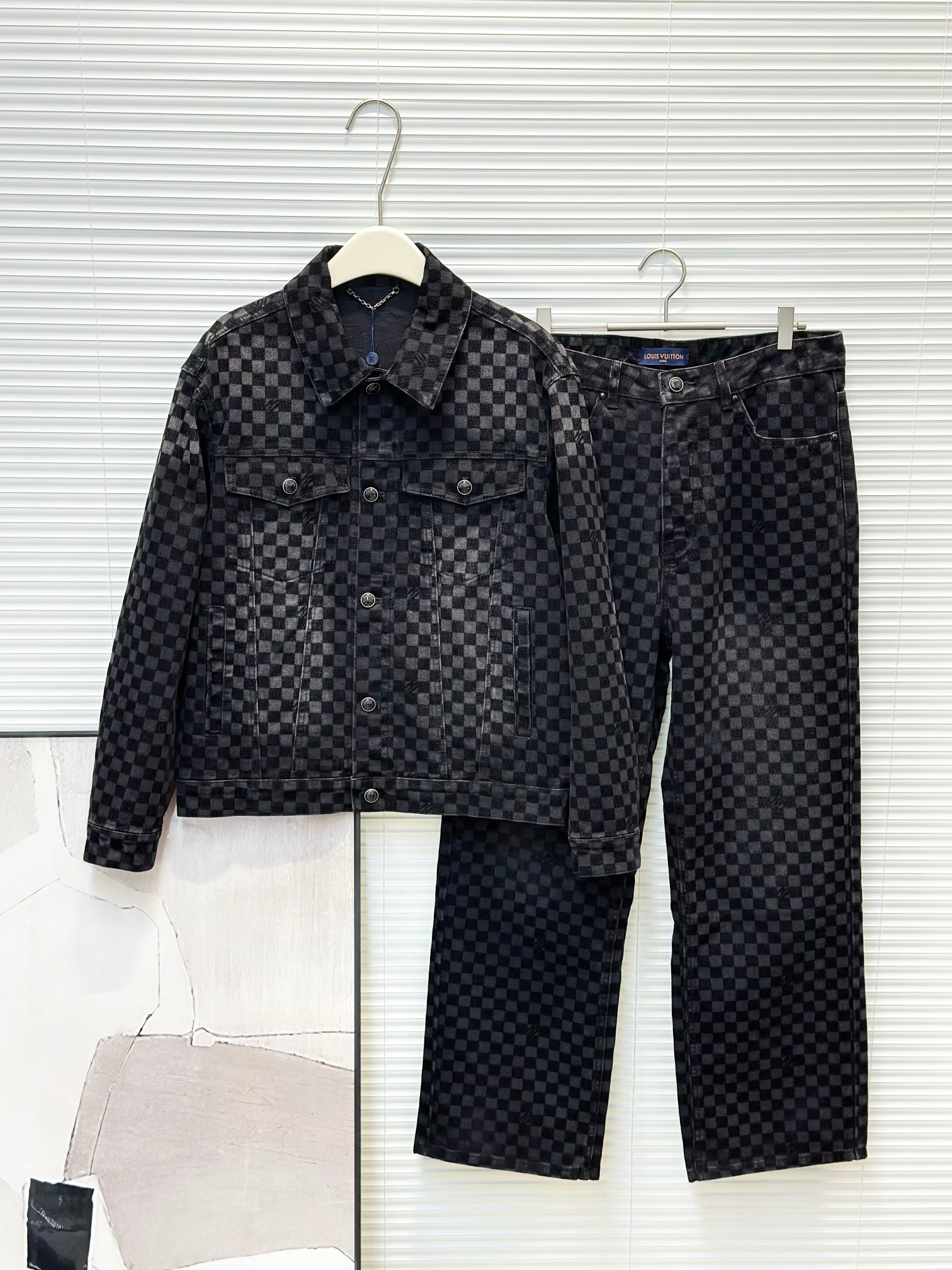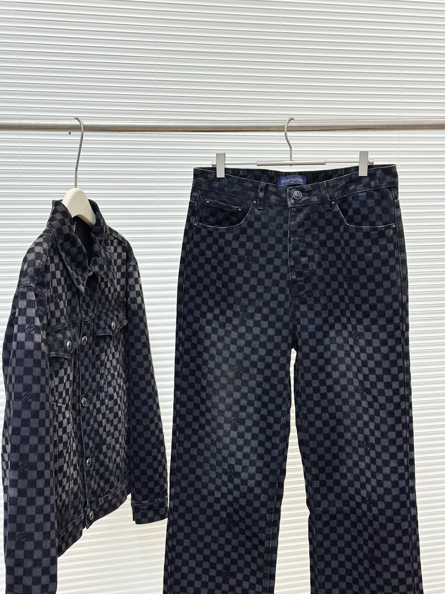 Louis Vuitton Checkered Denim Jacket & Jeans Set - Modern, Stylish Outfit