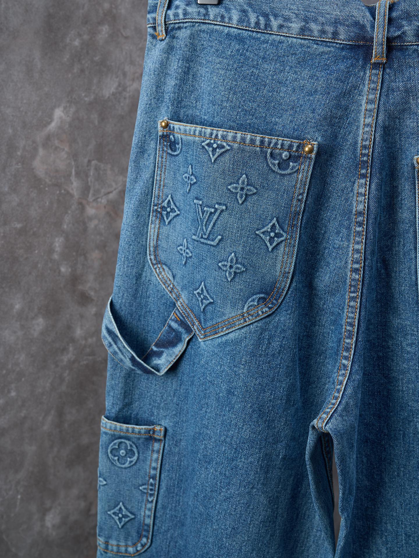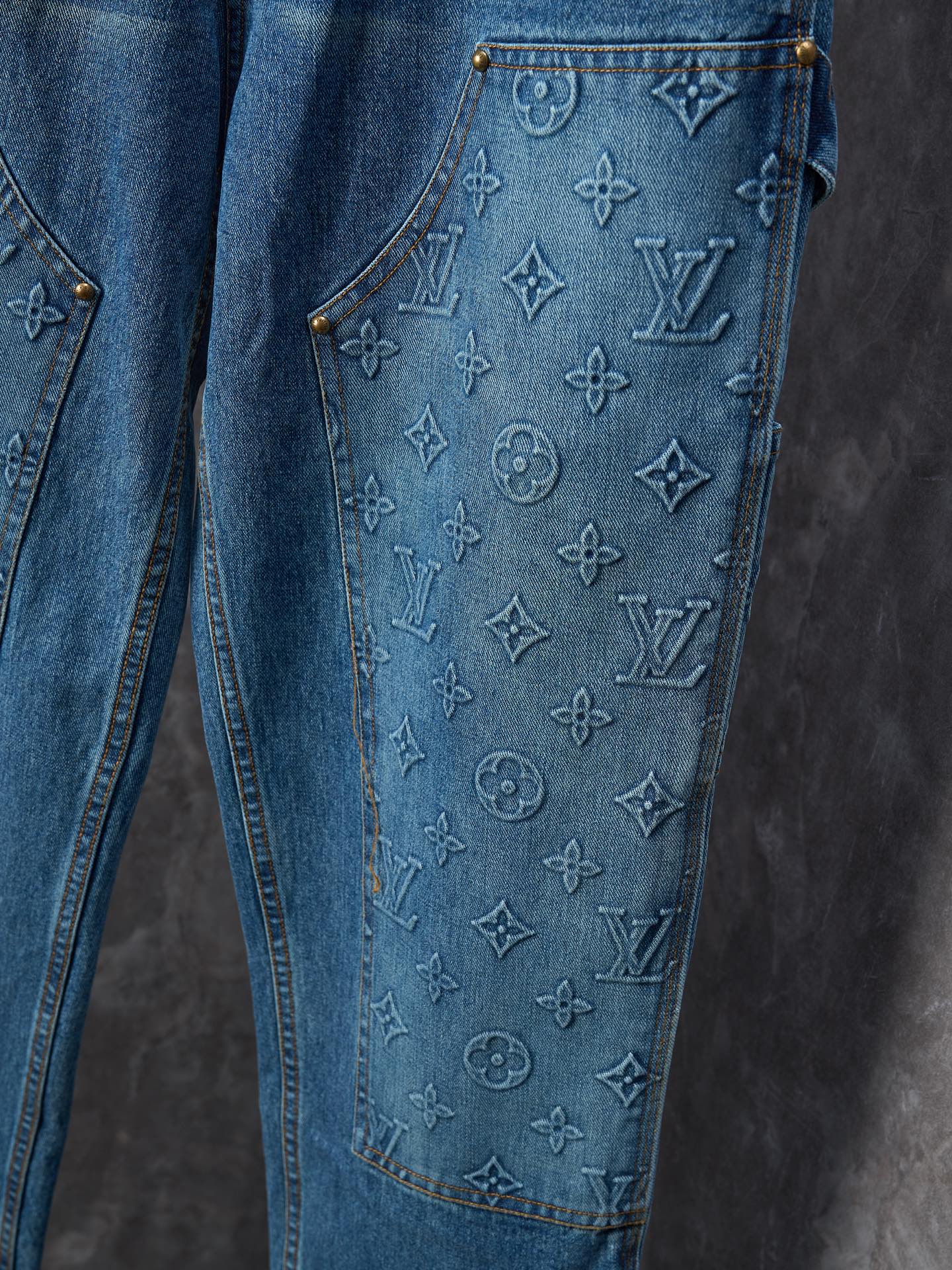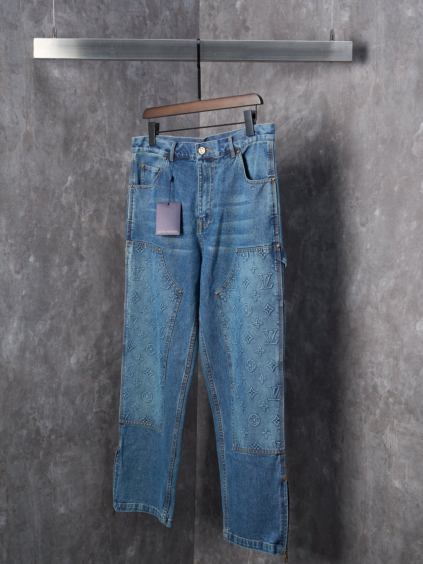 Louis Vuitton Classic Embossed Denim Pants with Leg Zipper - In Stock