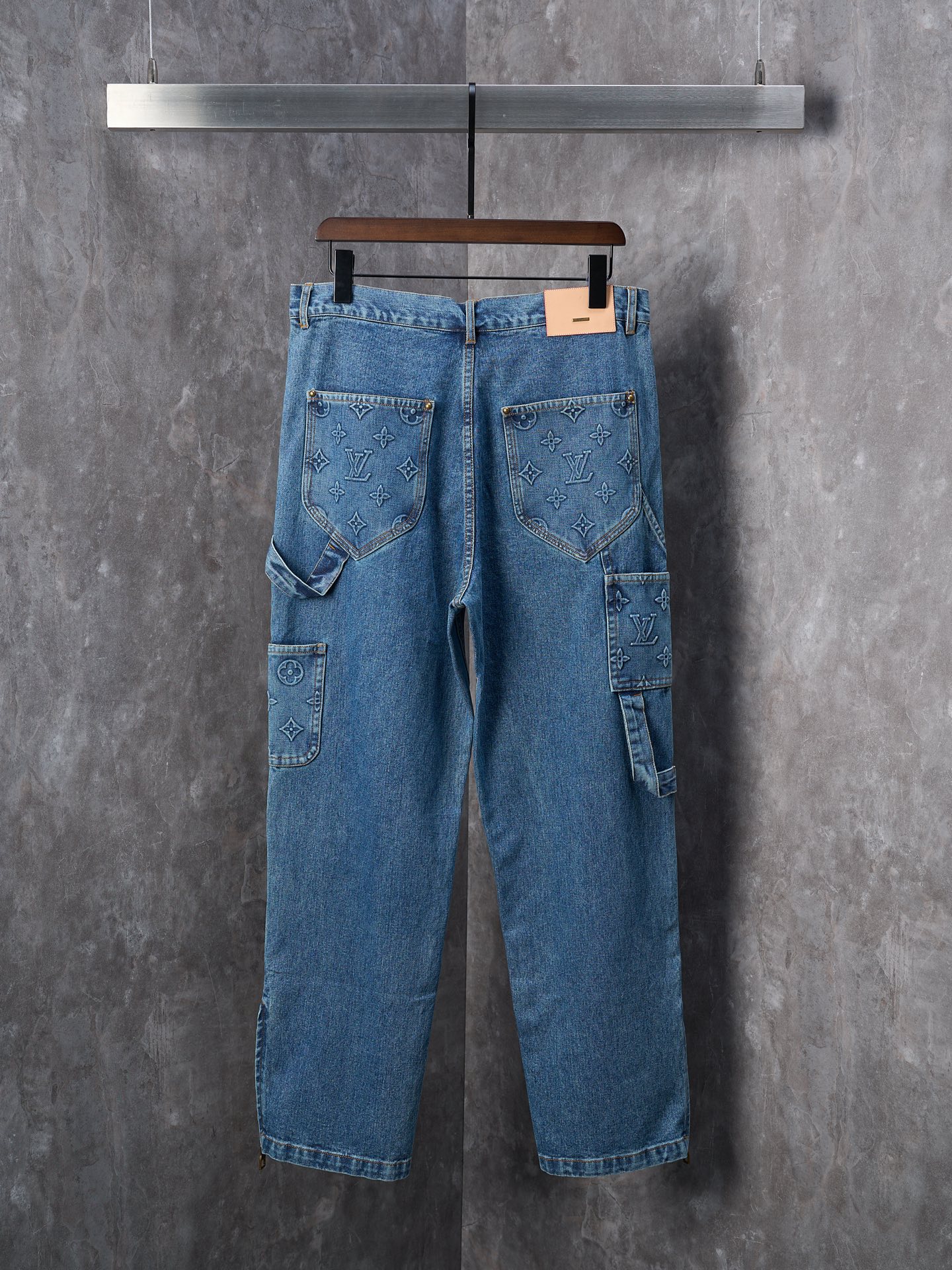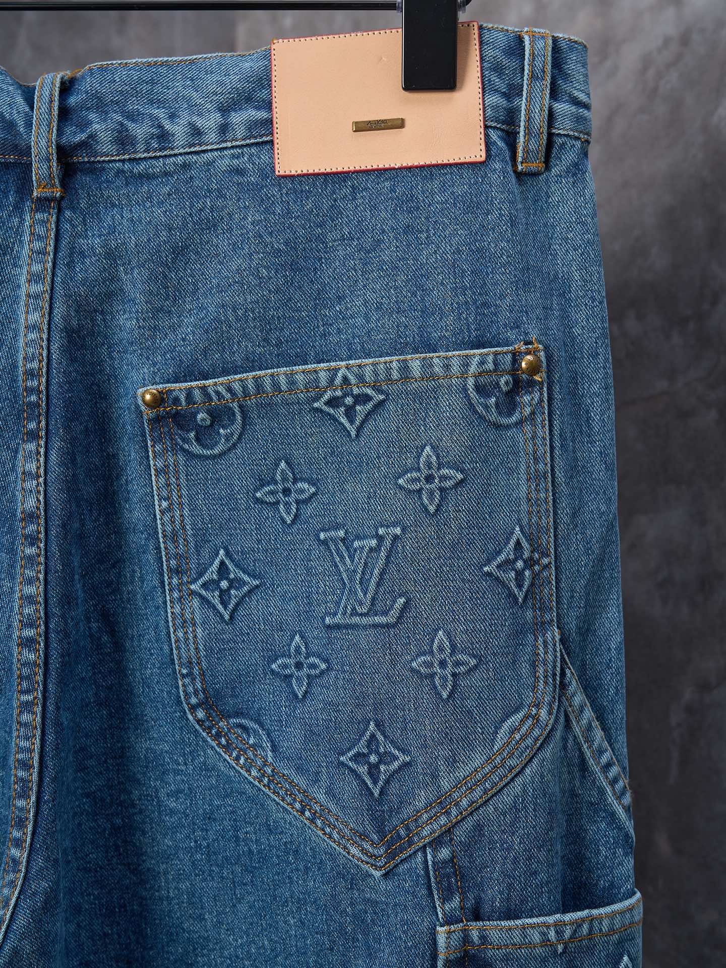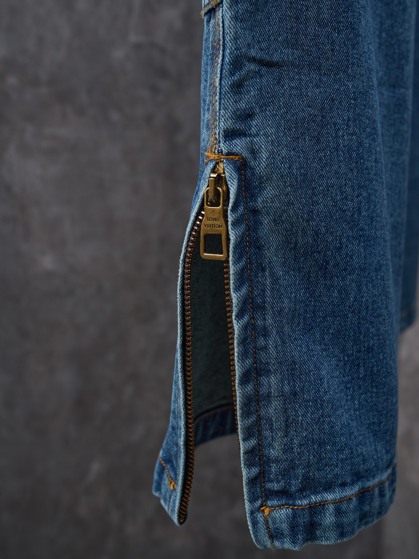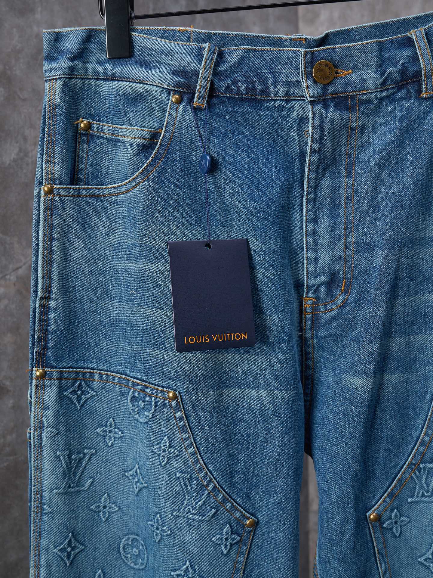 Louis Vuitton Classic Embossed Denim Pants with Leg Zipper - In Stock