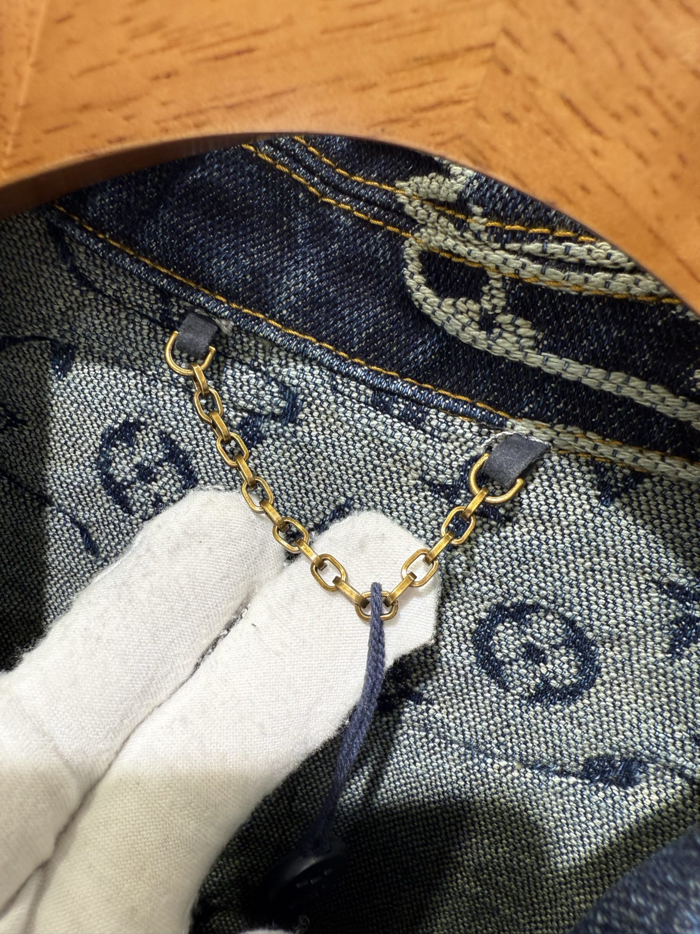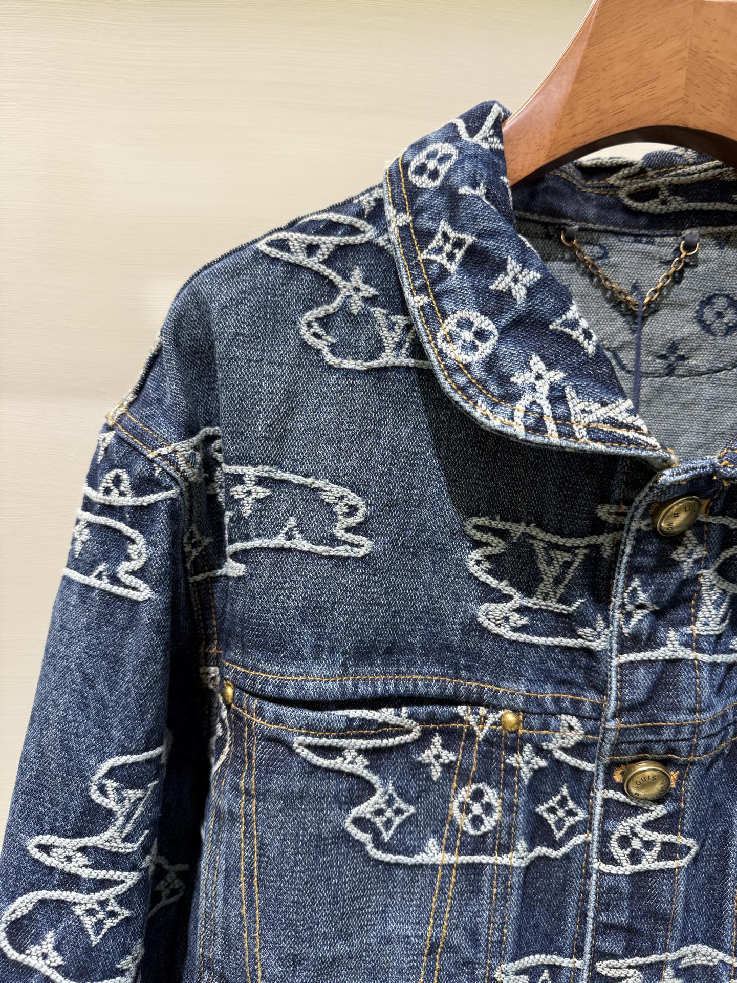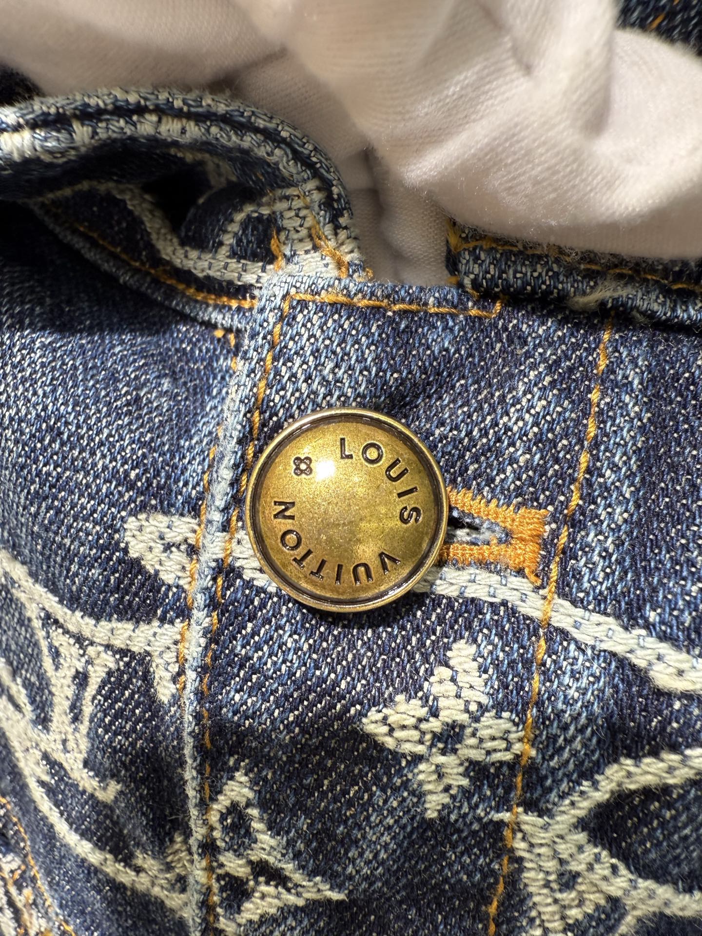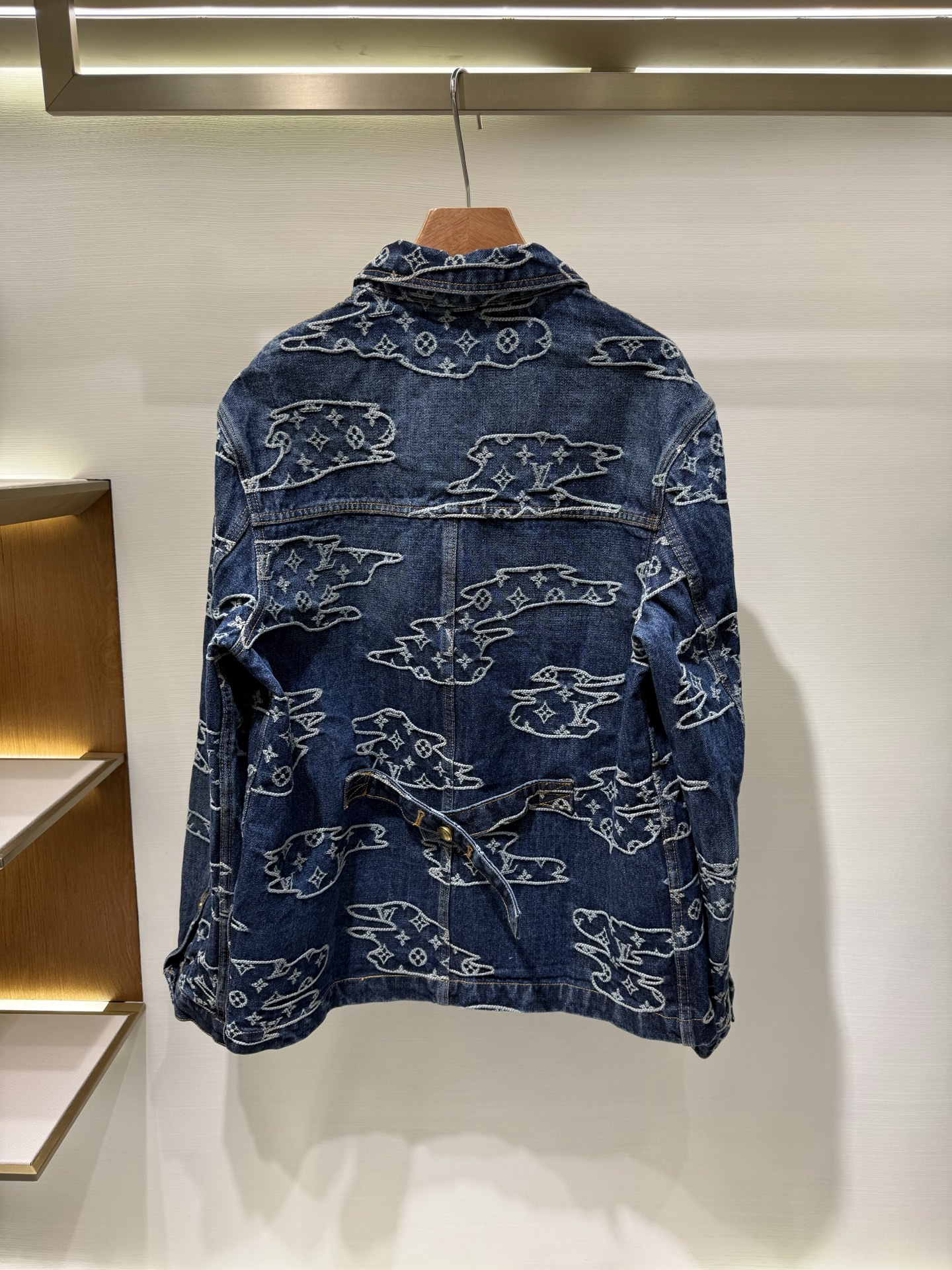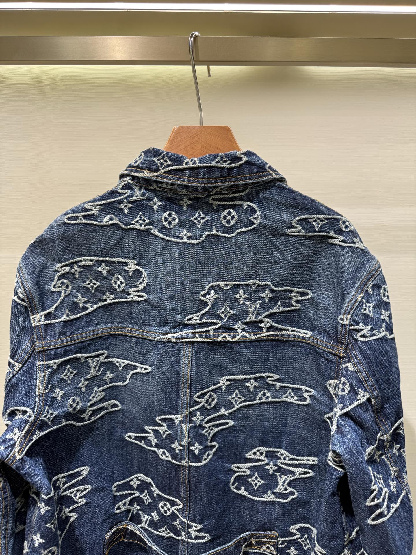 This Louis Vuitton denim jacket combines classic style with unique design elements. The cloud jacquard pattern and washed blue finish make it a standout piece.