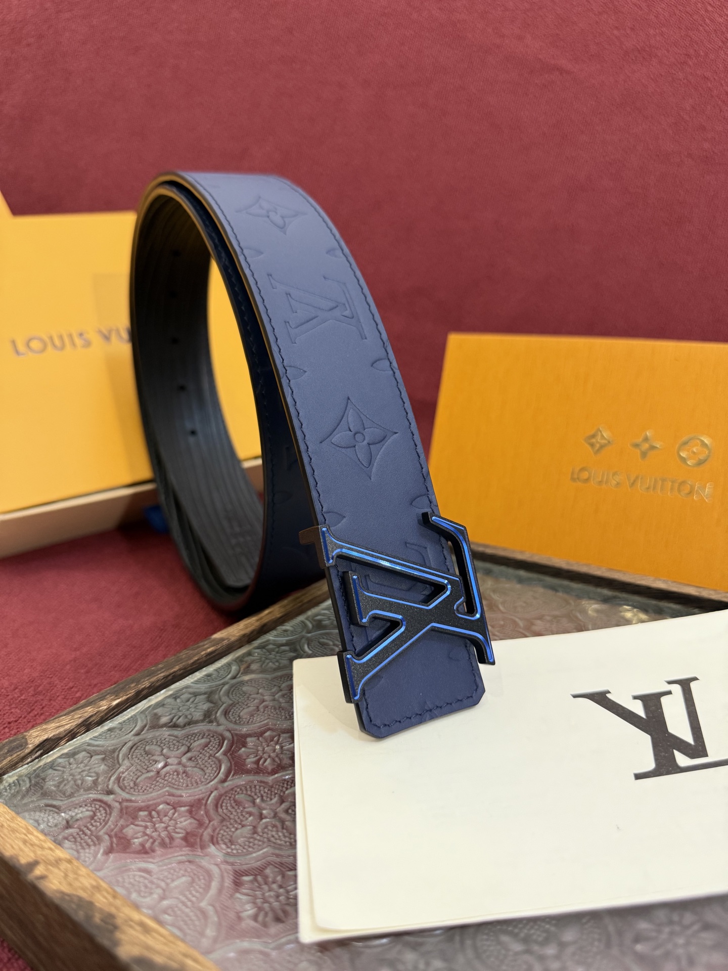 - Slim buckle with the Louis Vuitton logo.