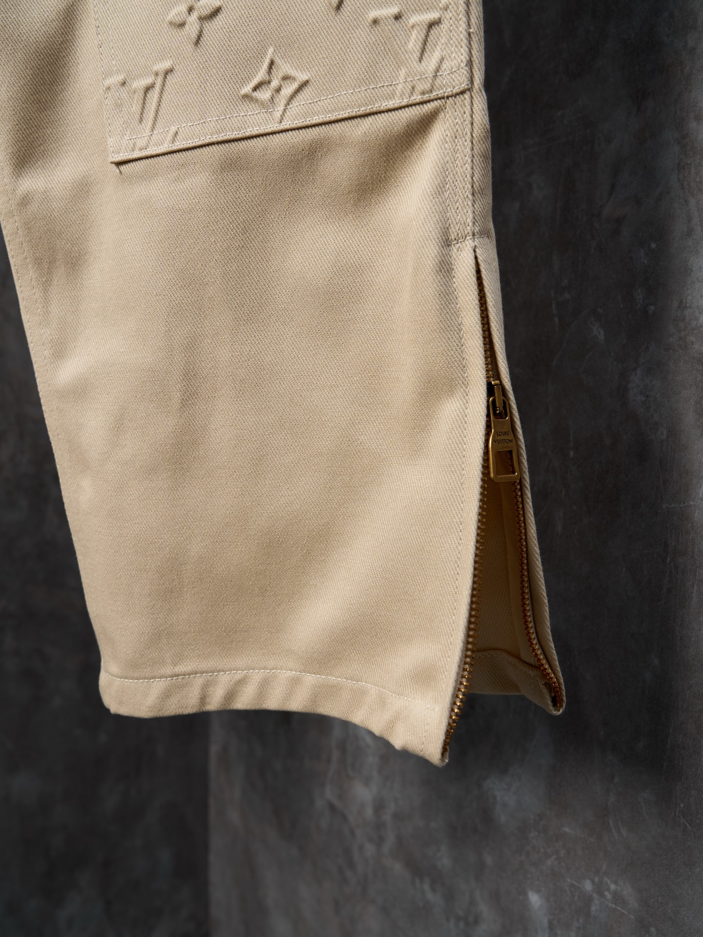 Elevate your denim game with these Louis Vuitton jeans. Featuring an embossed monogram and stylish zip hems. Available now!