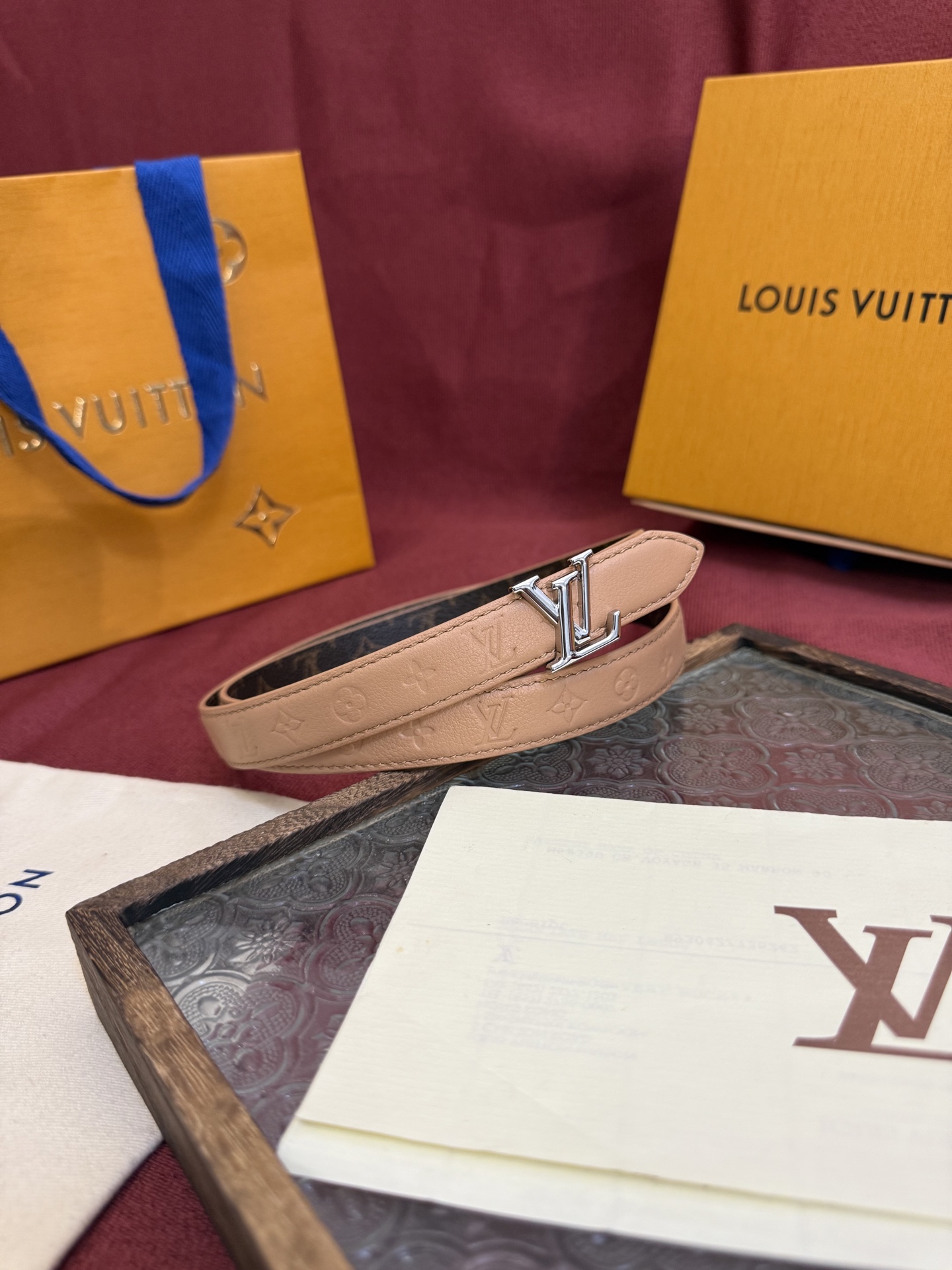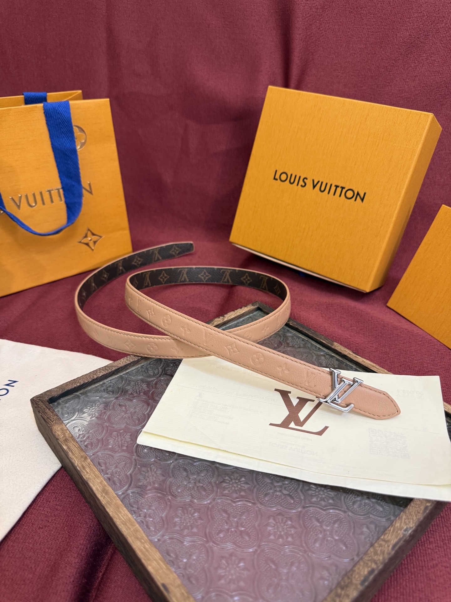 I'm so happy with my purchase! The Louis Vuitton belt is beautiful and versatile. I love that I can wear it with both casual and dressy outfits. The quality is impeccable, as expected from Louis Vuitton.