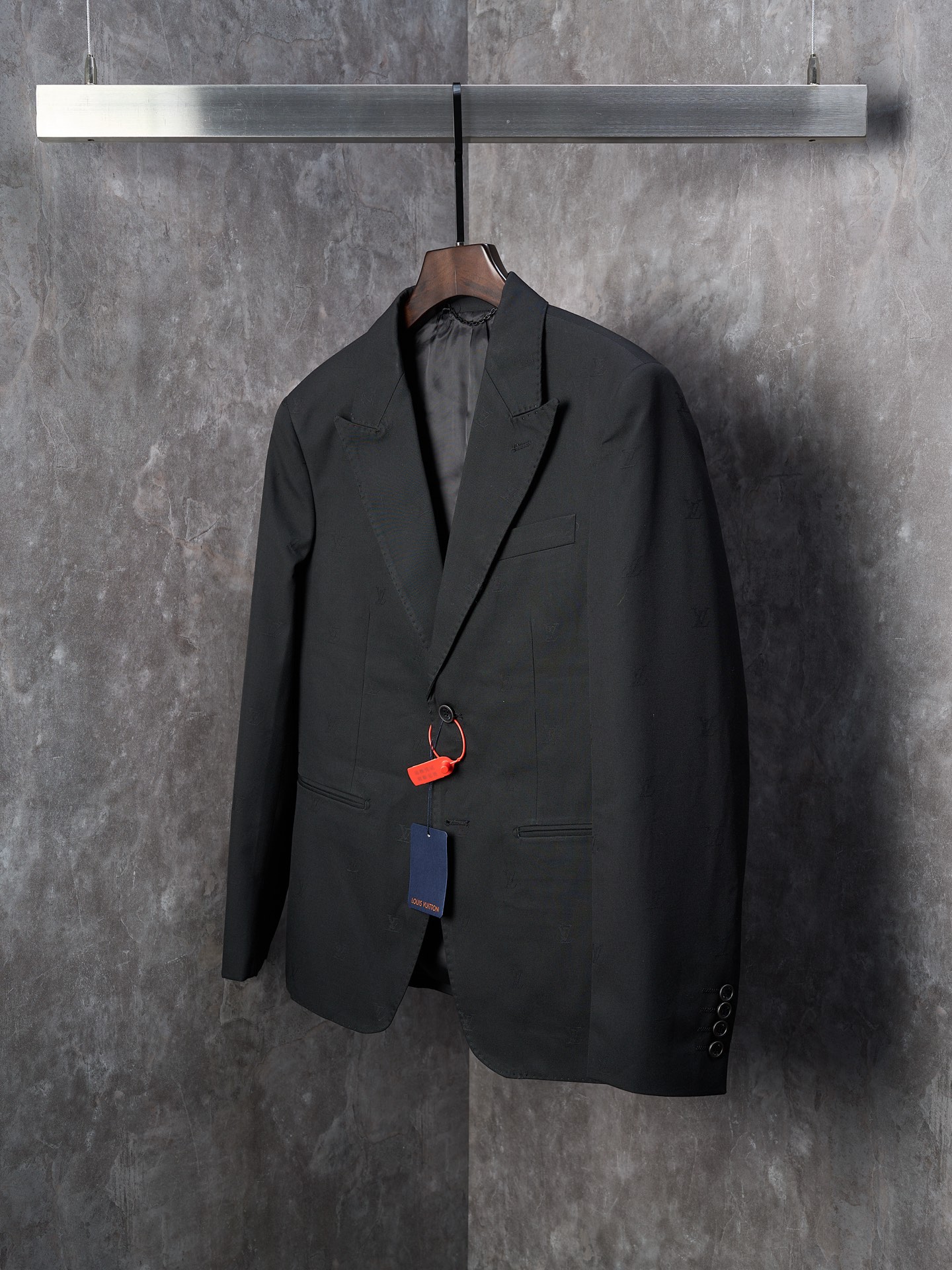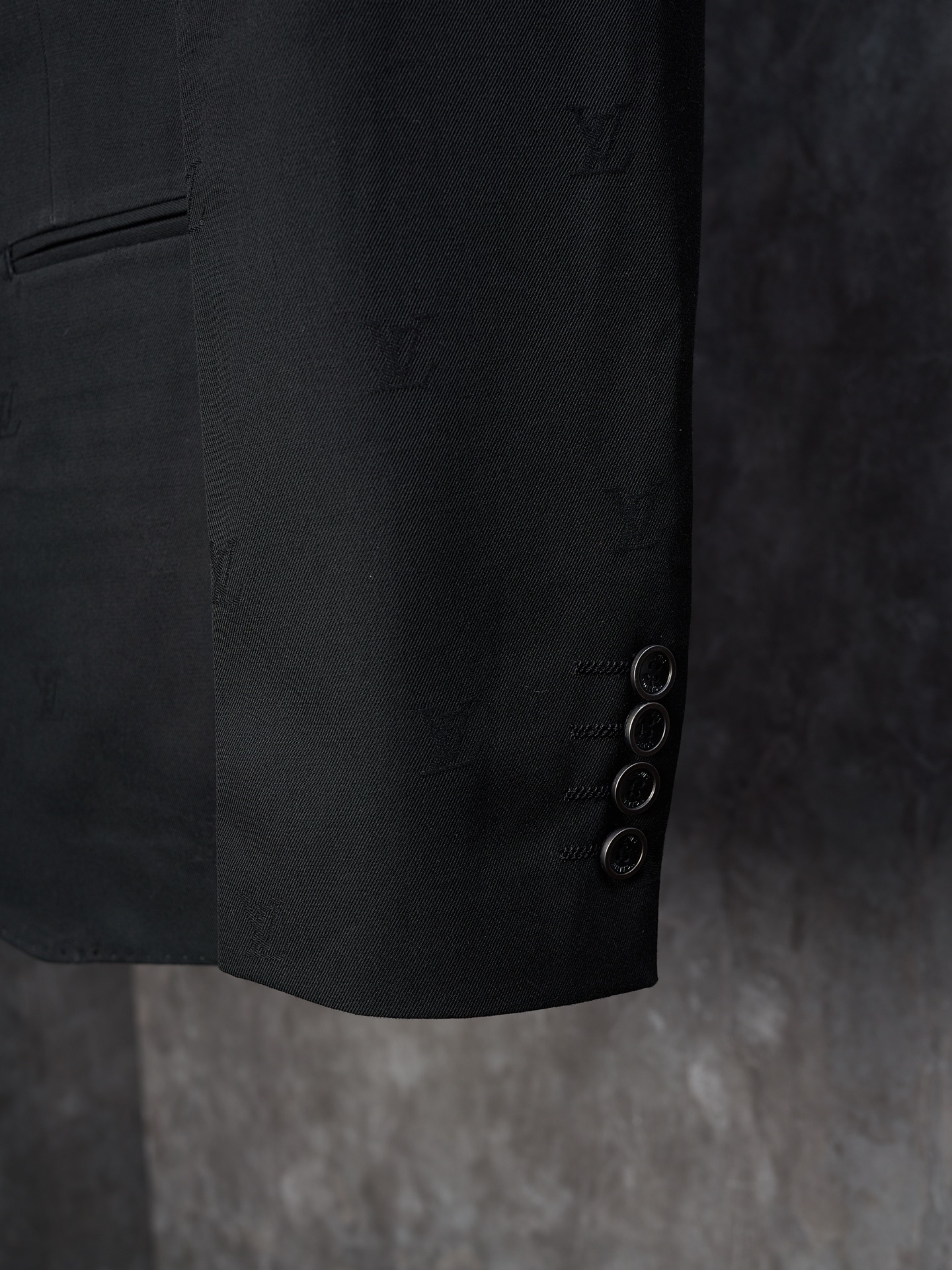 Elevate your style with this full jacquard Louis Vuitton suit jacket. Crafted from soft wool with intricate detailing for a luxurious feel.
