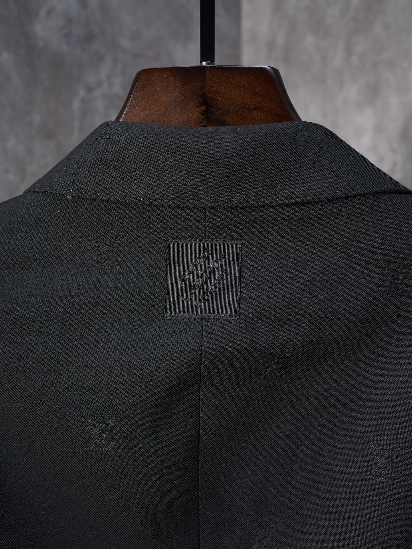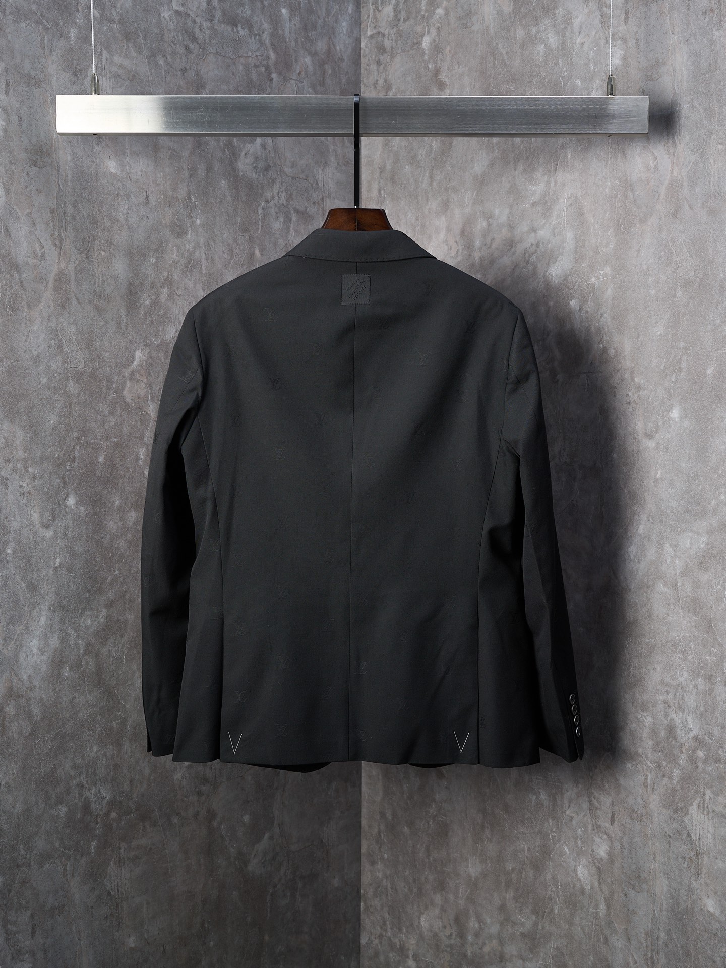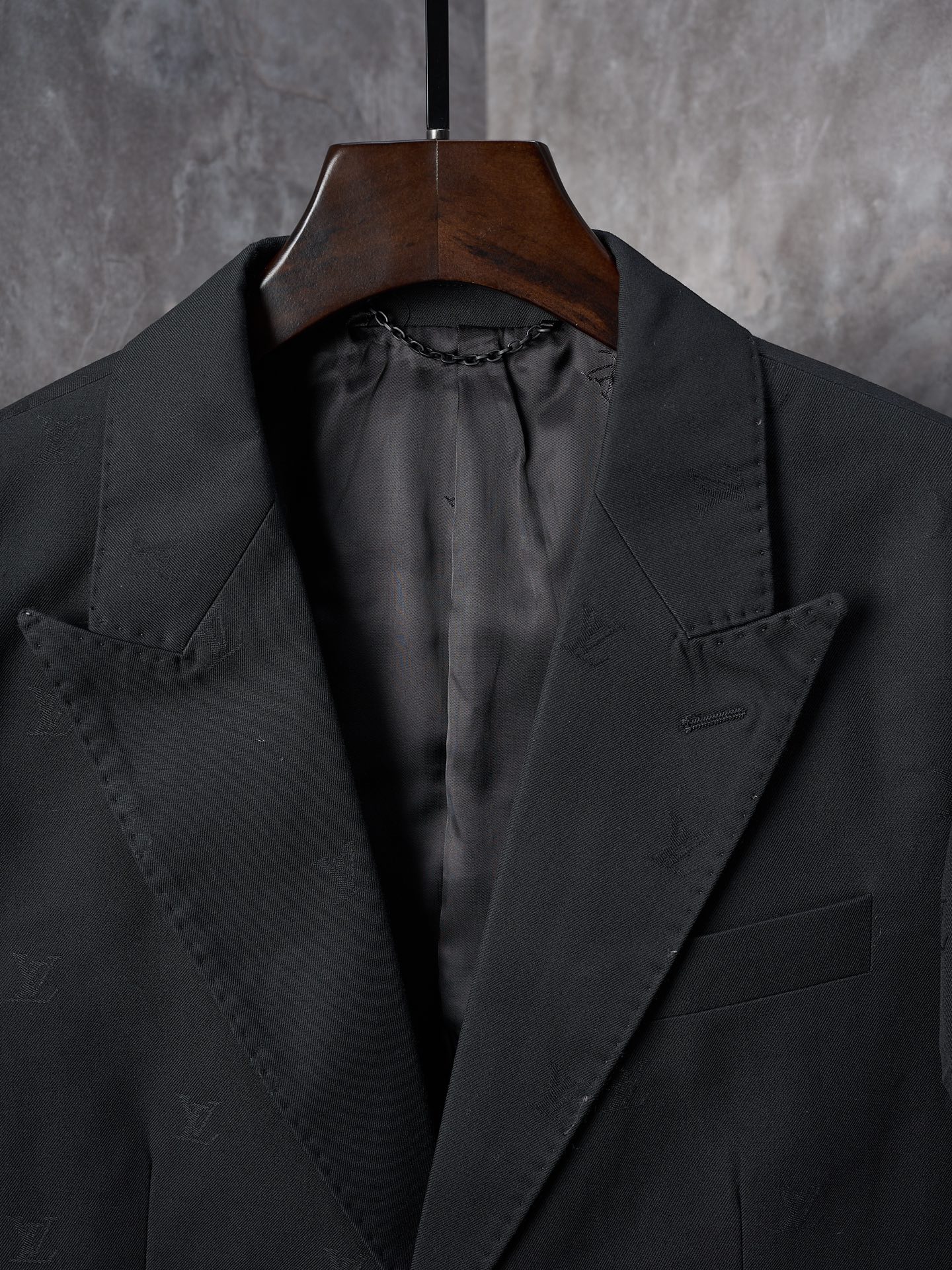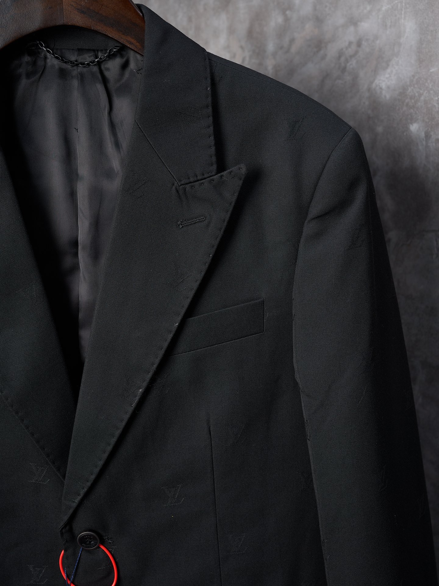 Louis Vuitton Full Jacquard Wool Suit Jacket - Sophisticated Black Blazer