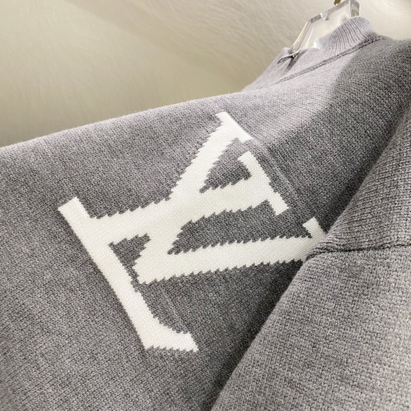 Elevate your wardrobe with this luxurious Louis Vuitton gray knit cardigan. Crafted from a wool-blend, featuring the iconic monogram.