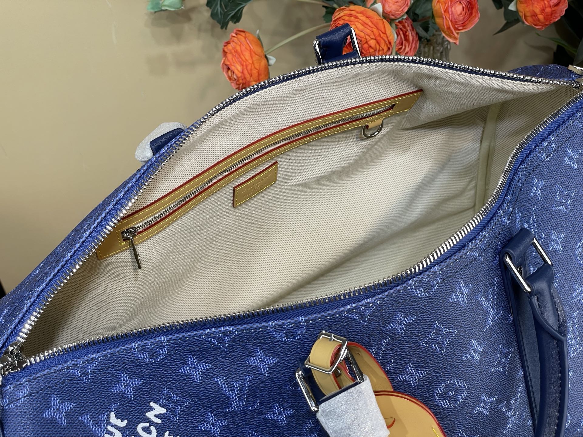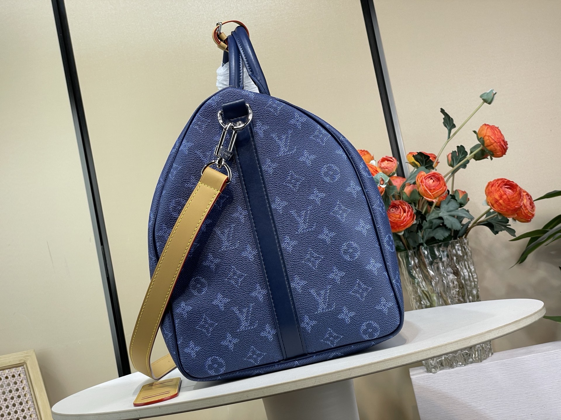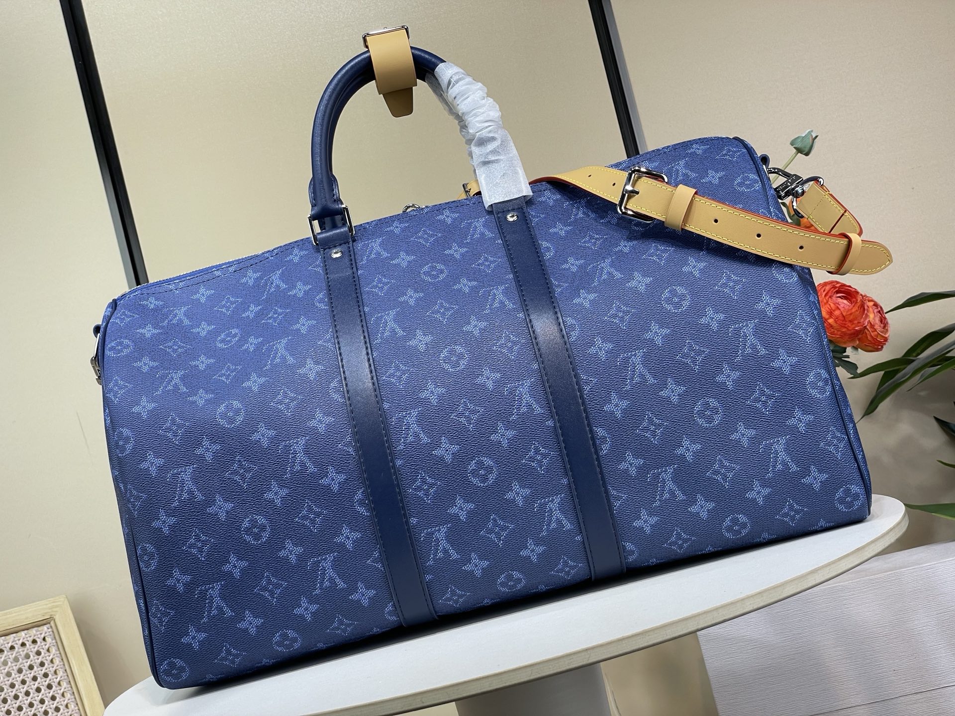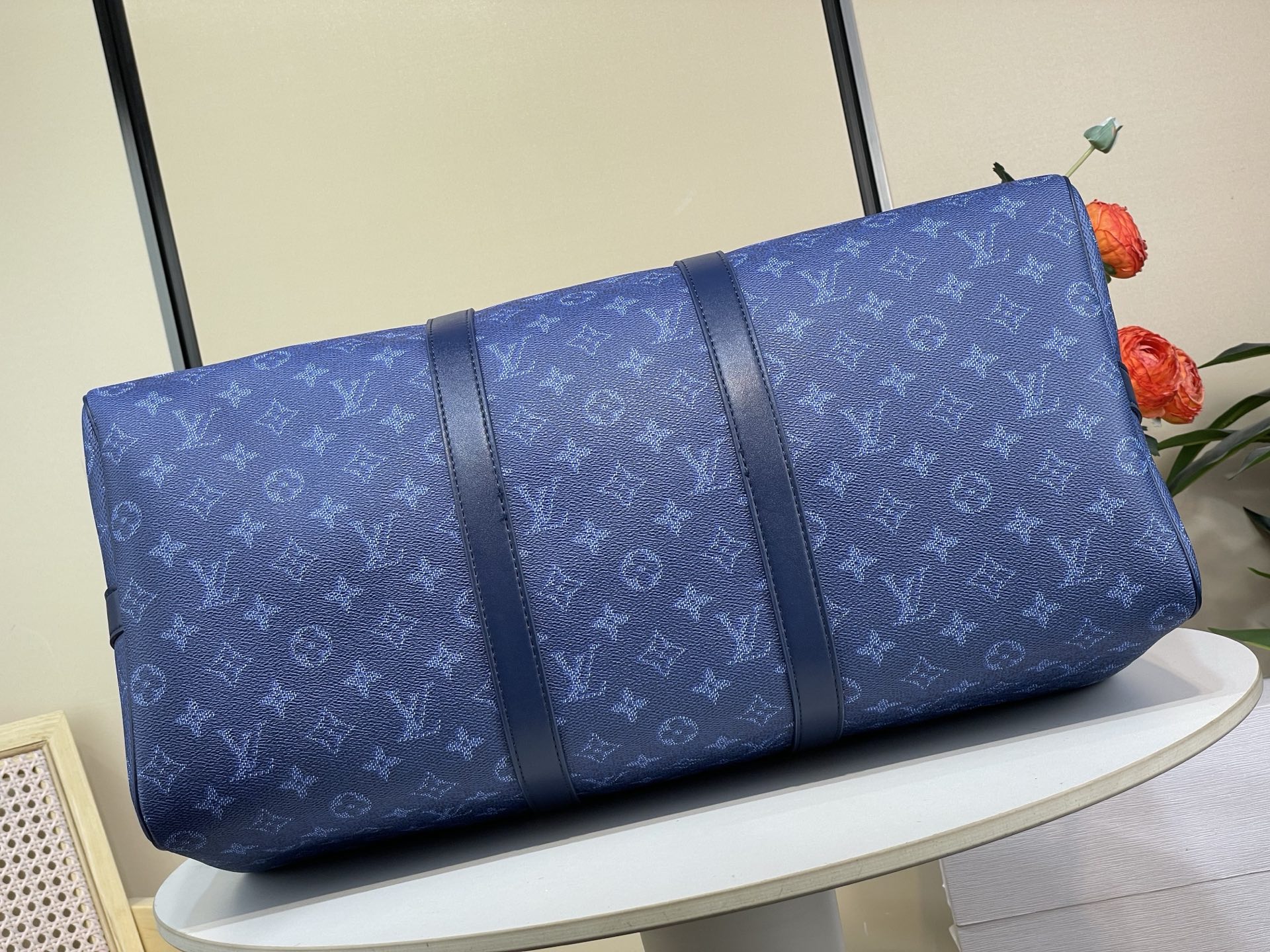 Tags: Blue Travel Bag, Designer Duffle Bag, Heritage Canvas Bag, Louis Vuitton Keepall, Luxury Travel Bag, Monogram Travel Bag