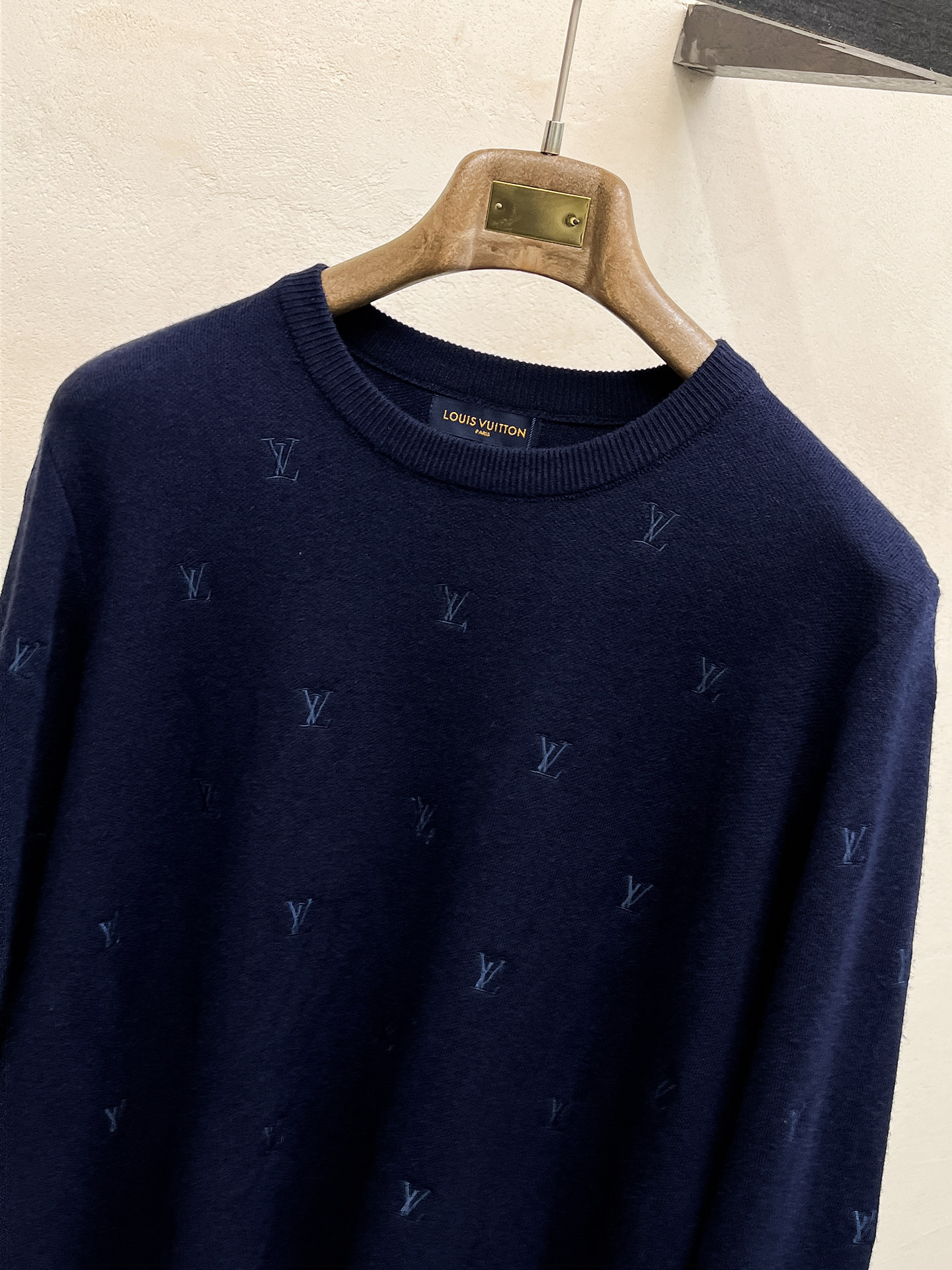 Louis Vuitton Men's Merino Wool Sweater with Embroidered Monogram Pattern