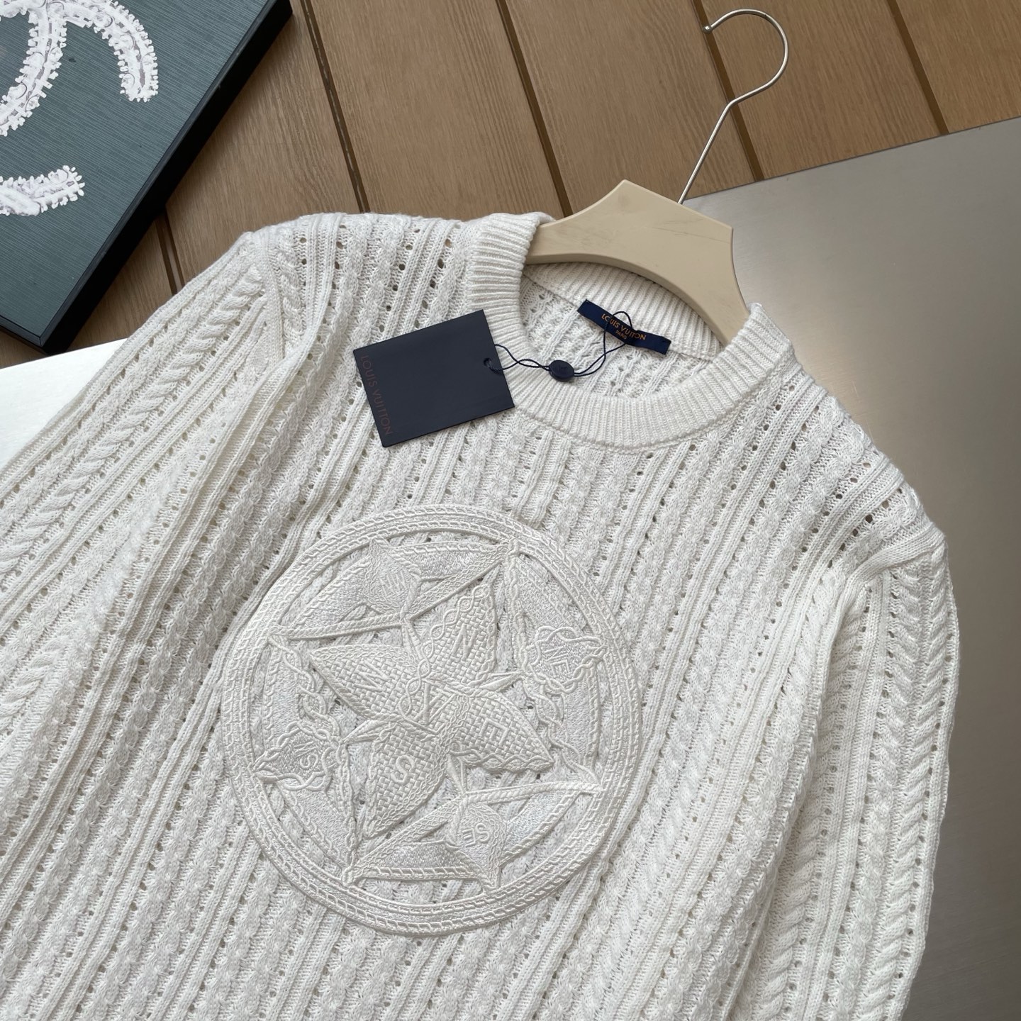 Tags: Designer Wool Sweater, Embroidered Logo Knitwear, louis vuitton mens sweater, Luxury Men's Fashion, Stylish Winter Knitwear, White Merino Wool Sweater