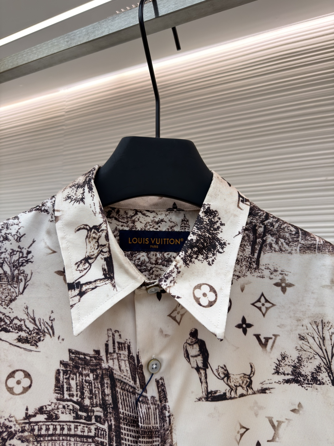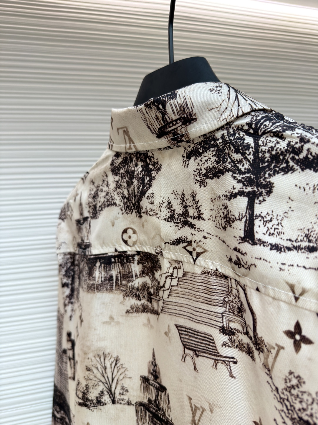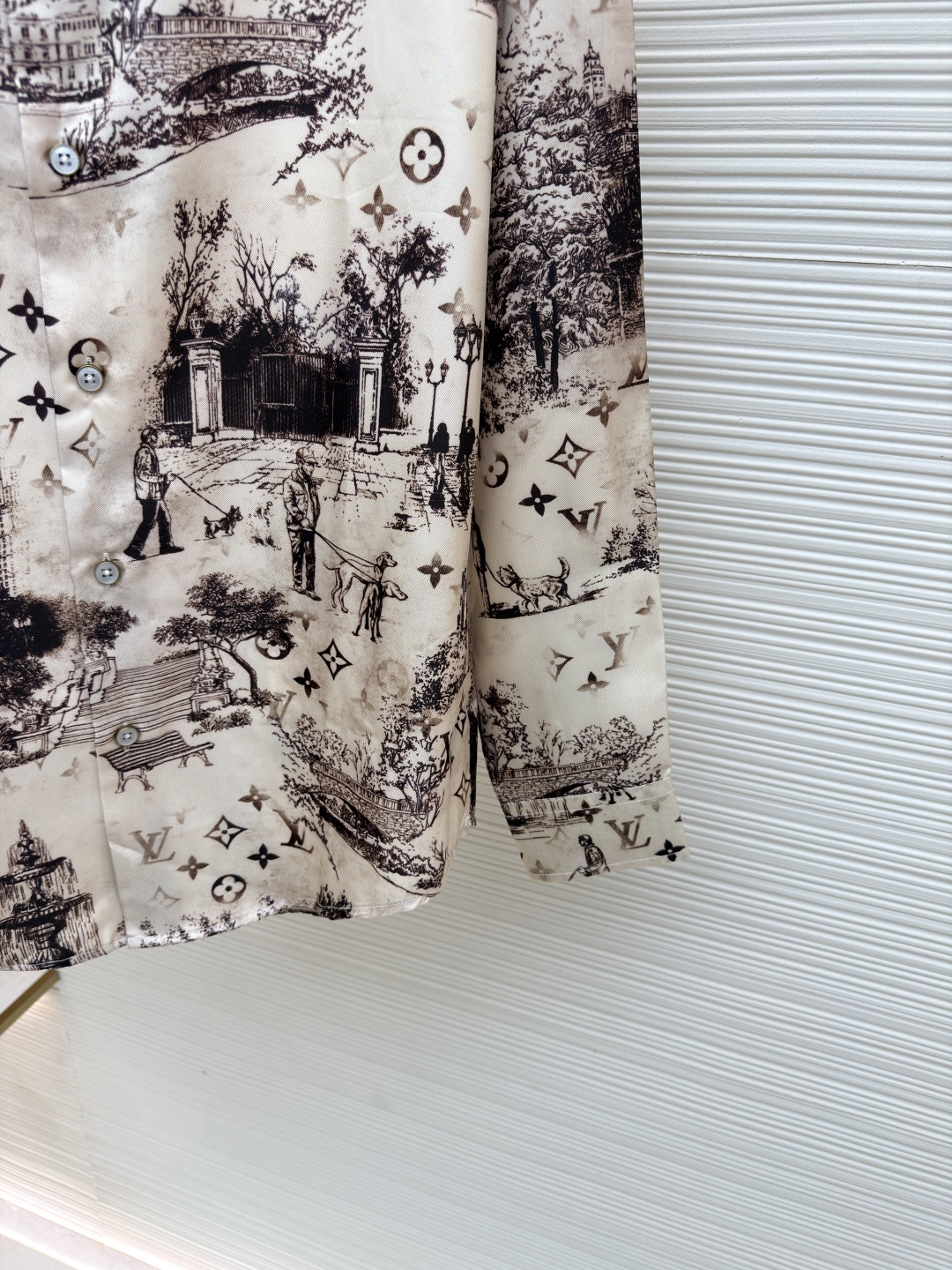 Elevate your style with this luxurious Louis Vuitton silk shirt featuring the Monogram City Walk pattern. Perfect for a sophisticated, romantic look.