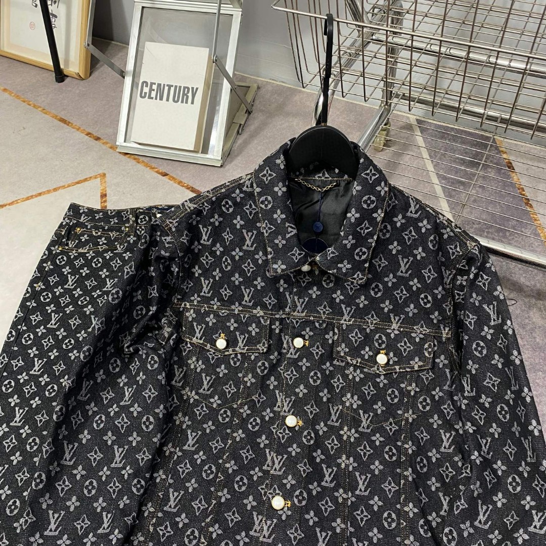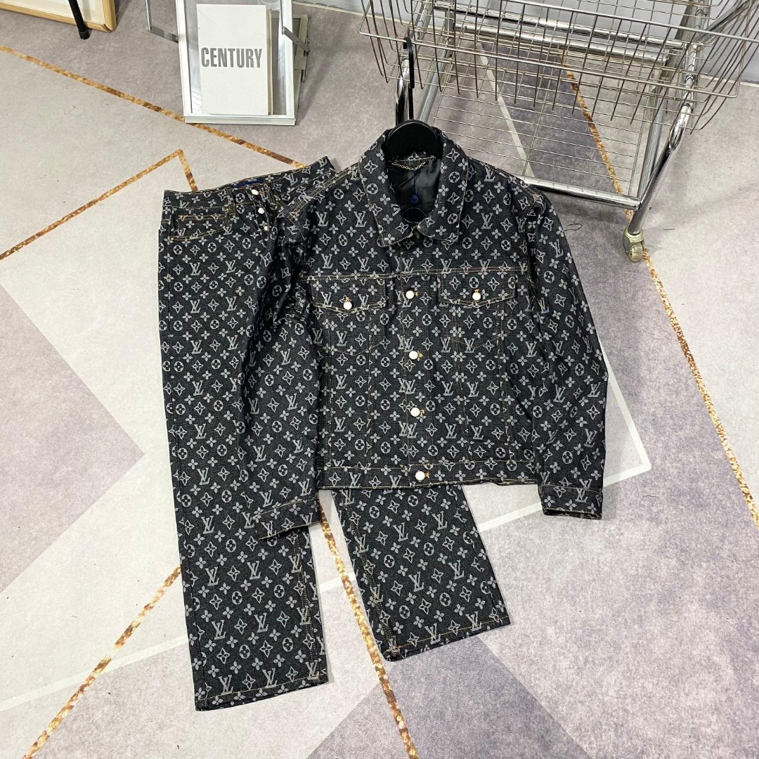 Tags: Designer Denim Pants, High Fashion Denim, Louis Vuitton Denim Set, Luxury Streetwear Set, Monogram Denim Jacket, Unisex Denim Outfit