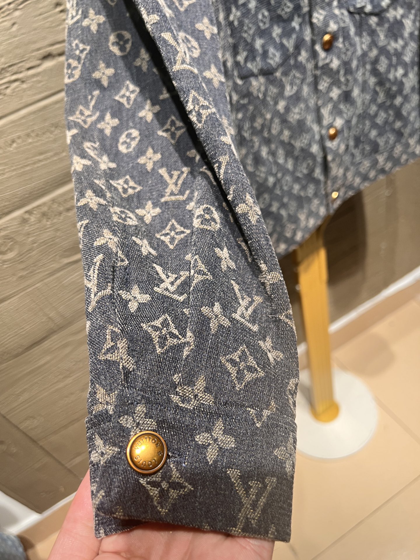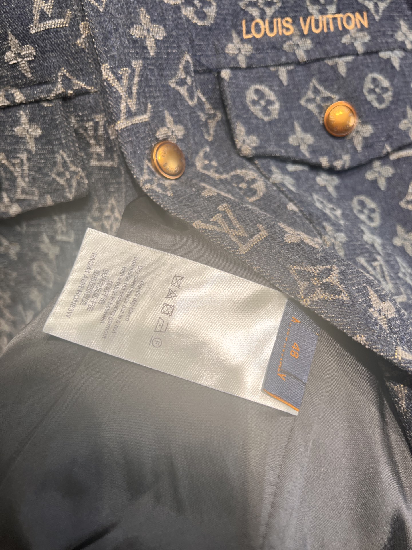 Tags: Casual Button-Down Jacket, Designer Cotton Jacket, Louis Vuitton Denim Jacket, Luxury men's outerwear, Monogram Jacquard Coat