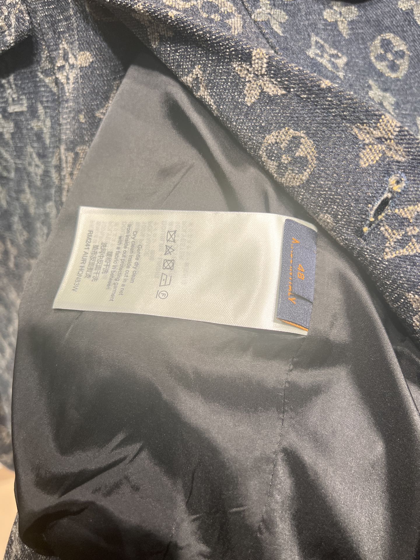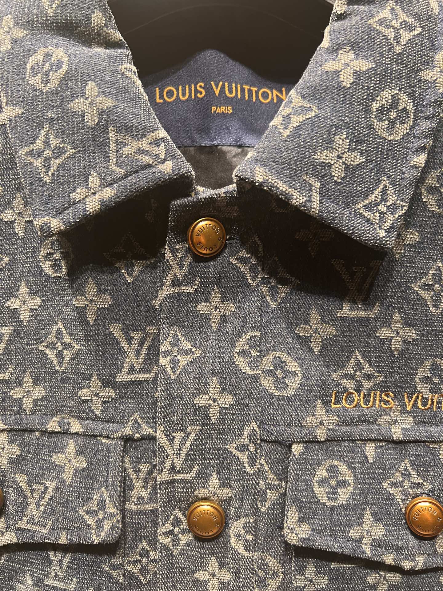 This Louis Vuitton denim jacket combines iconic design with everyday wearability. The all-over monogram jacquard pattern elevates this classic silhouette, making it a standout piece in any wardrobe.