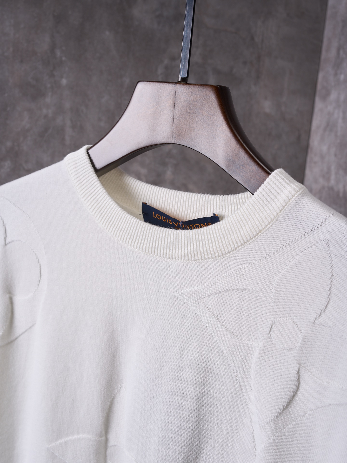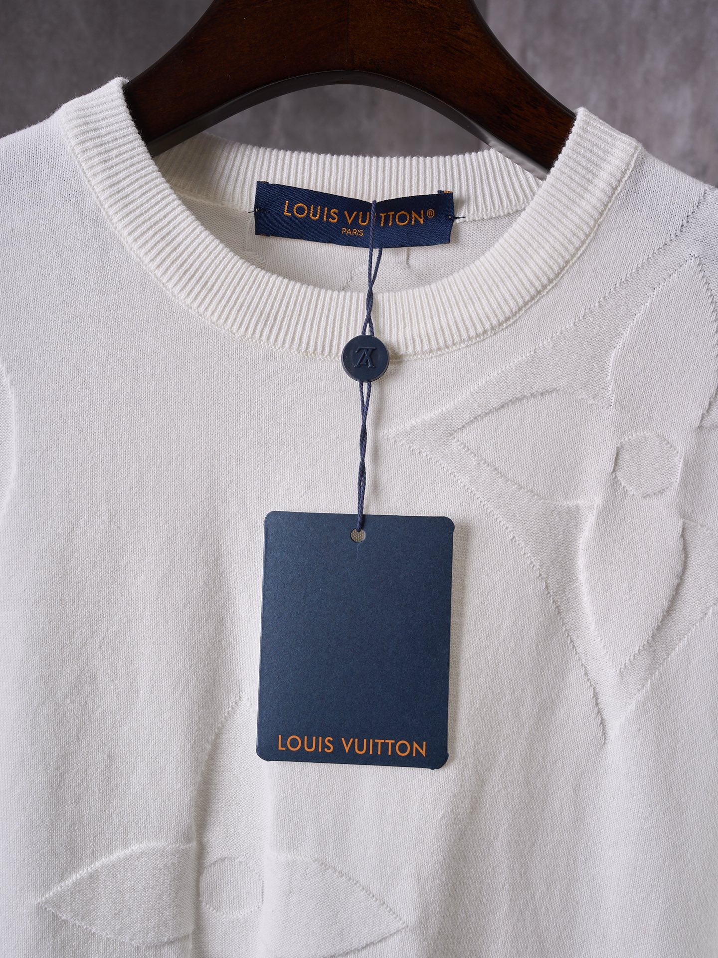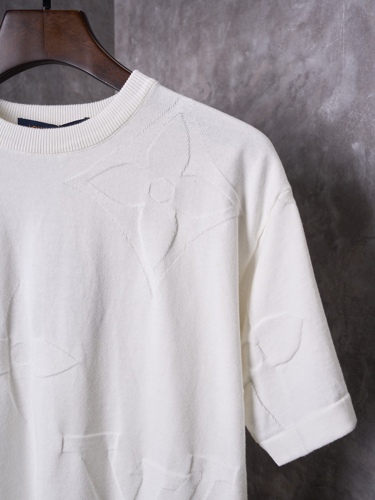 Tags: Cotton Short Sleeve Tee, Designer T Shirt, Embossed Monogram T Shirt, Louis Vuitton T-Shirt, Luxury Cotton T-Shirt, Monogram Jacquard T Shirt