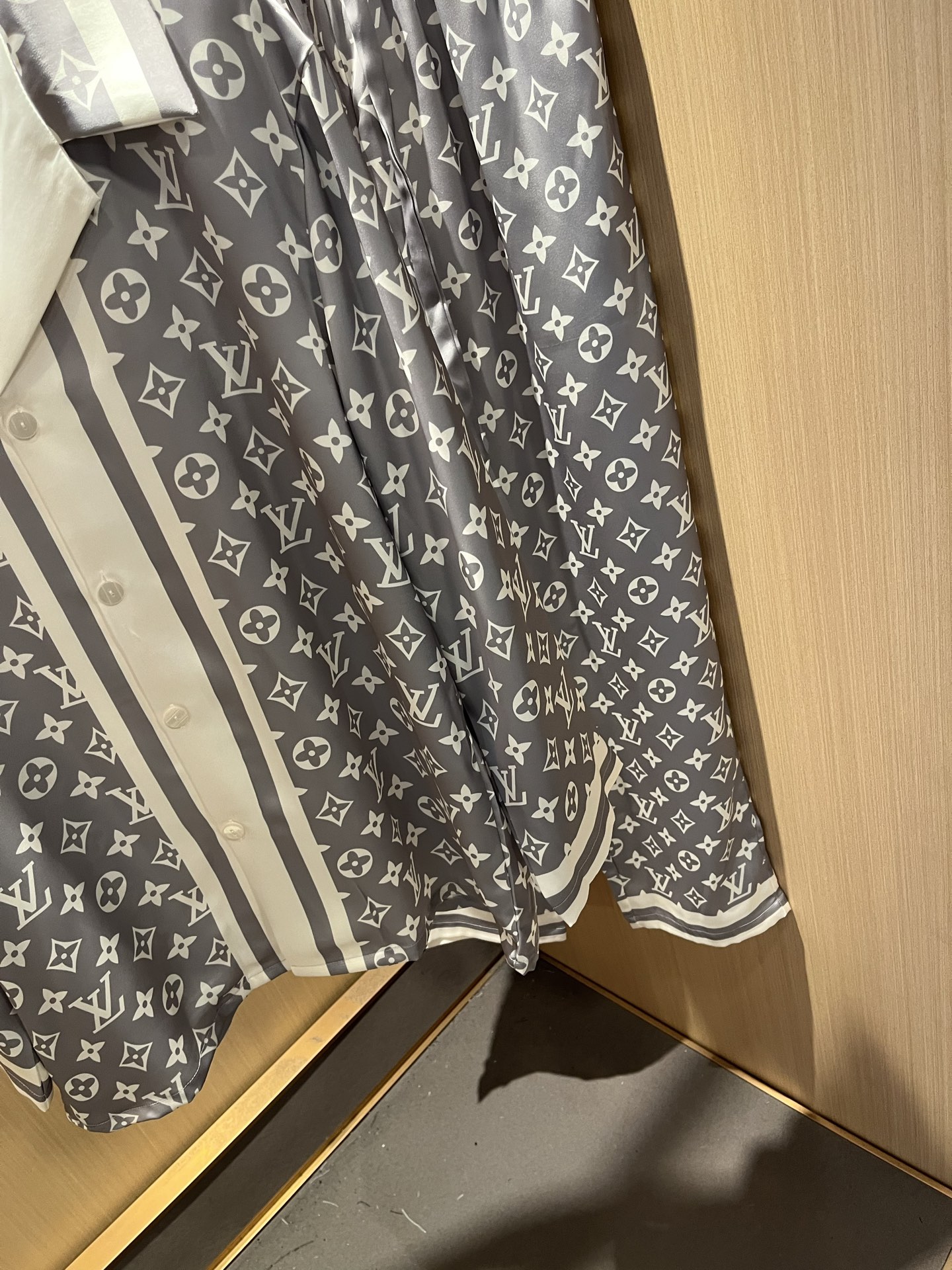 Indulge in luxury with this Louis Vuitton silk pajama set. Features the iconic Monogram pattern for a stylish and comfortable sleep or lounge experience.