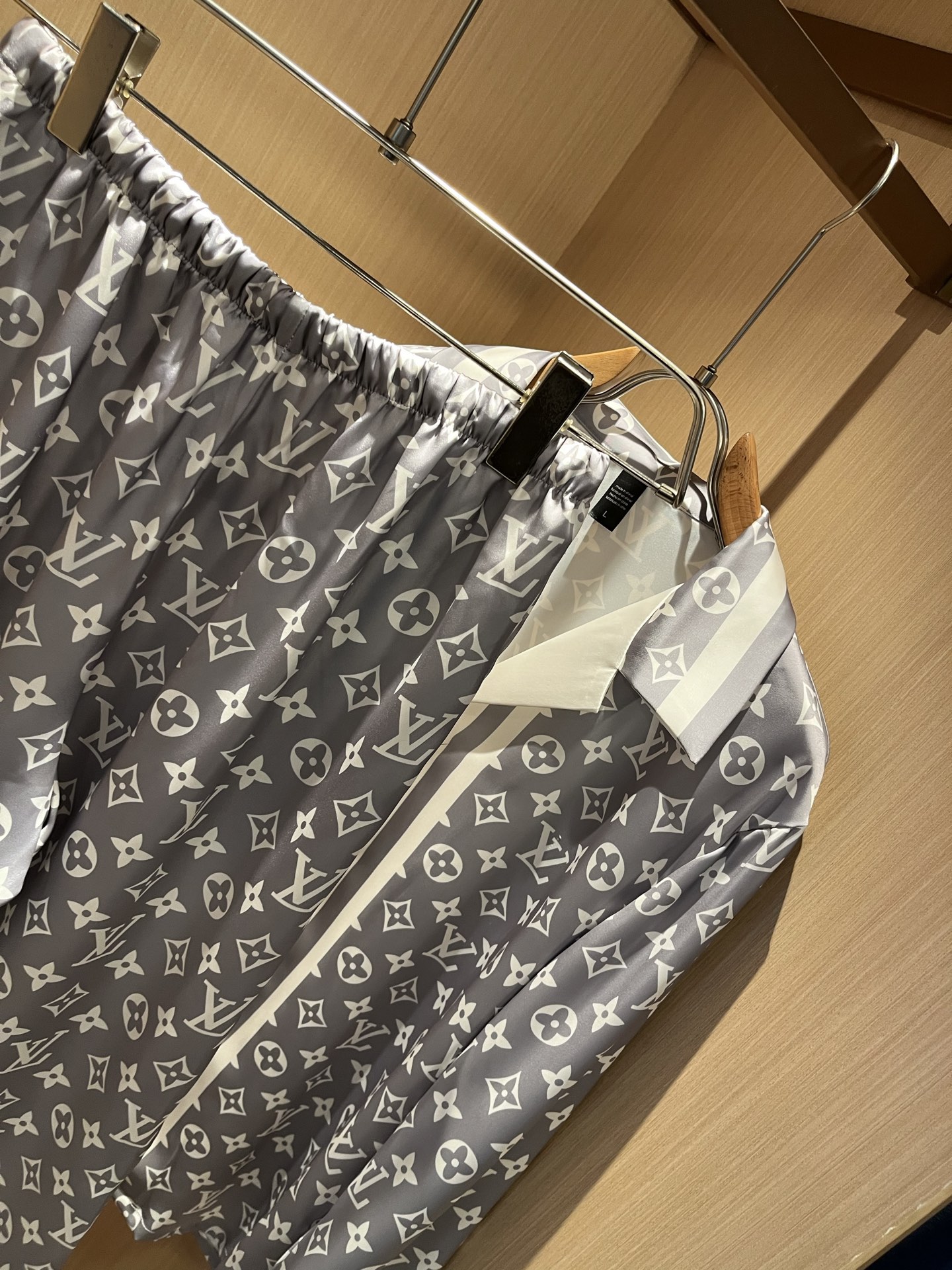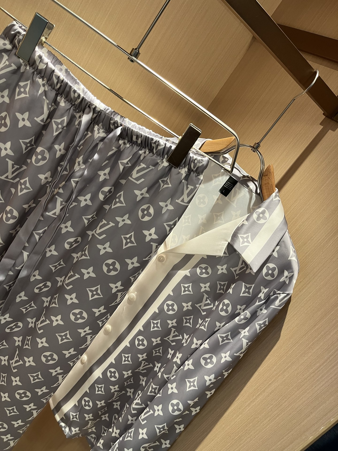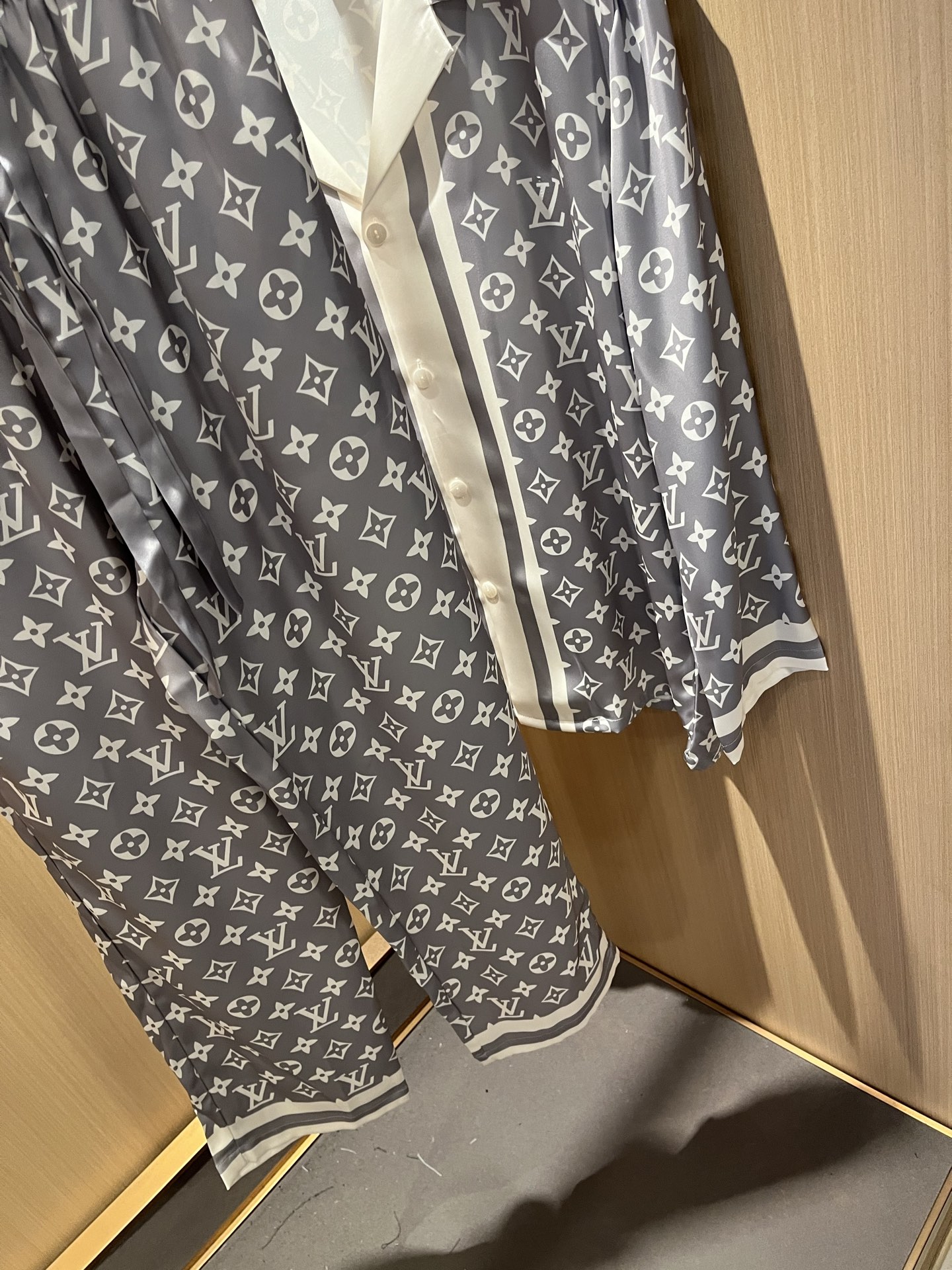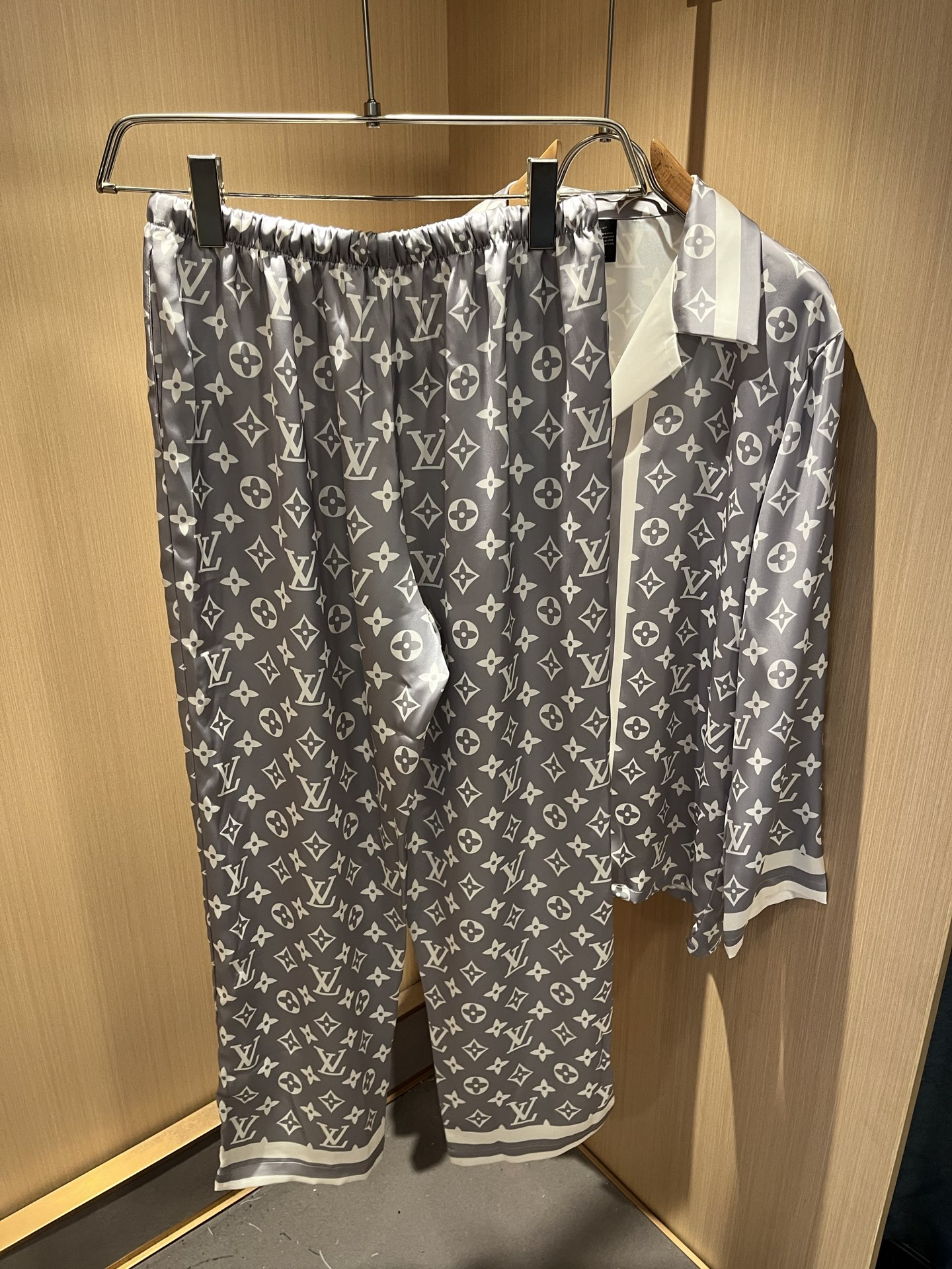 Louis Vuitton Monogram Silk Pajama Set, Unisex Luxury Loungewear, Gray