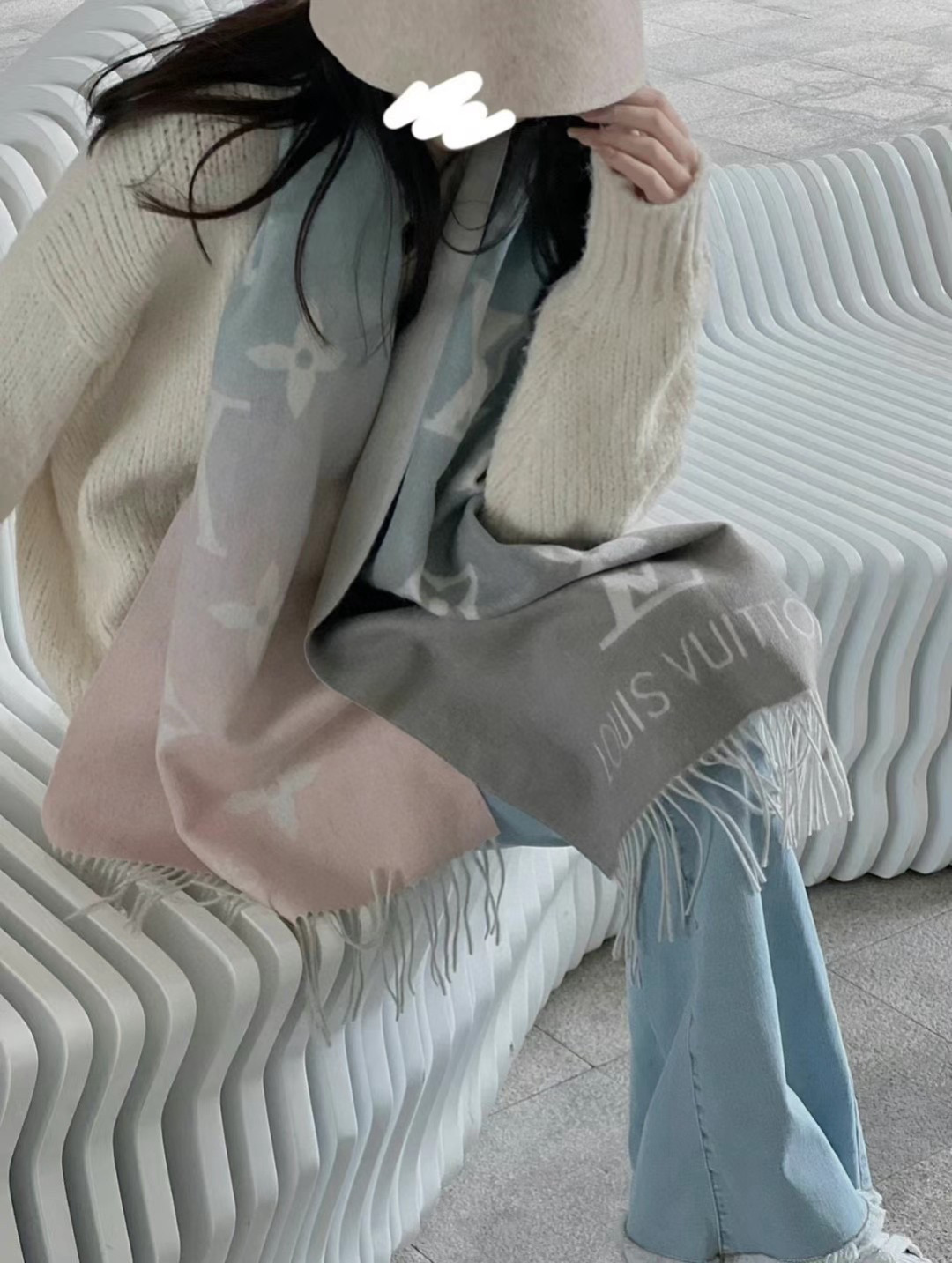 Tags: Designer Cashmere Wrap, Gradient Monogram Shawl, Louis Vuitton Cashmere Scarf, Luxury Women Scarf, Monogram Shawl, Reykjavik Scarf