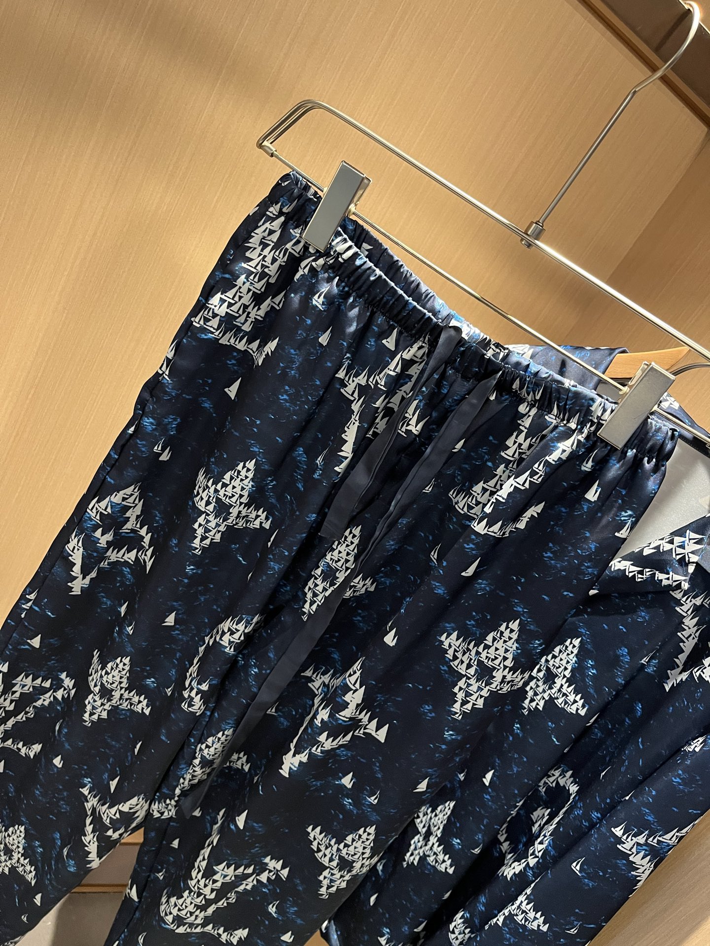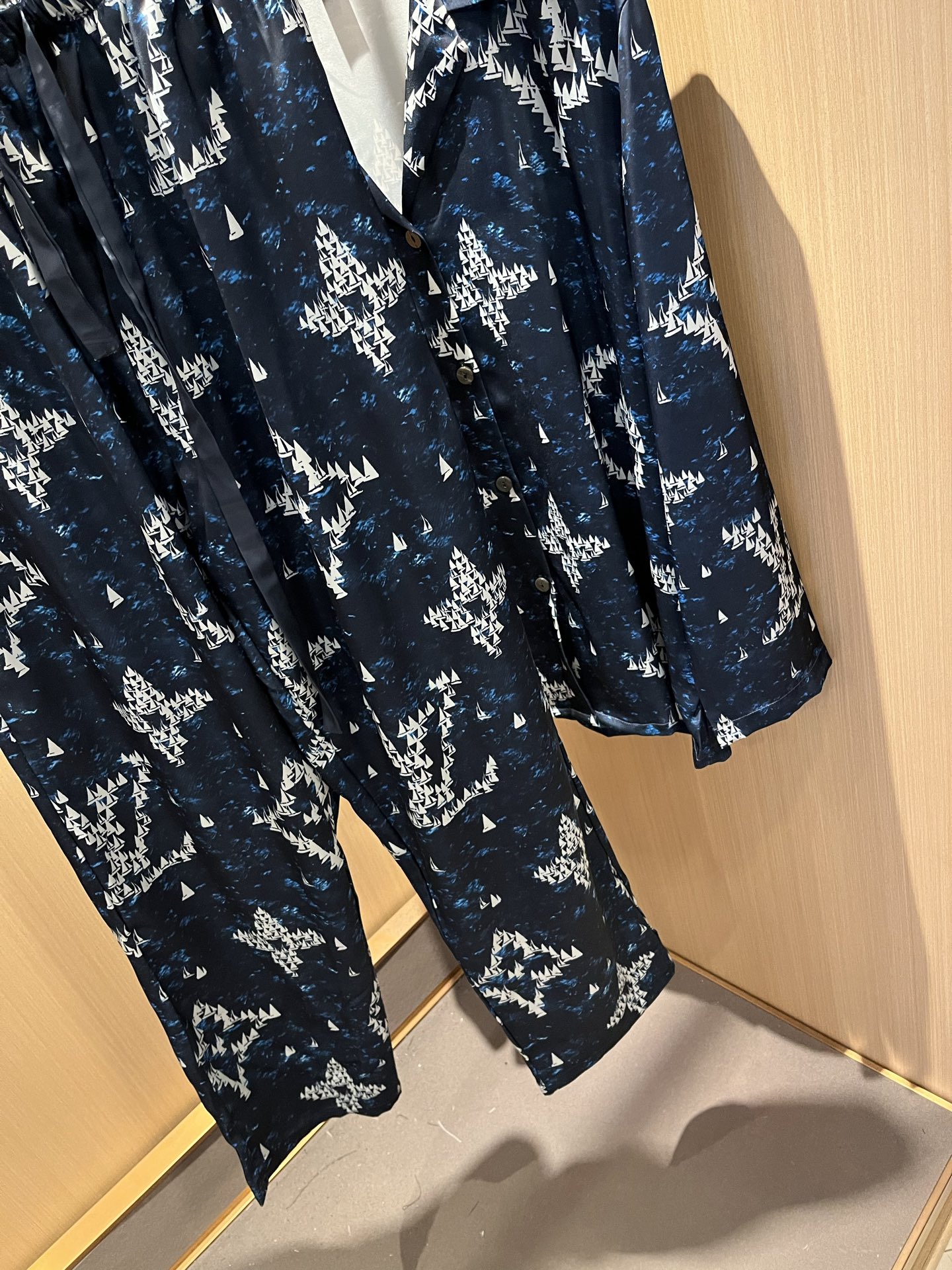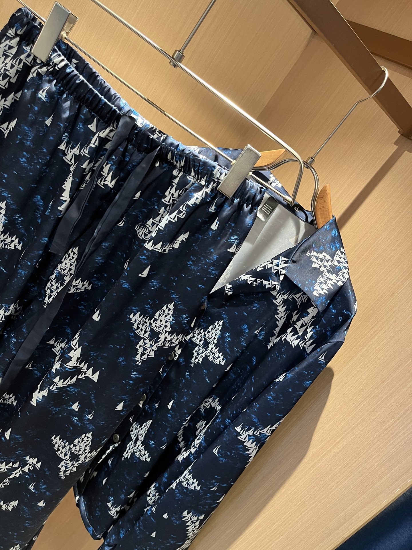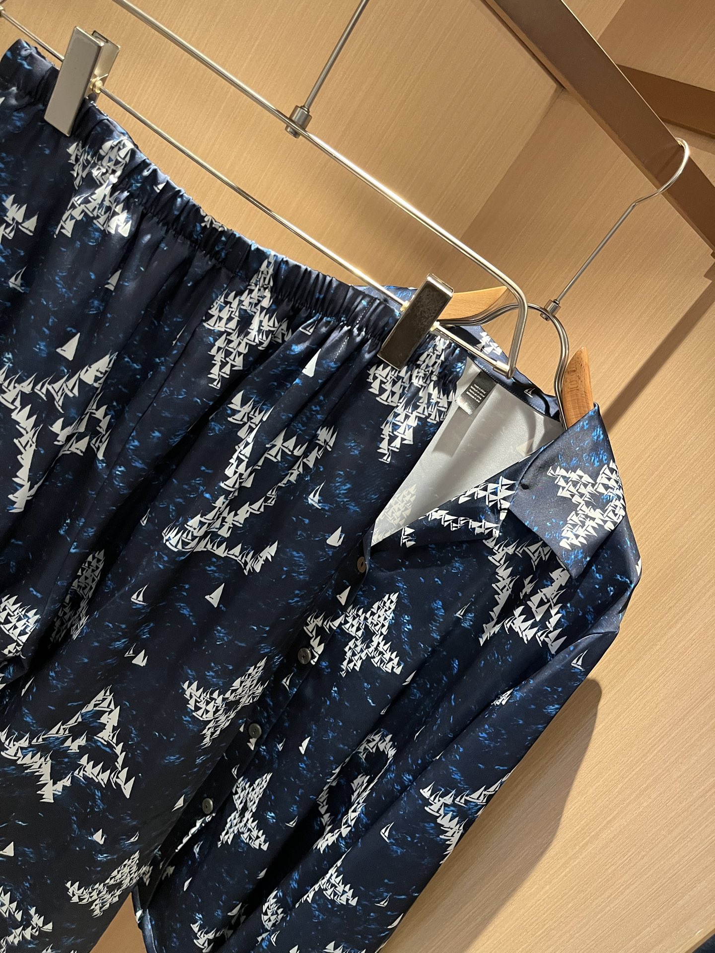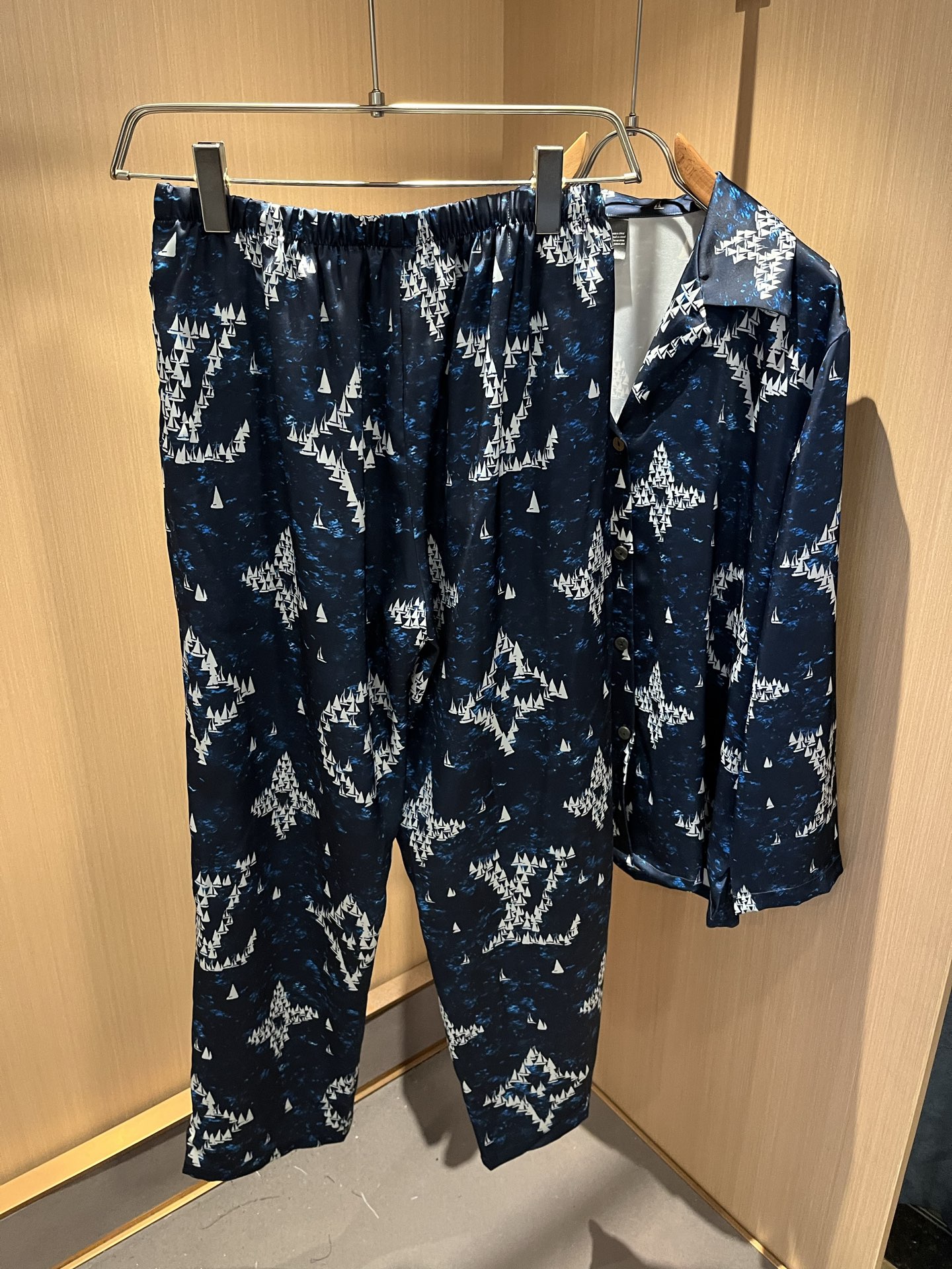 Louis Vuitton Spring Pajama Set, Silk Sleepwear with Iconic Monogram Pattern