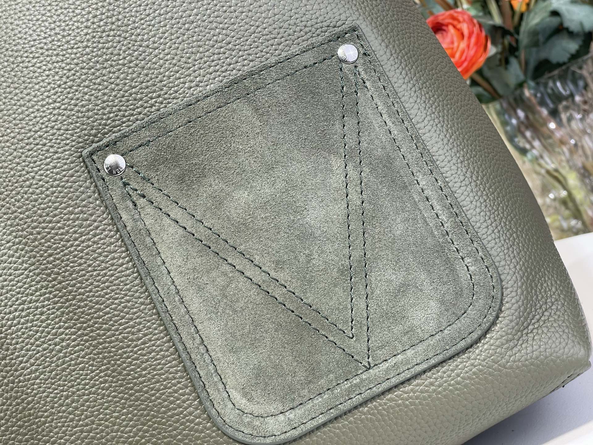 Louis Vuitton Verso Hobo Bag in Green Leather with Suede Pocket