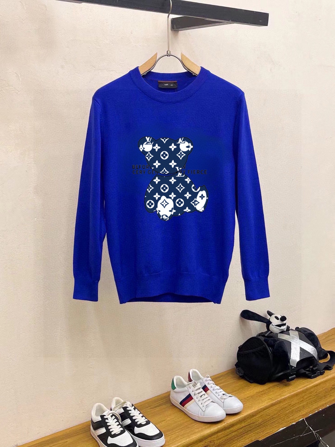 Tags: Bear Motif Sweater, Designer Knitwear, Louis Vuitton Sweater, Luxury Sweater Women, Round Neck Sweater, Wool Blend Sweater