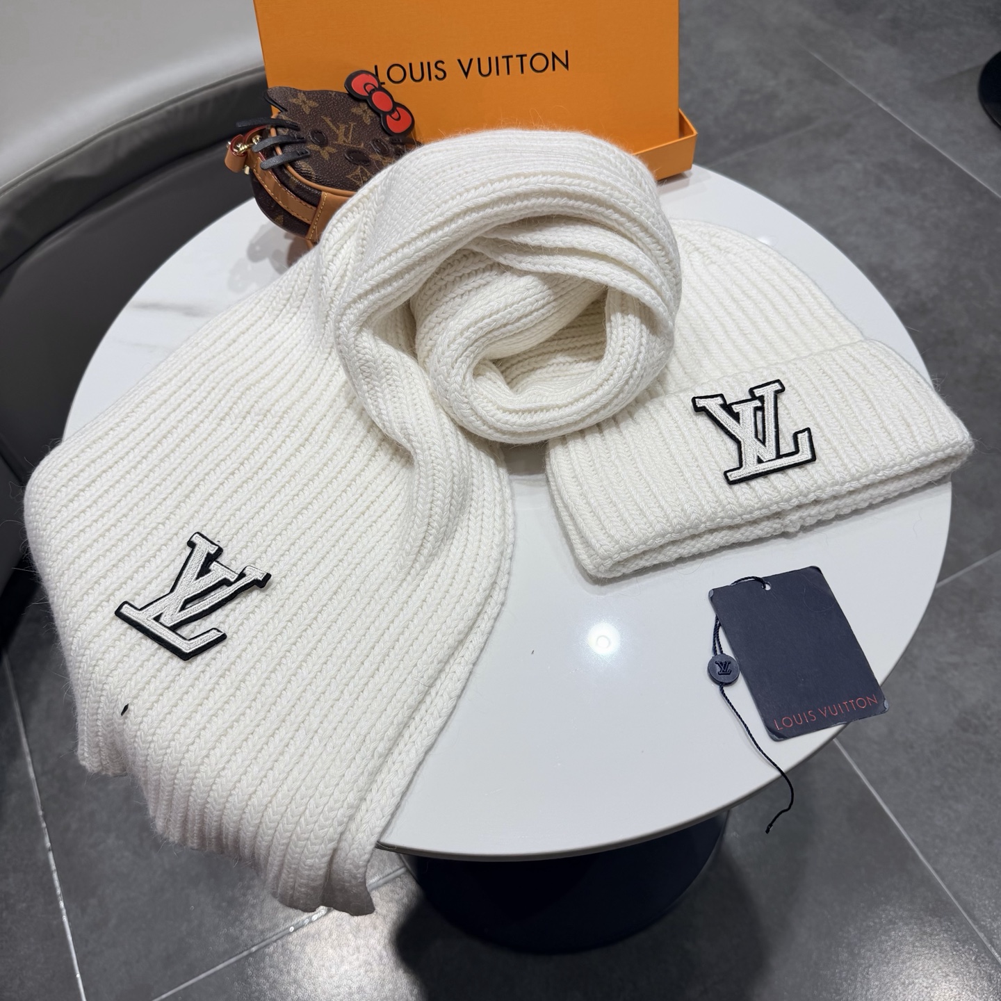 Complete your winter look with this stylish and cozy Louis Vuitton Wool Set. Stay warm, stay fashionable!