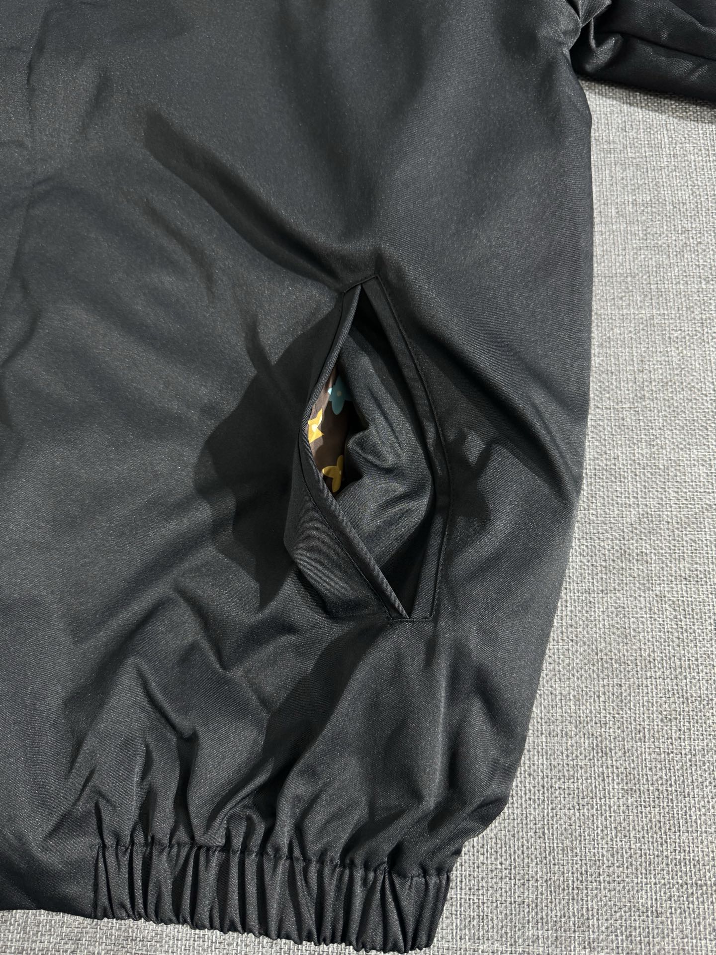 This statement jacket offers a blend of luxury and streetwear aesthetics, making it a standout addition to any wardrobe.