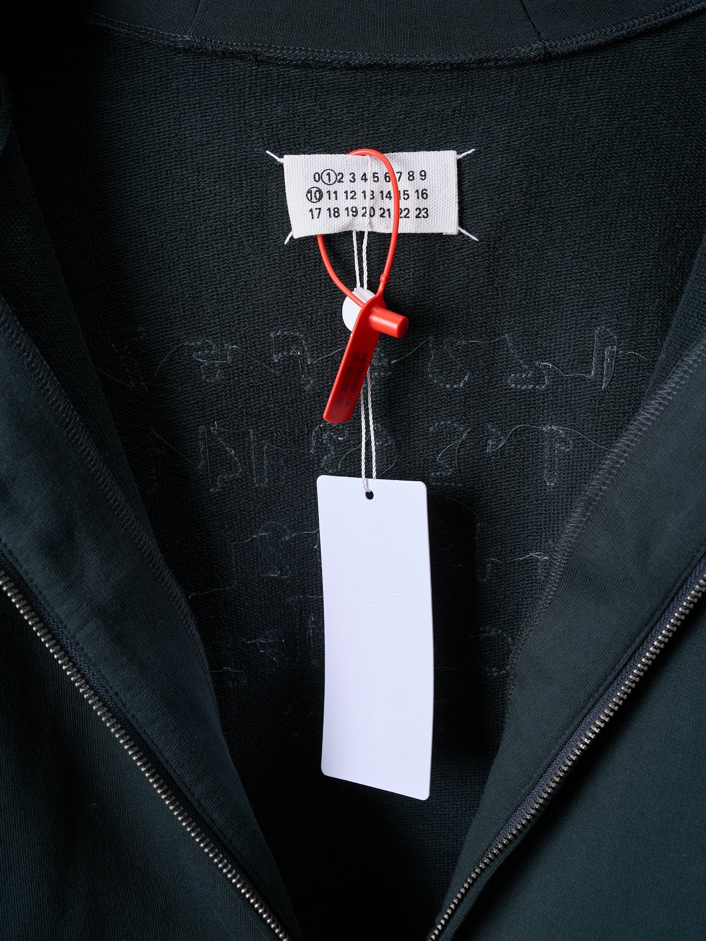 This Maison Margiela zip-up hoodie blends high fashion with everyday comfort. Crafted from soft, high-density cotton, this hoodie features unique embroidery and a relaxed fit, perfect for adding a touch of sophistication to your casual wardrobe.