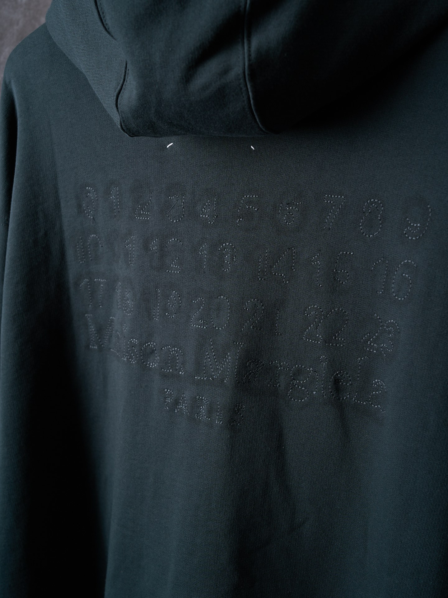 Elevate your wardrobe with this Maison Margiela zip-up hoodie. Featuring unique embroidery and a comfortable, loose fit.