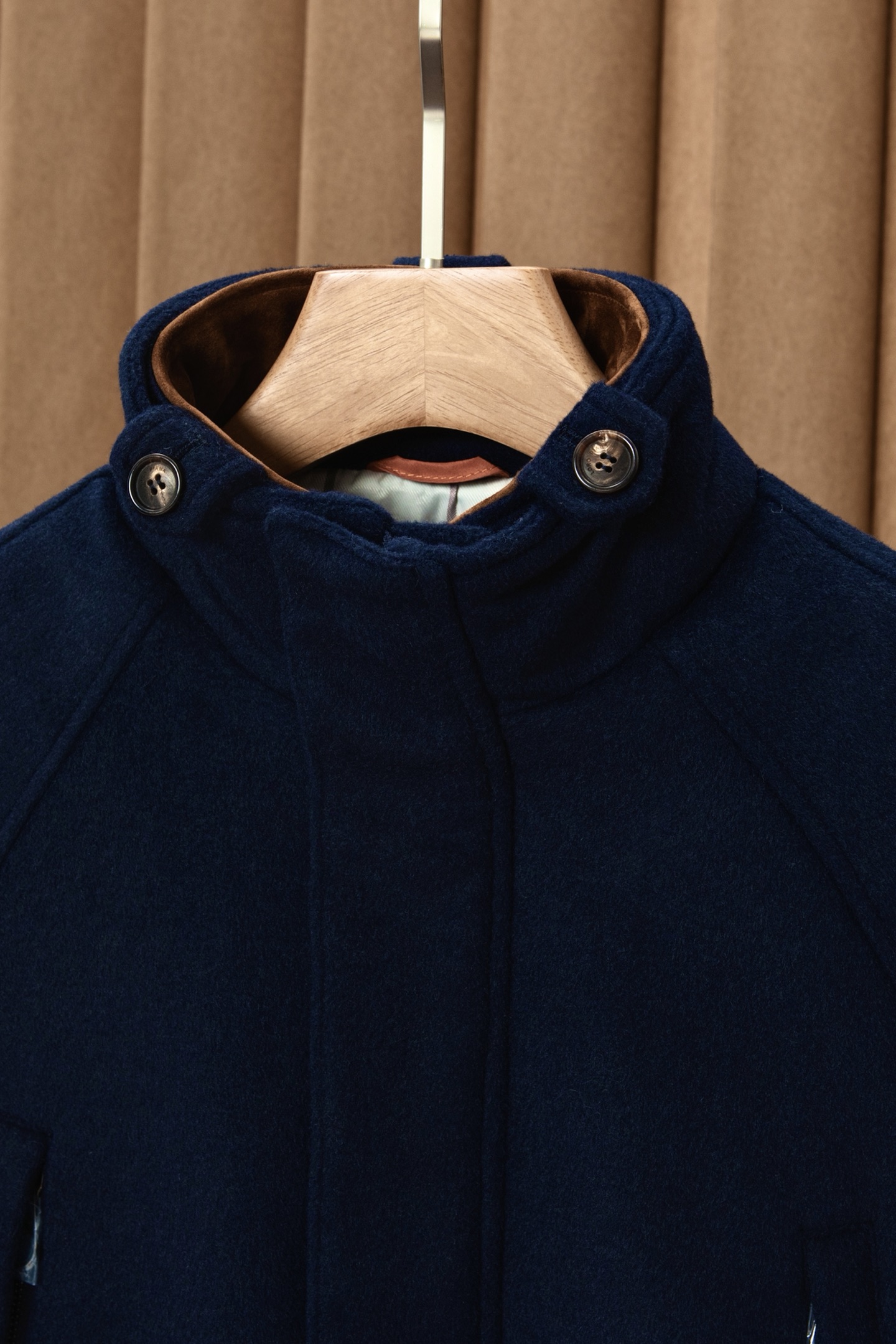 Elevate your style with this wool-cashmere blend jacket. Features a double-layer collar and multiple pockets for a distinctive, versatile look.