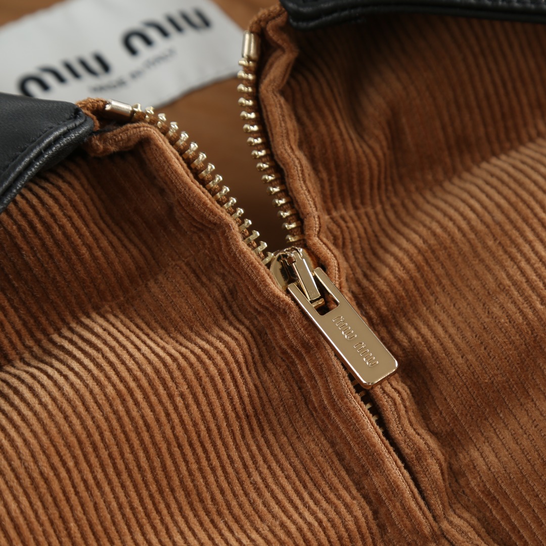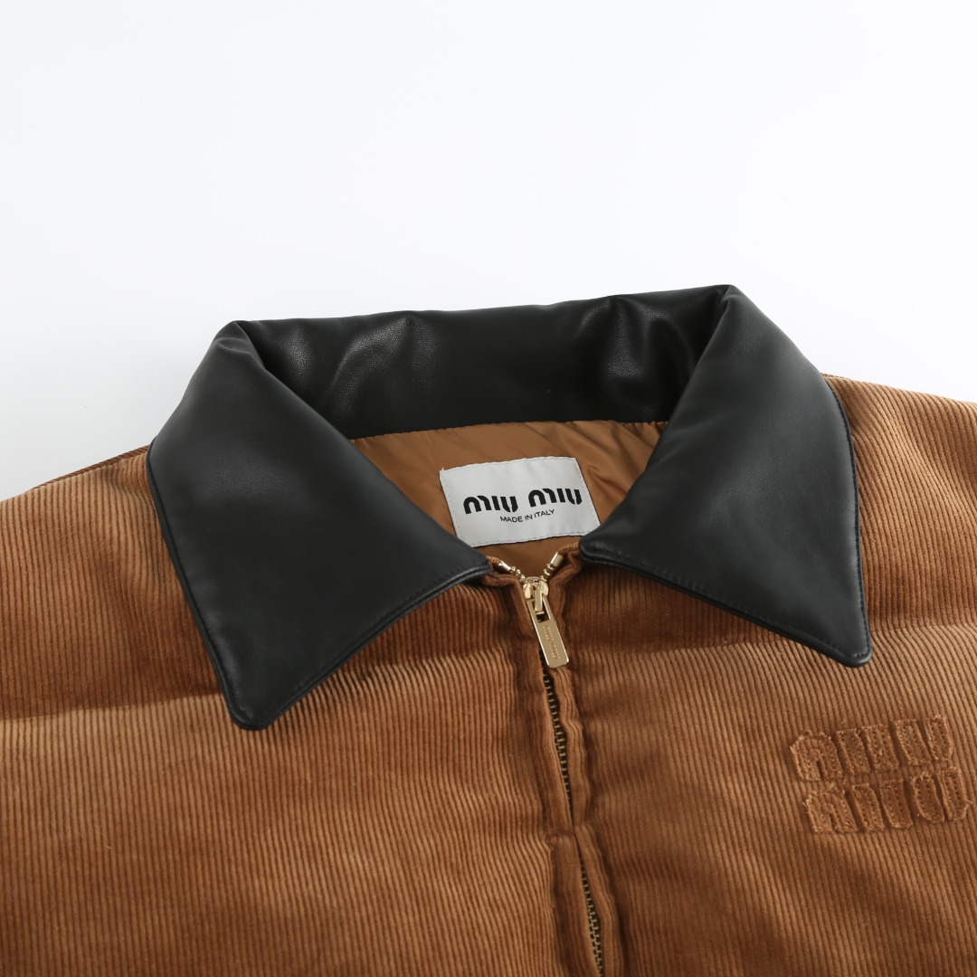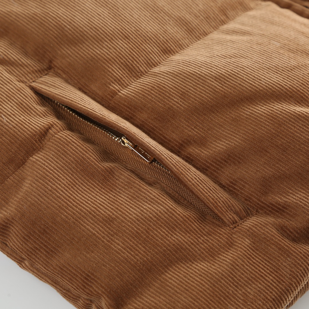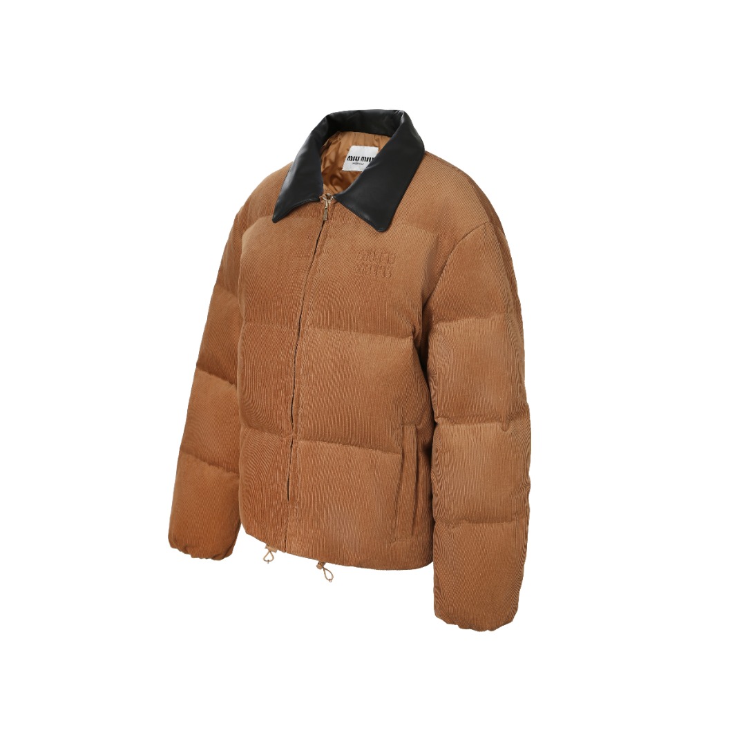 Tags: Brown Winter Jacket, Corduroy Winter Coat, Leather Collar Jacket, Miu Miu Down Jacket, Padded Corduroy Coat, Women's Designer Jacket