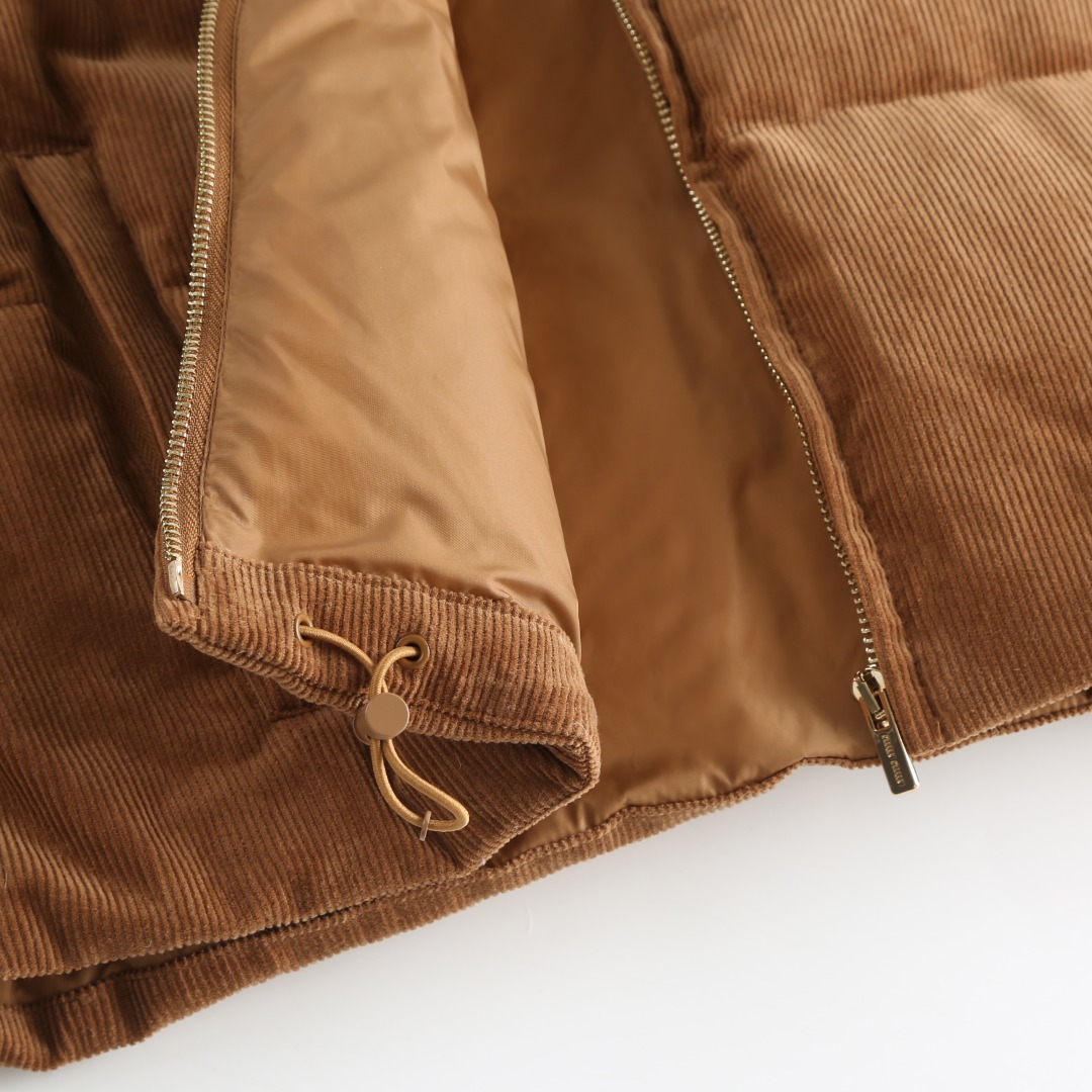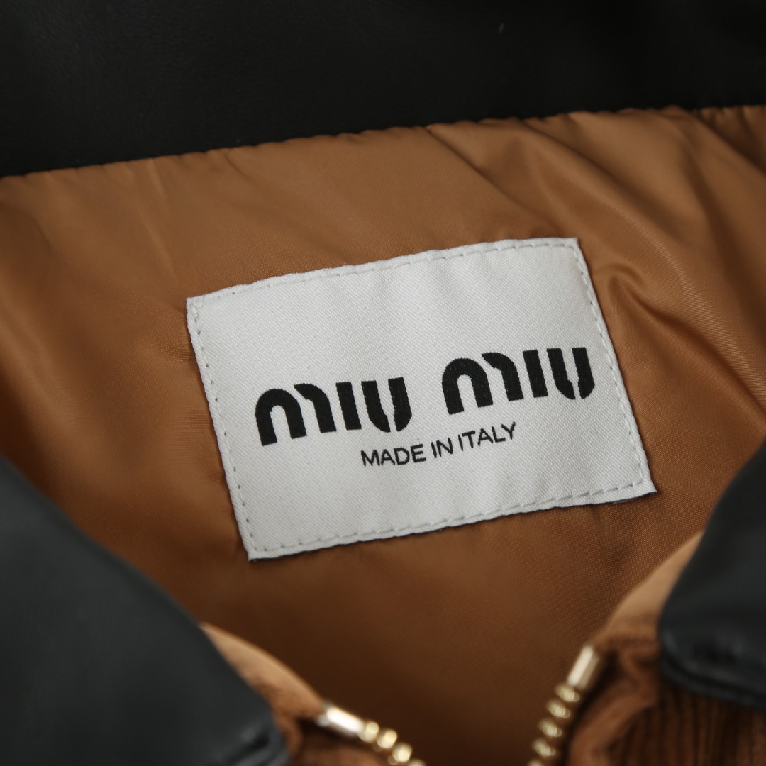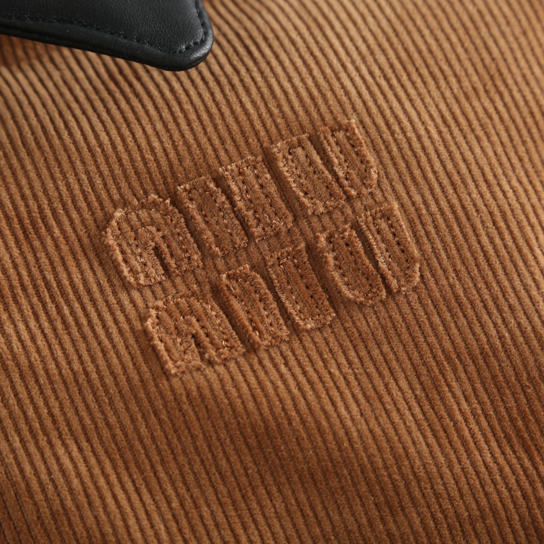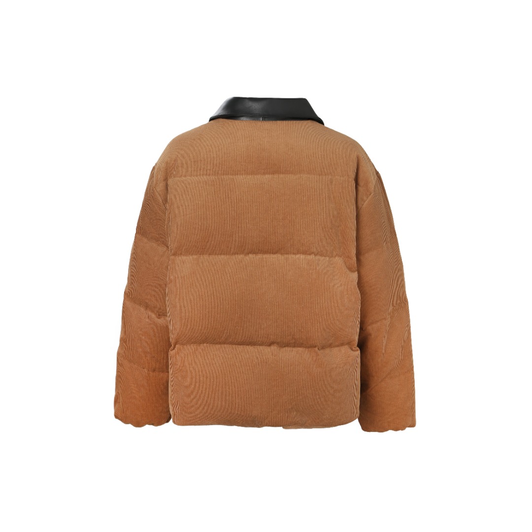 Tags: Brown Winter Jacket, Corduroy Winter Coat, Leather Collar Jacket, Miu Miu Down Jacket, Padded Corduroy Coat, Women's Designer Jacket